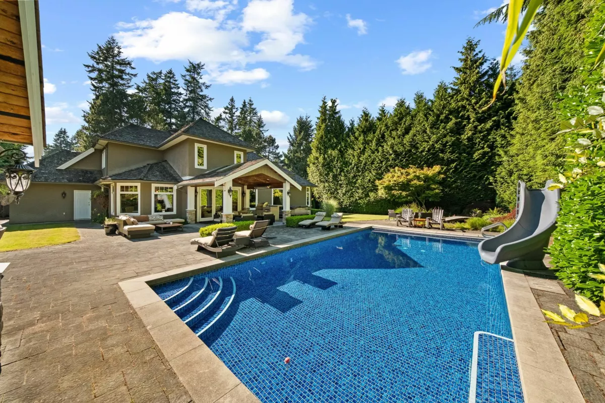 Welcome to this beautiful 3,358 SF custom home on a 14,723 SF lot in South Surrey’s coveted Elgin area. The main floor offers formal living & dining rooms, an eat-in kitchen, sitting area, stylish wine room, home office and lovely primary suite. Dual staircases lead to 3 generous upper bedrooms with ensuites. Enjoy the private, backyard oasis with a skylit covered patio area, built-in BBQ, hot tub, impeccably maintained inground swimming pool and pool house with bath and change room. Close to Crescent Park, scenic trails, and top schools Chantrell Creek & Elgin Park. Location, comfort and lifestyle…this is home!