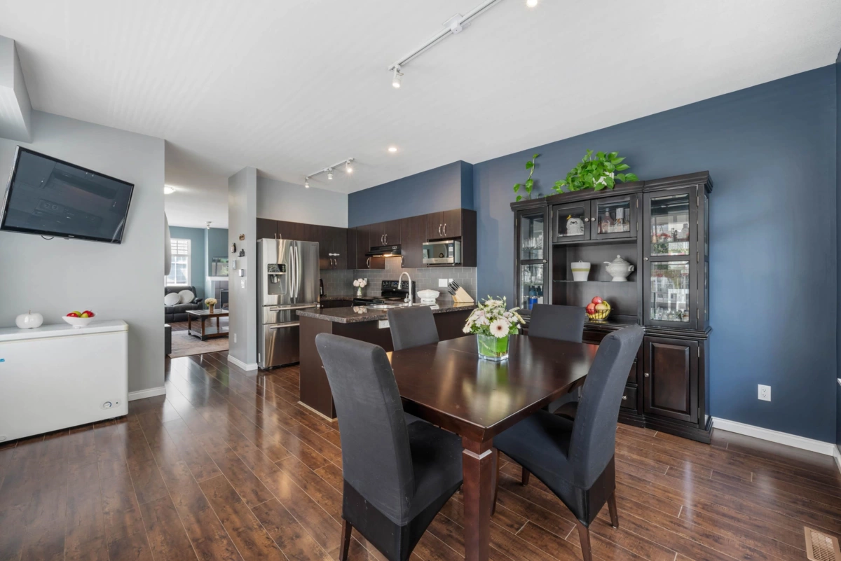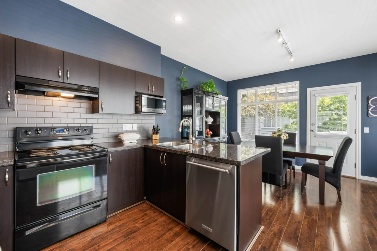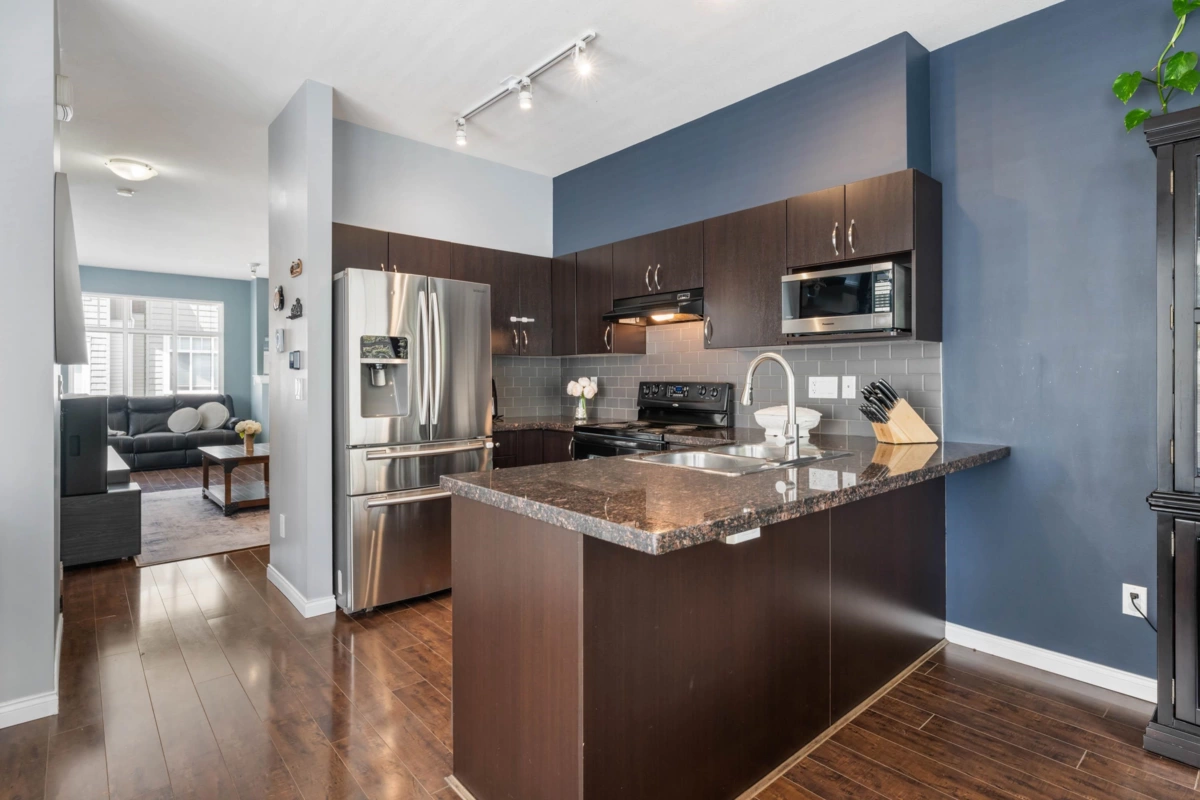 Welcome Home to "Two Blue II" A Generous End Unit Townhome in Clayton Heights, walking distance to Willowbrook Mall. Enjoy the Chef inspired kitchen with sit-up granite counters, stainless appliances and open to a huge dining area, all overlooking a huge wrap around deck through floor to ceiling windows and grassy area for the pup. 2 beds up including the Primary Suite w/ 4 piece ensuite and double closets, big enough for King size bed and large furniture. 9' ceilings throughout main level, Double tandem Garage w/ room for plus workshop area & storage, Full Driveway to wash the car, Low Maintenance Fees. Walking distance to all amenities incl. Willowbrook Mall, Good Schools, Parks, and Future SkyTrain!