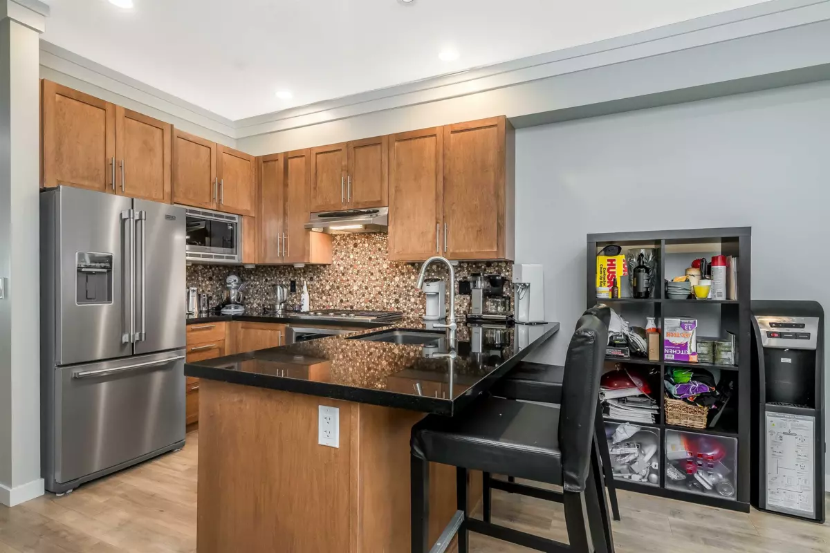 Welcome to KALLISTO! This 1,411sqft home offers 2 spacious bedrooms & 2 bathrooms. This home boasts numerous upgrades including; new vinyl plank, fresh carpet, new washer & dryer, new fridge, new dishwasher, fresh paint, new natural gas furnace, & new hot water tank. Enjoy high-end finishes throughout, including granite countertops, stainless steel appliances, custom cabinetry, crown mouldings, built-in vacuum, and EV charger. Step outside to your south-facing fenced yard with a gas BBQ hook-up complete with premium artificial turf for easy maintenance. Centrally located, just steps from Morgan Crossing shopping, Sunnyside Elementary, Southridge Private School, & numerous parks and walking trails nearby. Don't miss out on this one!
