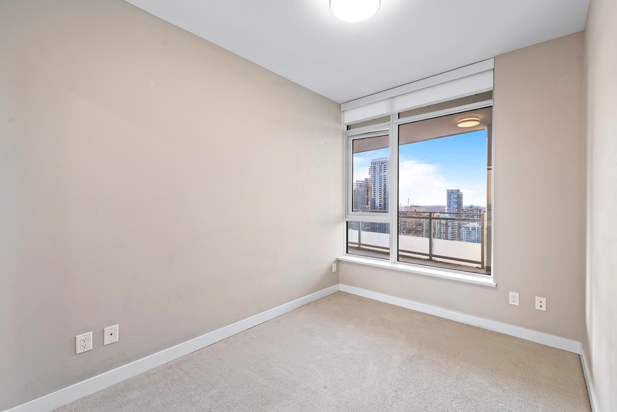SOVEREIGN built by BOSA. Beautiful southwest 2-bedroom upper unit(900+sf). Panoramic and unobstructed view of the city, downtown, mountain and sea. Plenty of natural light exposure with 168 sf balcony. Modern kitchen with Miele appliances & Kohler fixtures. Features include central A/C, over-height ceilings, gas stove and enjoy 5-star amenities. Located in the Heart of Metrotown! Just steps away from Skytrain, Crystal Mall, Metropolis, T&T, many supermarkets and restaurants. School catchment: K - 7 Chaffey-Burke Elementary; 8 - 12 Moscrop Secondary . Must be see!