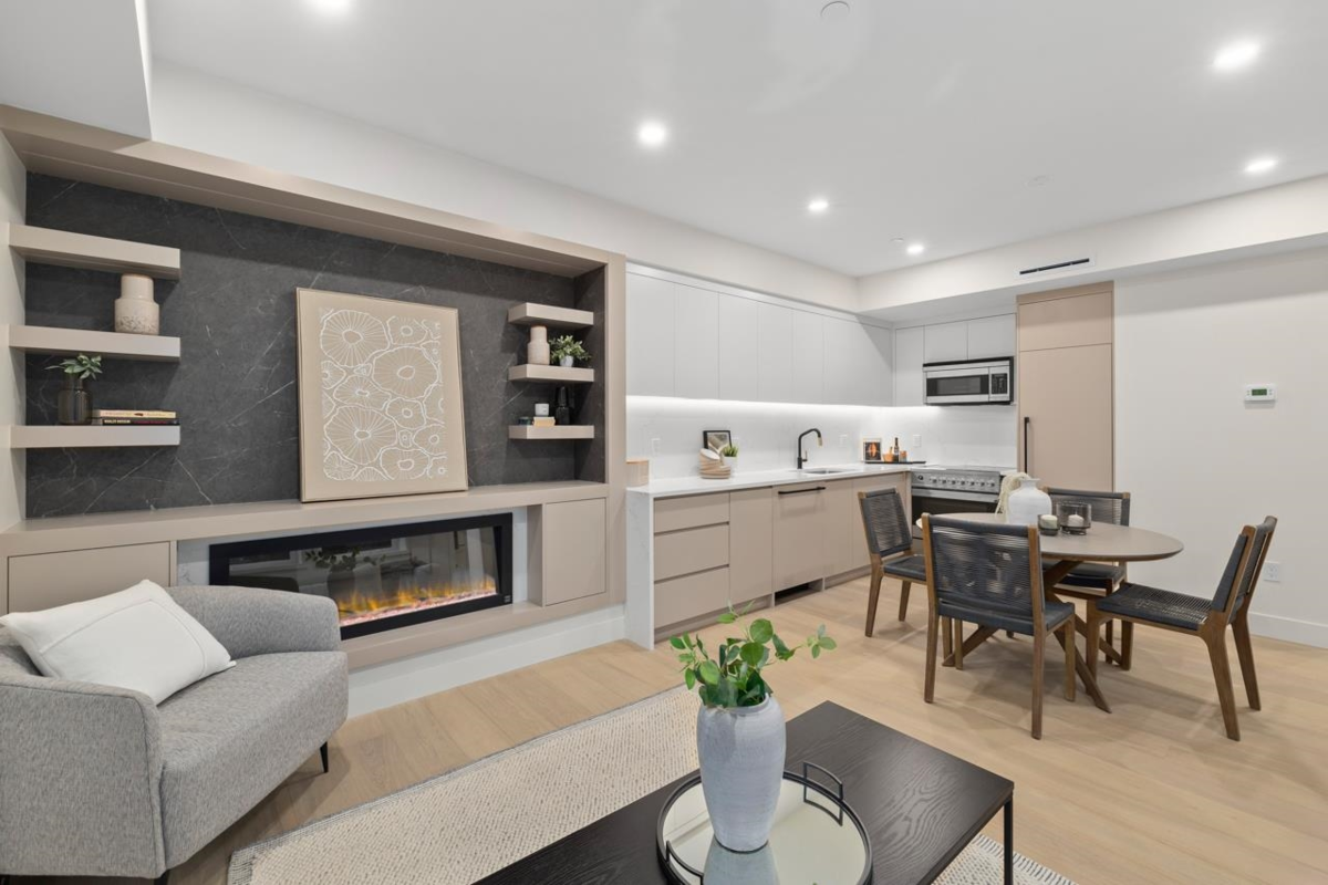 Welcome to 5West built by Asanti homes, a collection of 1, 3 , 3 + Den and 4 bedroom homes offering functionality, and style in every detail! This 1 bed, 1 bath residence spans 1 thoughtfully designed level. Boasting a spacious living room with fireplace and french doors leading to the large covered patio, dining area and gourmet kitchen, featuring custom BCG cabinetry and integrated Fisher Paykel appliances. Enjoy the spacious patio and storage locker for the bikes. Open House Nov 29th/30th Sat/Sun 2-4pm