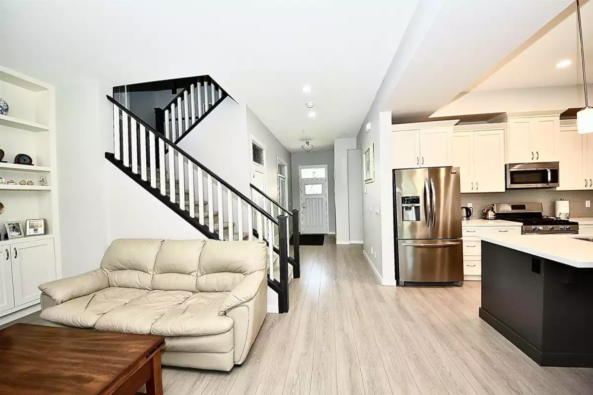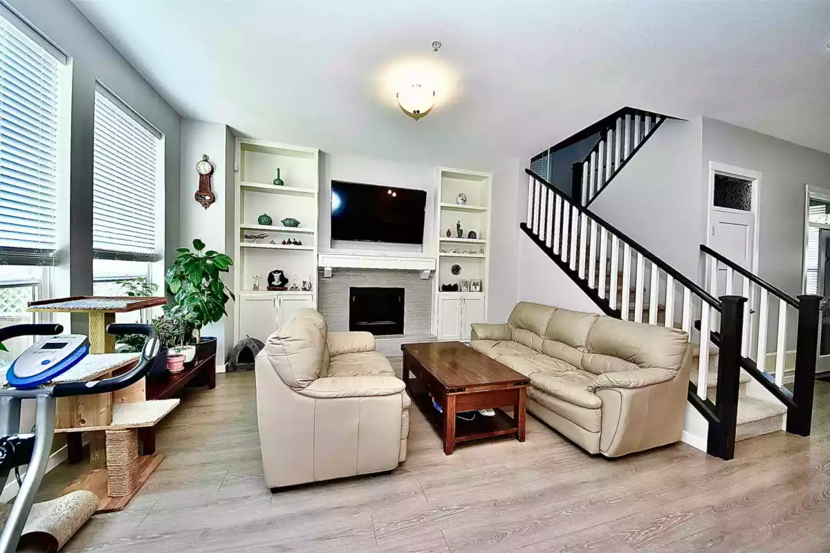 MONTGOMERY ACRES Home! Open concept design. Cozy gas fireplace in great room with designer tile, built-in book cases & cabinets. Main floor has 1 O' ceilings & tall interior doors with transom glass, gorgeous laminate wide-plank flooring flows throughout complimented by the beautiful mill work. Entertainers dream kitchen has quartz counters, huge island, stainless steel appliances & big eating area. Large south facing deck. Private fenced backyard with various fruit trees and vegetable garden. Nice Den off entry. The upper floor features 3 bedrooms Vaulted Master retreat complete with his & hers walk-in closets and spa like ensuite with oversized shower & free-standing soaker tub. Legal basement Suite with separate laundry and entrance. Easy to show by appointment.