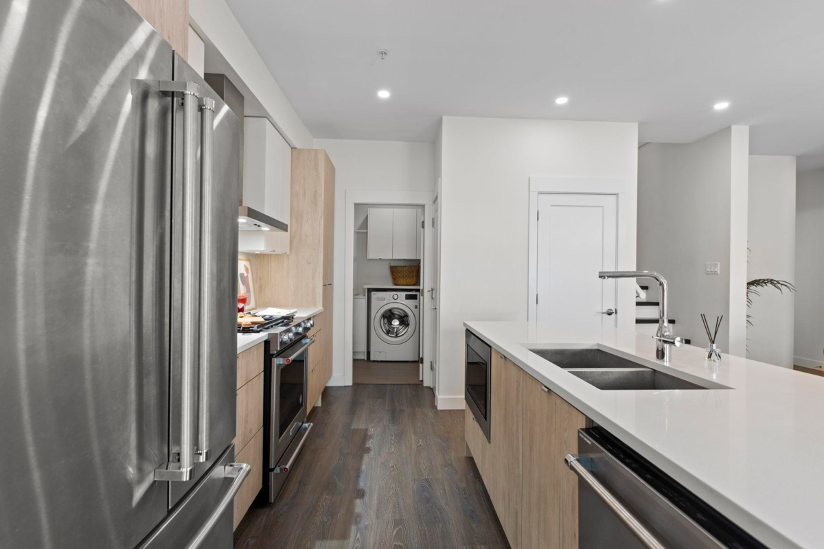 Welcome to Luxia in Willoughby! 3 storey townhouse featuring 3 Bedrooms + 3 Bathrooms with 1,600 Sq Ft of living space. Modern design with open concept living room & gourmet kitchen featuring an island with quartz countertops, pantry, and stainless steel kitchen aid appliances. Powder room on the main and laminate flooring throughout. Master Bedroom features a walk-in closet and ensuite bathroom with his & her sinks. Upgrades include gas hookup on the patio, laundry sink & cabinetry and epoxy flooring in the double garage. Total of 3 patios including the amazing ROOF TOP deck ideal for entertaining with stunning views. Located close to shopping, recreation, schools, Hwy 1 and much more. Club House includes a fitness studio and social lounge/party room. Located in the heart of Langley!