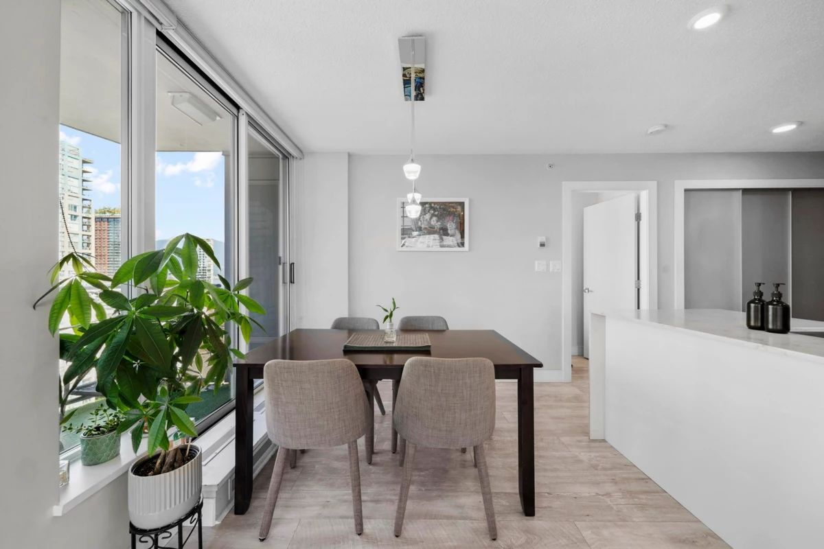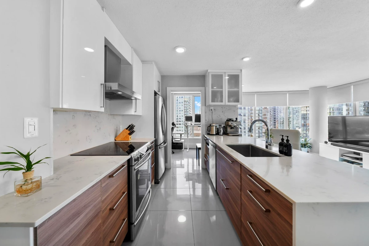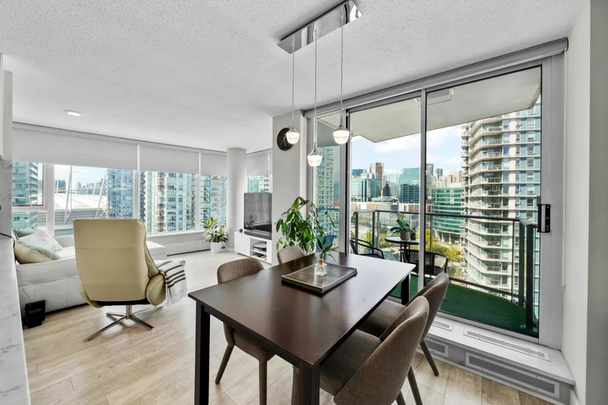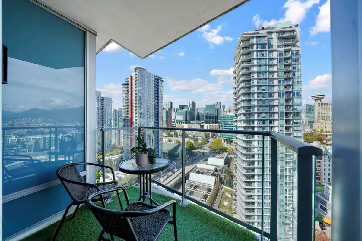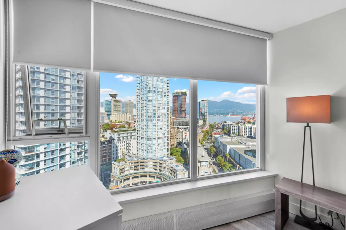 Live the good life at ESPANA! One of the few downtown Vancouver buildings that allows short-term rentals, giving owners the option to host while away; an excellent way to supplement your mortgage. This professionally renovated 2 Bed + 2 Bath home features a den converted into extra closet space and a solarium redesigned into a functional den. Enjoy a balcony with stunning North Shore mountain and Burrard Inlet views, a modern kitchen, and sleek bathrooms. Steps to the seawall, cafés, shops & transit. Resort-style amenities include 24hr concierge, 25m pool, hot tub, gym, library & party room. Includes 1 parking. Open House Sunday October 12 2-4 pm.