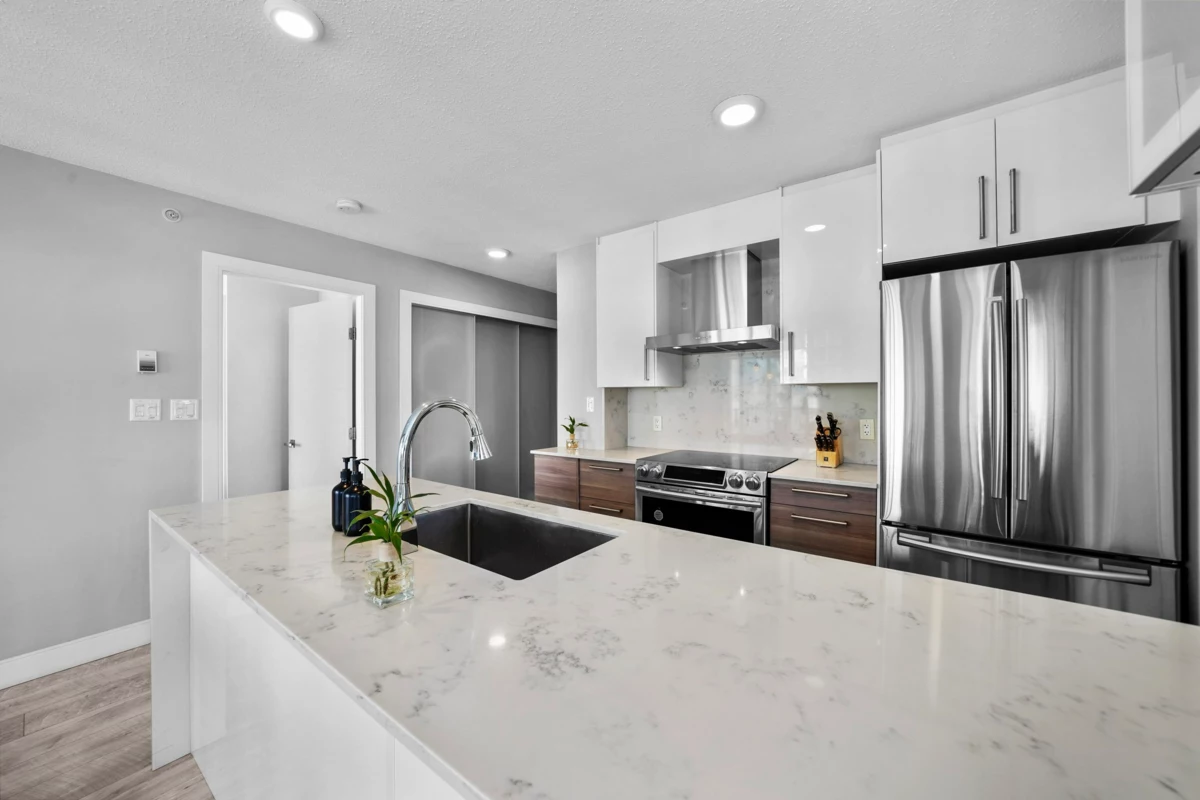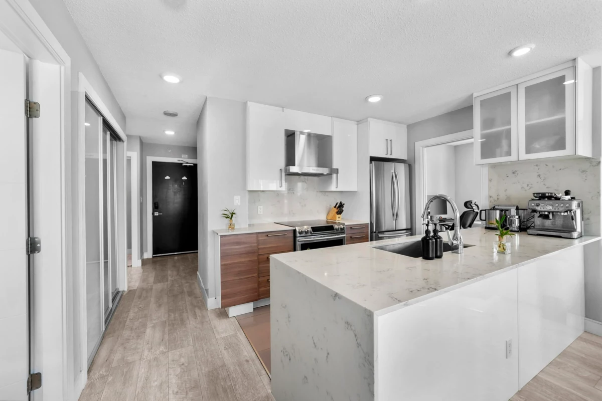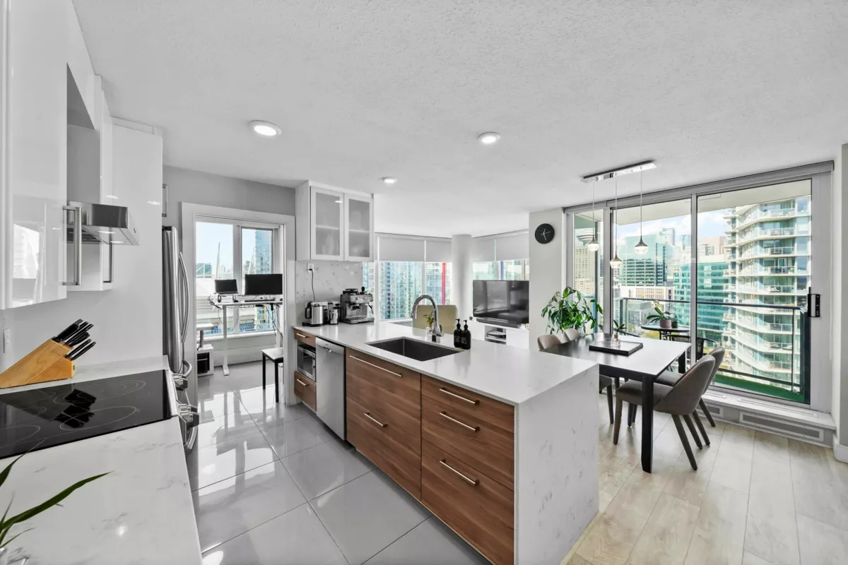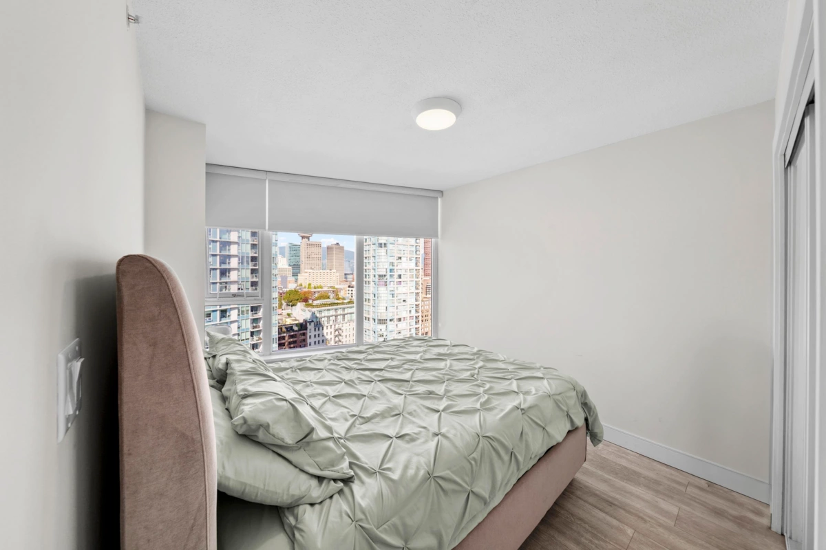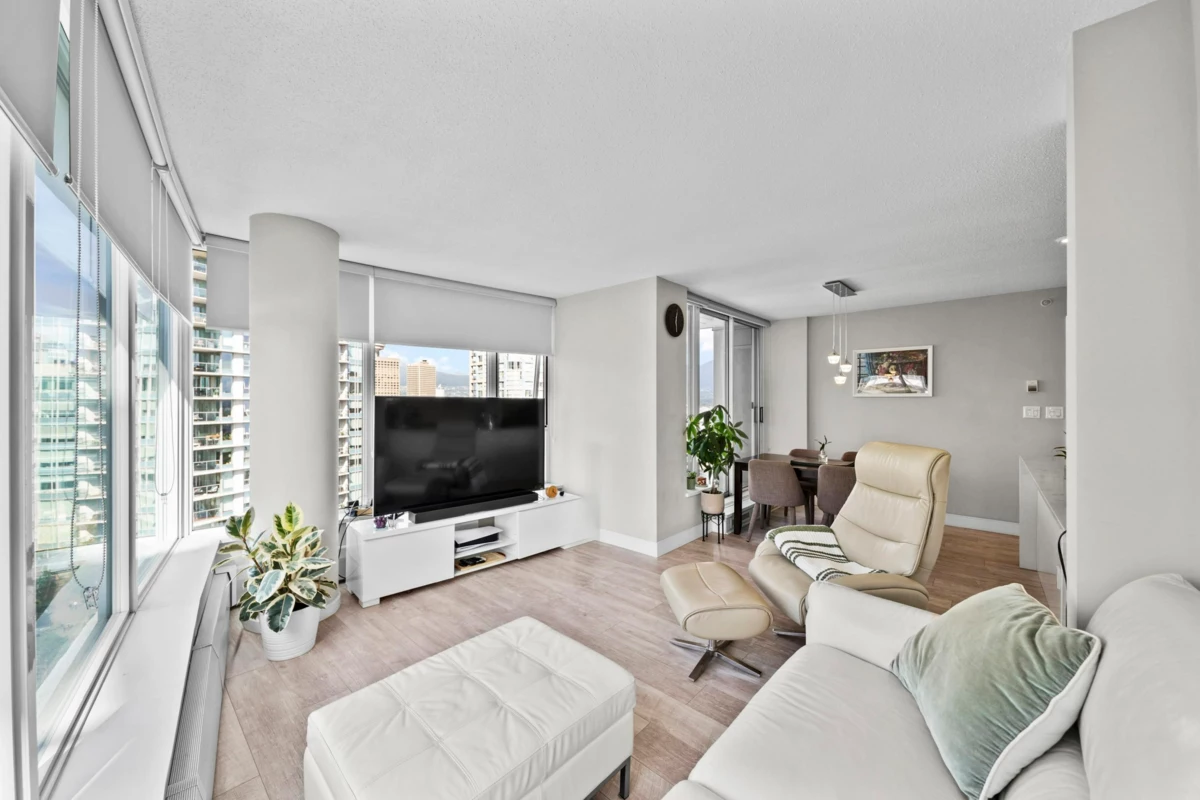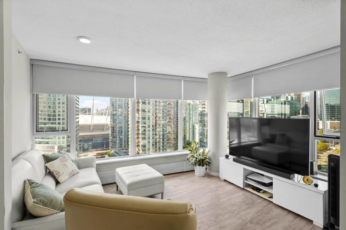 Live the good life at ESPANA! One of the few downtown Vancouver buildings that allows short-term rentals, giving owners the option to host while away; an excellent way to supplement your mortgage. This professionally renovated 2 Bed + 2 Bath home features a den converted into extra closet space and a solarium redesigned into a functional den. Enjoy a balcony with stunning North Shore mountain and Burrard Inlet views, a modern kitchen, and sleek bathrooms. Steps to the seawall, cafés, shops & transit. Resort-style amenities include 24hr concierge, 25m pool, hot tub, gym, library & party room. Includes 1 parking. Open House Sunday October 12 2-4 pm.