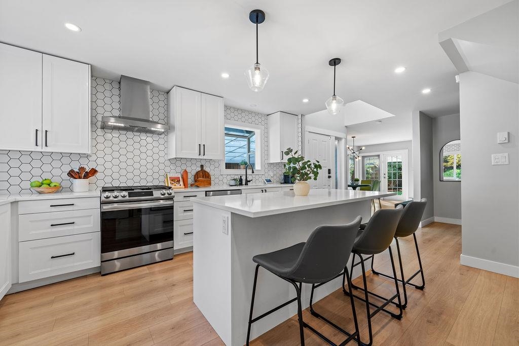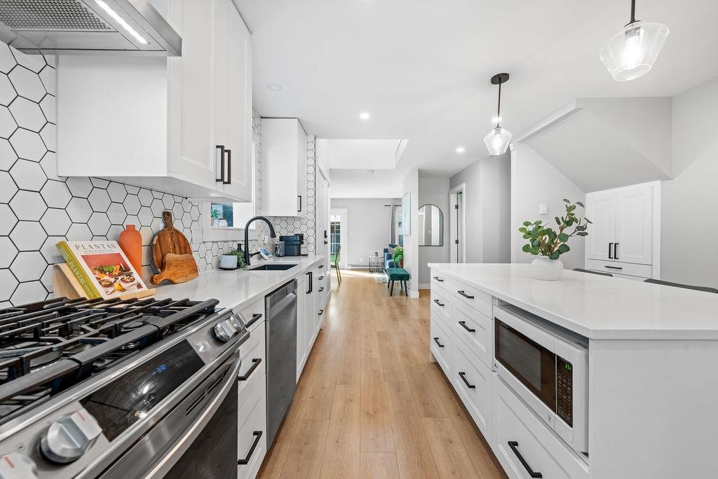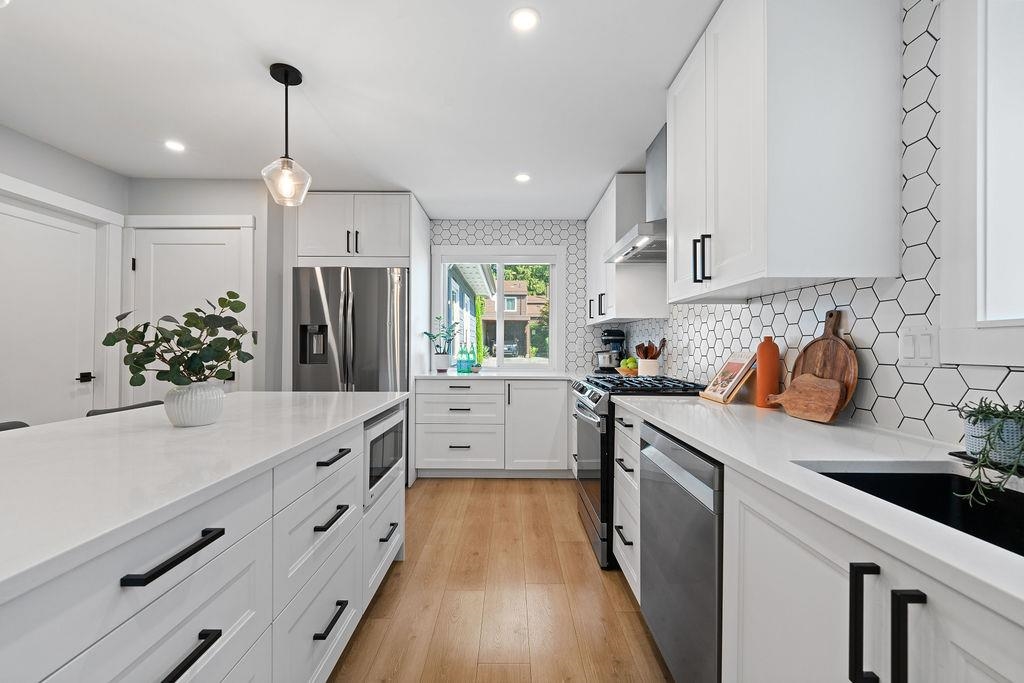 FANTASTIC VALUE IN A BEAUTIFUL NEIGHBOURHOOD! Your own detached home for less than the price of most townhomes! Located in a coveted neighbourhood & in a great school catchment that includes RC MacDonald. Inside is light and bright with new designer kitchen, open plan living/dining room that opens to a covered patio. You'll also find a full laundry room on the main along with a bedroom. Head upstairs for 2 more bedrooms and tons of closets/storage. Updated flooring, bathrooms, lighting, paint. Move-in ready! Fully fenced yard with lush grass and blooming trees perfect for kids and pets, tons of parking. You'll love coming home!