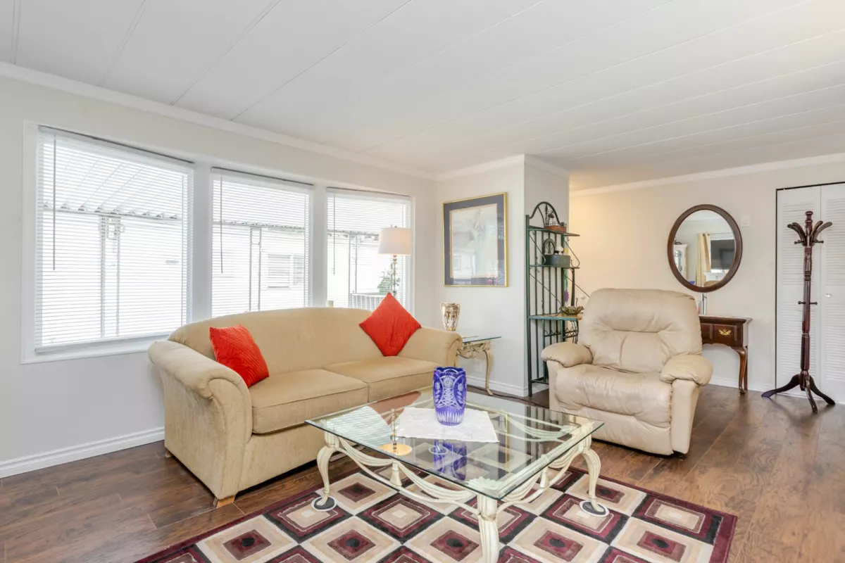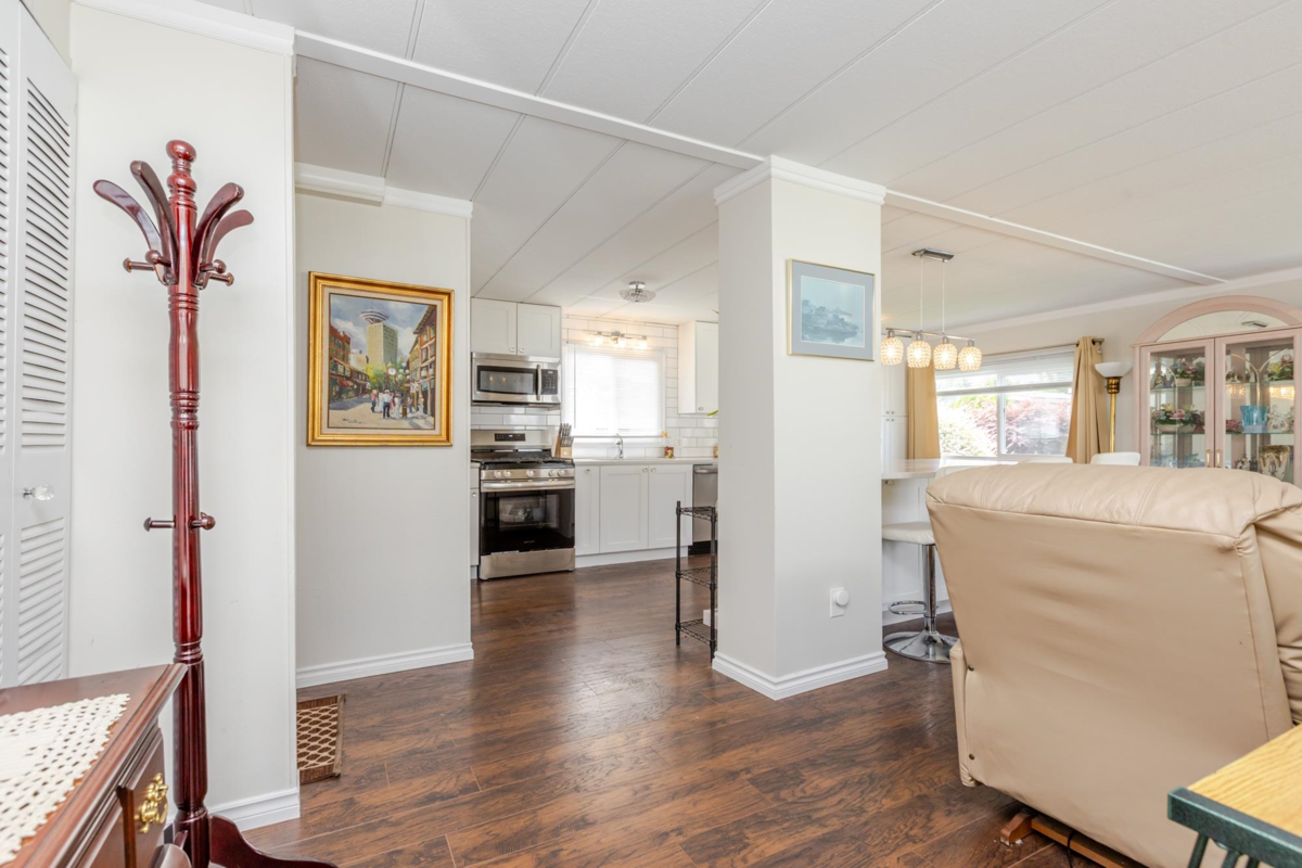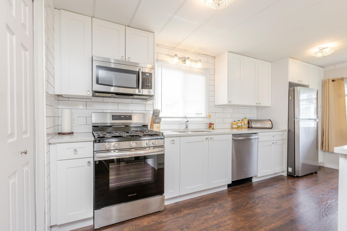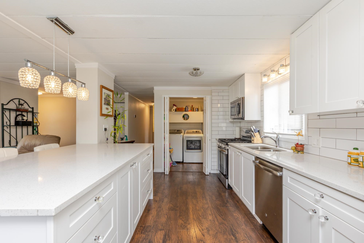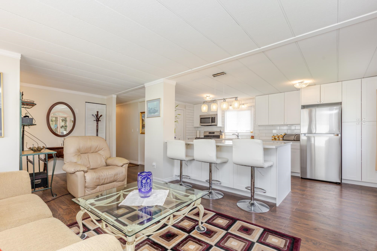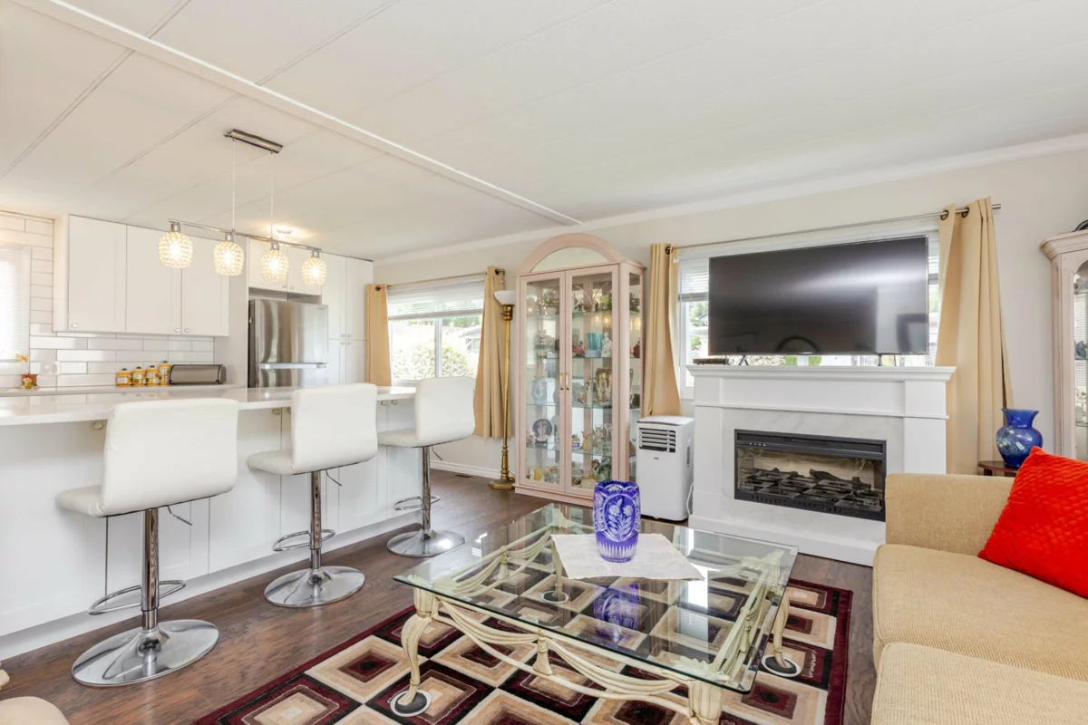 Welcome to Breakaway Bays, a wonderful community for retirees and families. Bright & spacious completely renovated 2 bed, 2 bath double-wide , Open concept living. Features include a designer kitchen with island & "NEW" Appliance incl Gas stove!, vinyl windows, 4 yr old roof, NEW hot water on demand, NEW heat pump (Air Conditioning), large laundry room with extra storage, and attached 10' X 10' powered workshop and so much more! Enjoy a private large backyard, garden beds, covered carport, and resort-style amenities including a pool and rec center. No age restrictions, Pets allowed with restrictions, Minutes to White Rock Beach, US Border, shopping & more!