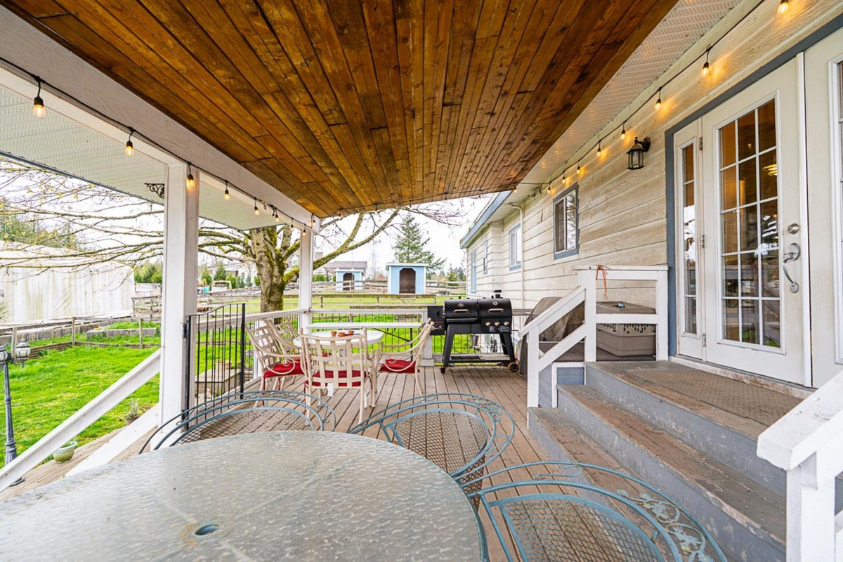 Welcome to 10 acres of countryside in Langley’s coveted Otter District—perfect for horse lovers and multi-use rural living. A winding tree-lined driveway leads to an updated post & beam split-entry home with vaulted ceilings, granite counters, and an open layout flowing to a private covered patio. With 5 bedrooms up, 2 down, a spacious rec room, soundproof media room, and fireplaces on both levels, there’s space for everyone. Enjoy views of fenced paddocks and a sand riding arena from the home. The deluxe 12-stall barn features rubber matting, stamped concrete, tack & feed rooms, and a covered wash bay. The property also offers cross-fenced paddocks, green space, an insulated 21x23 garage, hay shed, and workshop! Call for more details today!