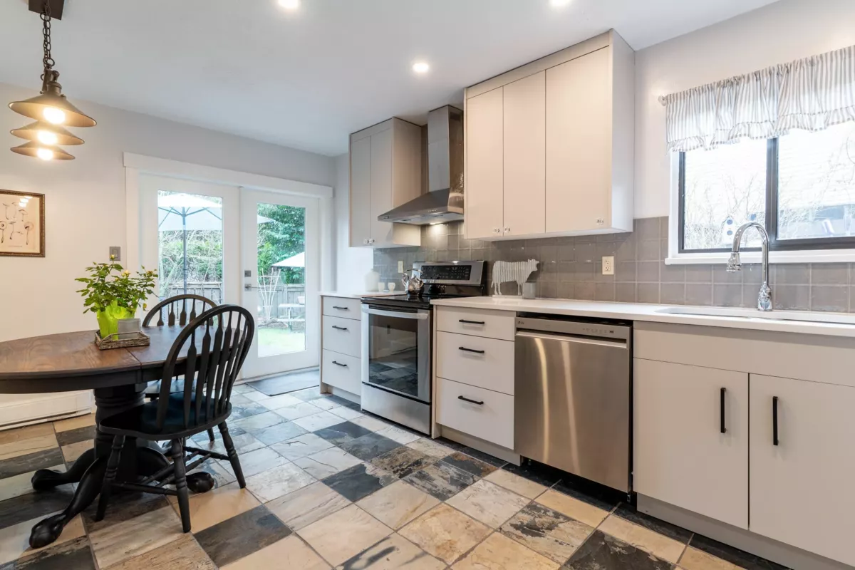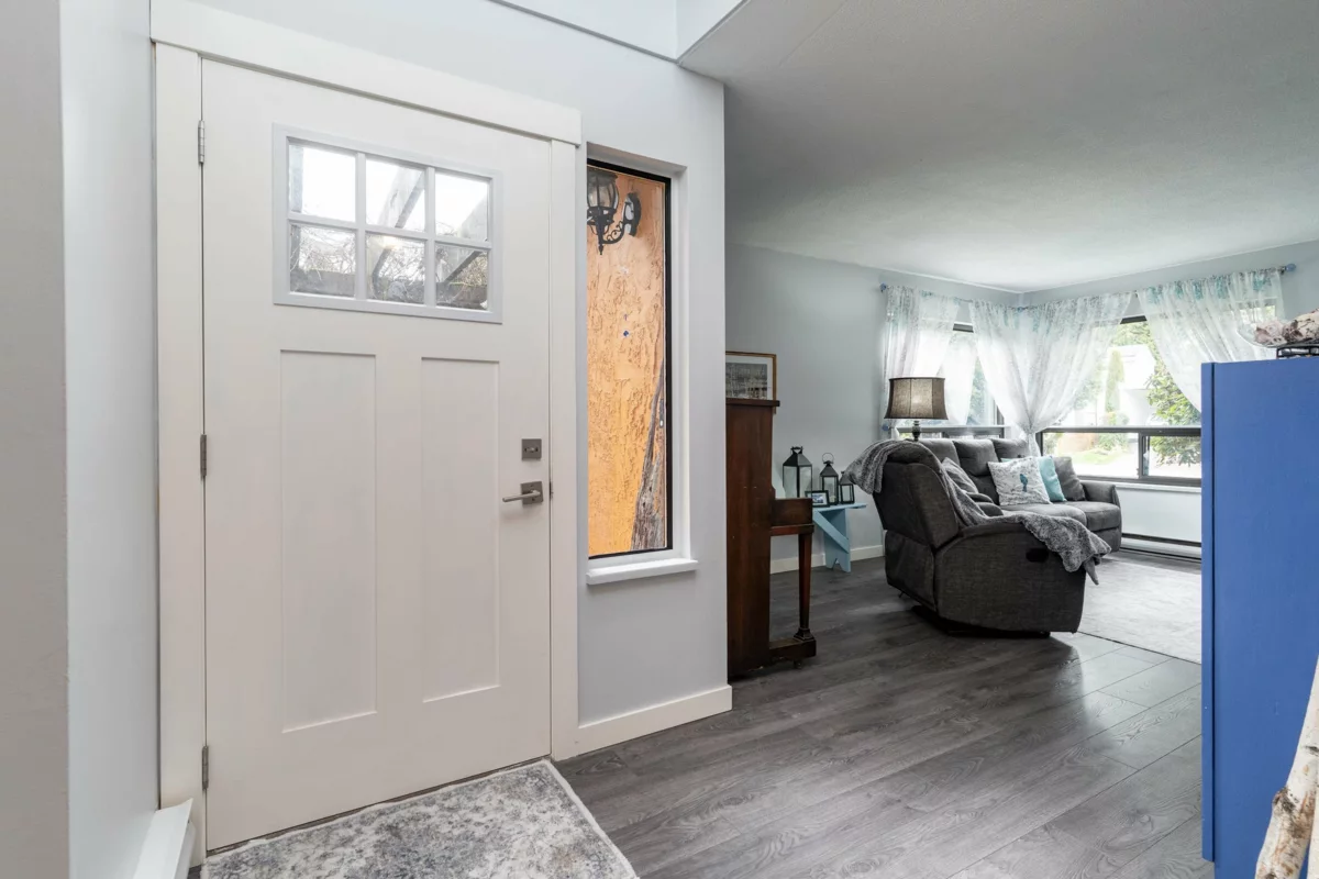 You found it! Coquitlam Home Ownership without a strata. Yes, it's possible with this tastefully updated, semi-detached, cozy family home. Nestled on a quiet street & steps to shopping, acres of mature parkland, all levels of schooling + many transit options nearby. 3 beds, 1.5 baths, 2 driveways, bring your R.V. A full sized walk-in laundry w/ extra space for your private office/study/hobby room. Your spacious eat-in kitchen offers a modern color palette & plenty of prep & cabinet space (new appliances too). Step through the double doors to your entertaining deck & thoughtfully chosen garden that blooms annually. Bright & sunny morning till evening. Perfect for kids, pets & the veggies you always wanted to grow. Freshly painted exterior, move in ready!