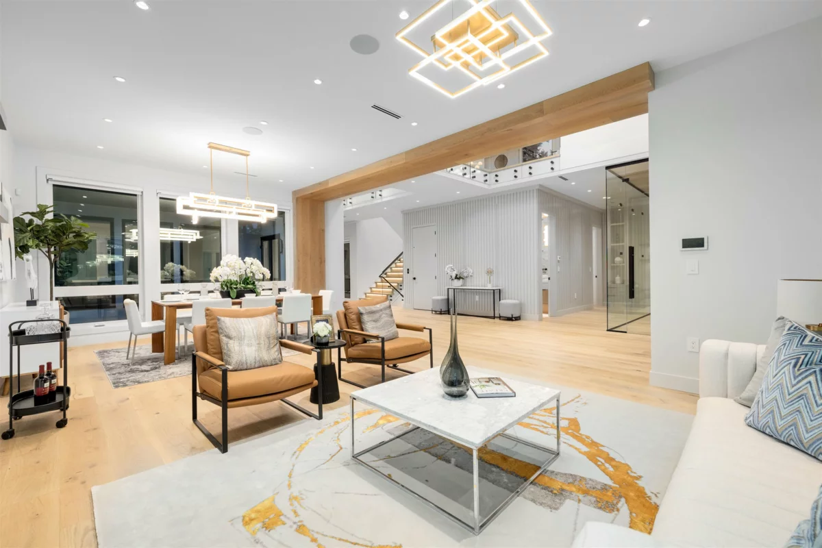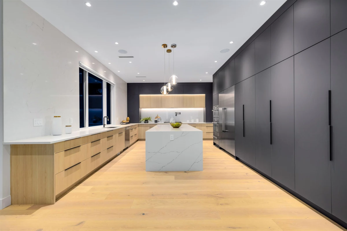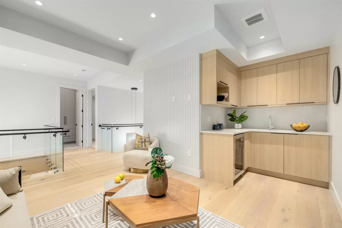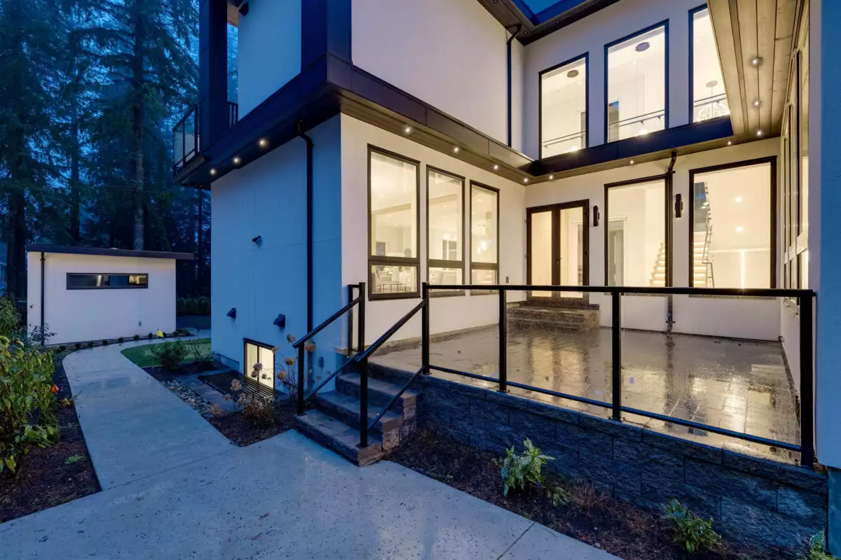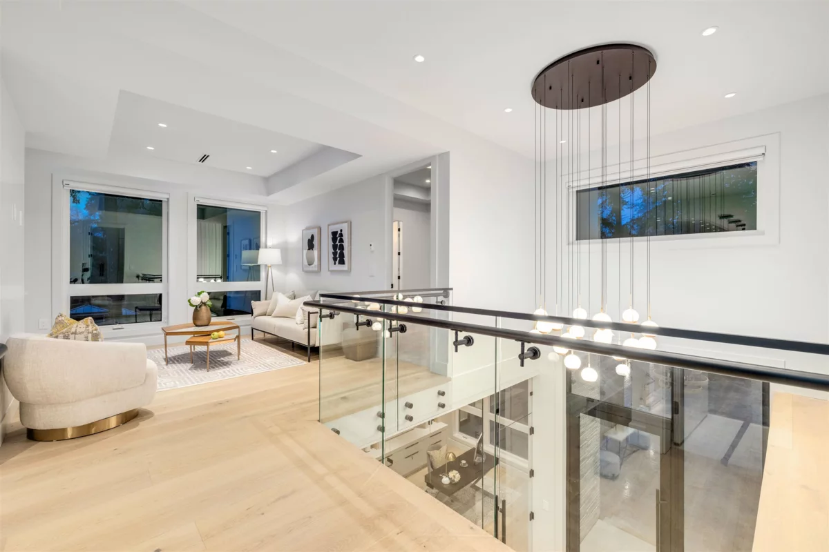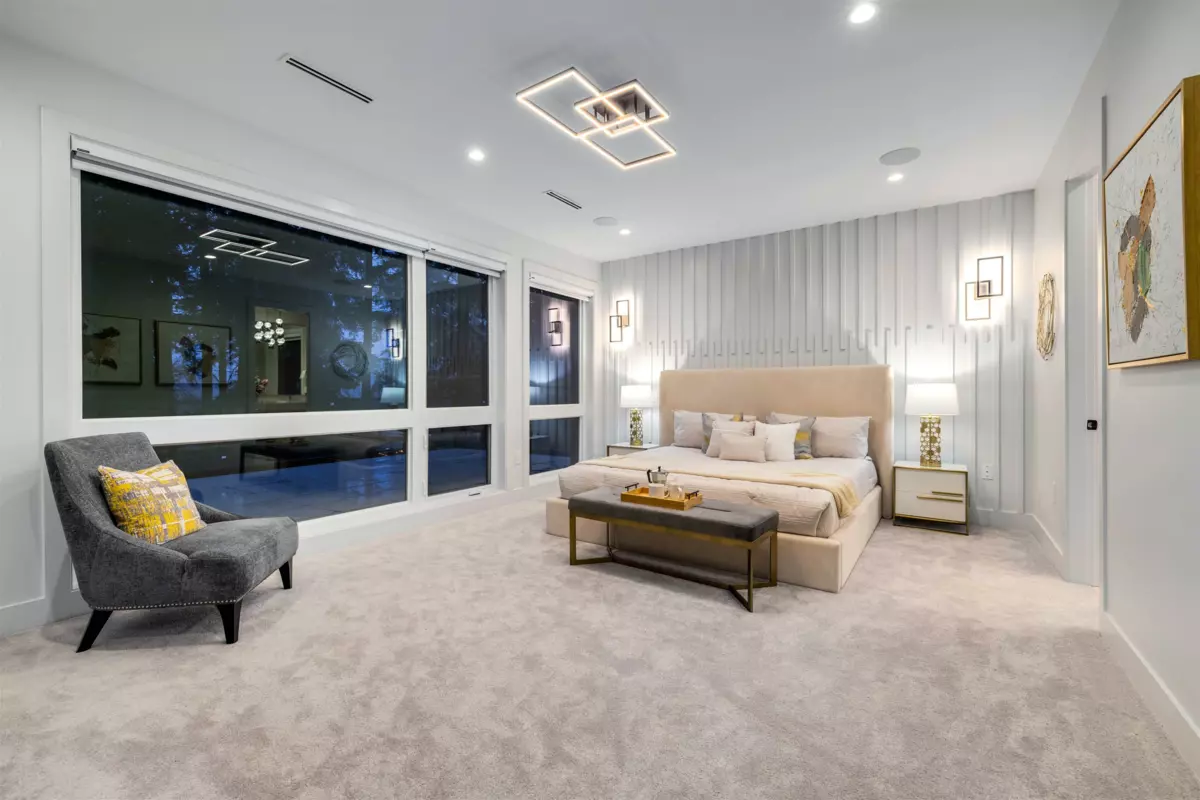 MODERN YET FUNCTIONAL LUXURY HOME! This elegant residence seamlessly blends contemporary design with practical living, offering the perfect balance of style and functionality.The main floor boasts an open-concept layout featuring a glass-door home office, a private bdrm with an ensuite, & two kitchens, equipped with waterfall islands and top-of-the-line appliances. Upstairs, discover four spacious ensuites, including a luxurious primary bdrm with floor-to-ceiling glass windows and access to a private deck. A cozy sitting area provides an ideal space to relax and unwind. The lower level offers a gym, a media room, and a 2-bedroom legal suite with separate access. A self contained coach house, , ample front parking, abundant natural light, designer lighting fixtures, a private backyard.
