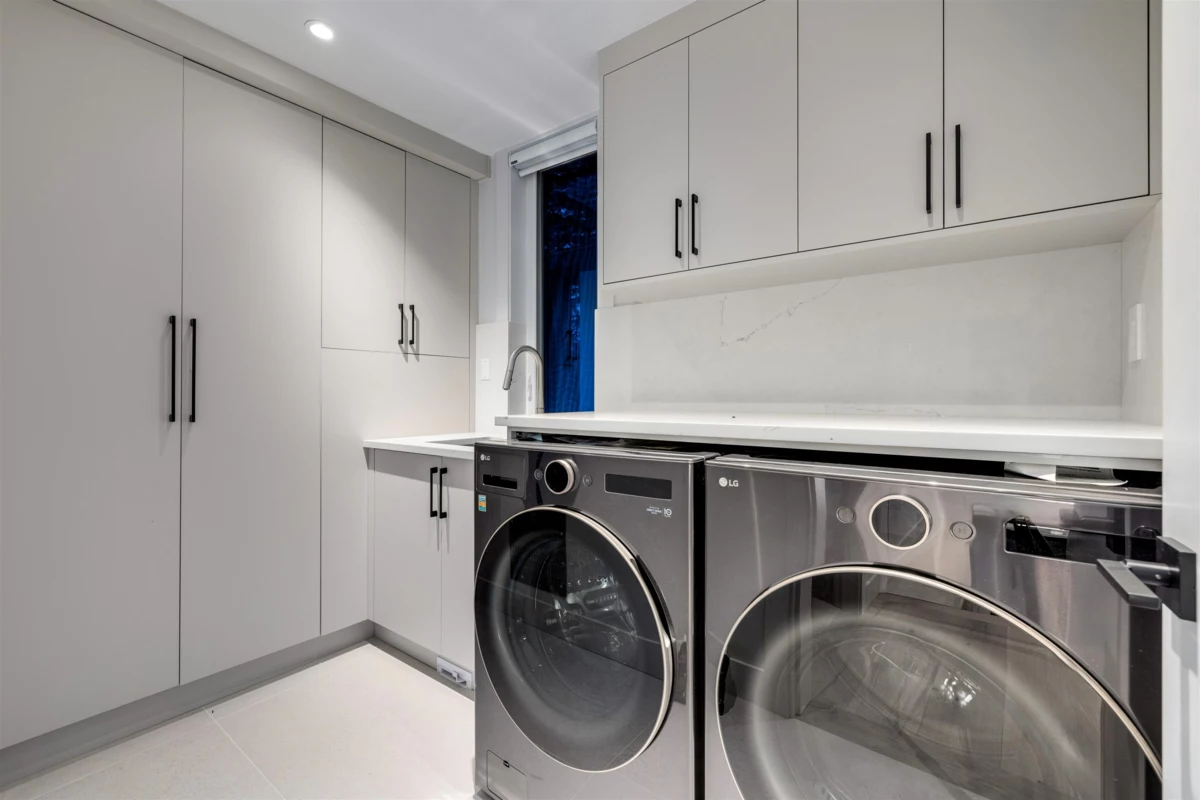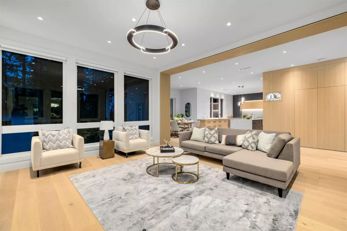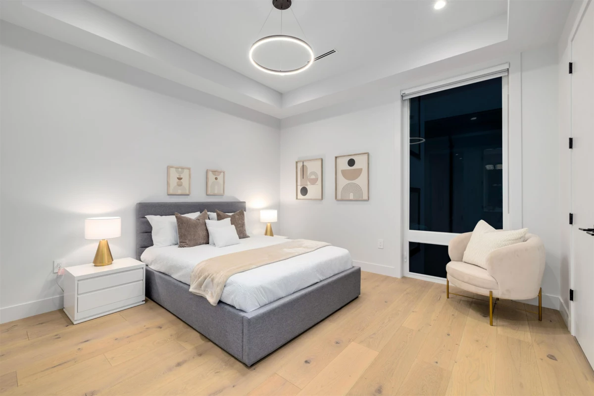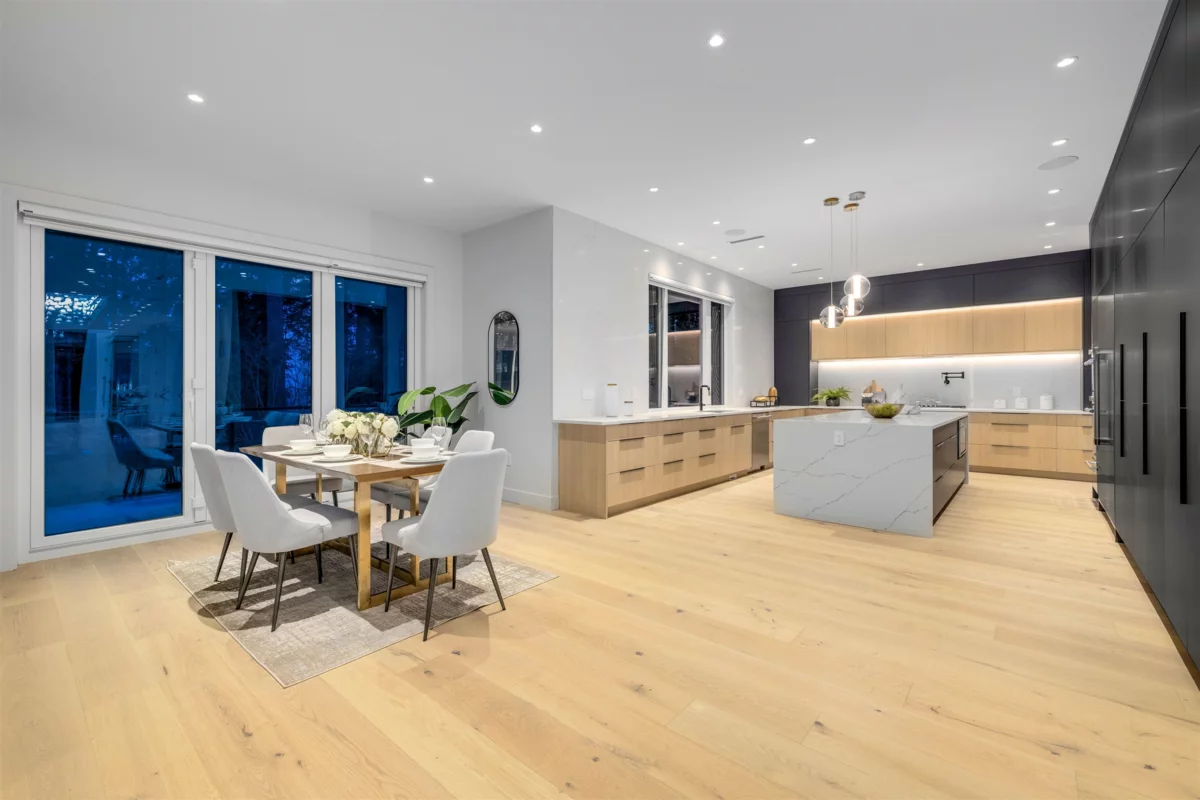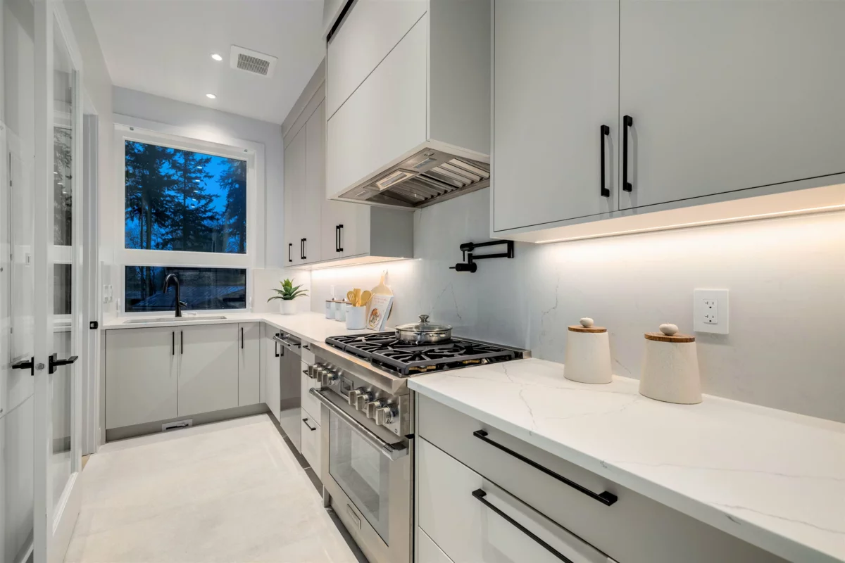 MODERN YET FUNCTIONAL LUXURY HOME! This elegant residence seamlessly blends contemporary design with practical living, offering the perfect balance of style and functionality.The main floor boasts an open-concept layout featuring a glass-door home office, a private bdrm with an ensuite, & two kitchens, equipped with waterfall islands and top-of-the-line appliances. Upstairs, discover four spacious ensuites, including a luxurious primary bdrm with floor-to-ceiling glass windows and access to a private deck. A cozy sitting area provides an ideal space to relax and unwind. The lower level offers a gym, a media room, and a 2-bedroom legal suite with separate access. A self contained coach house, , ample front parking, abundant natural light, designer lighting fixtures, a private backyard.