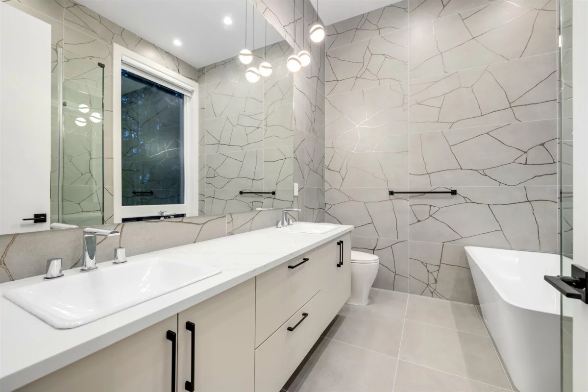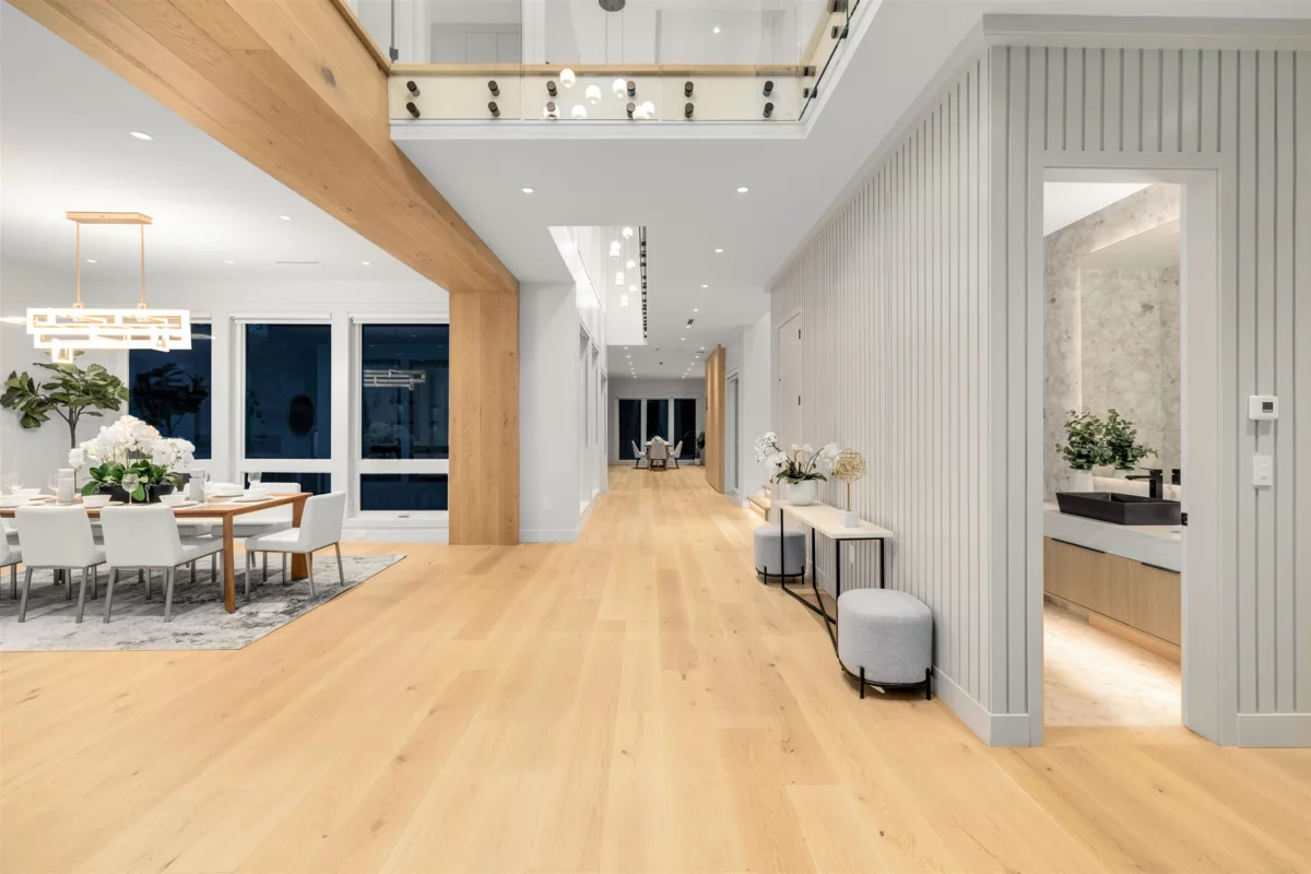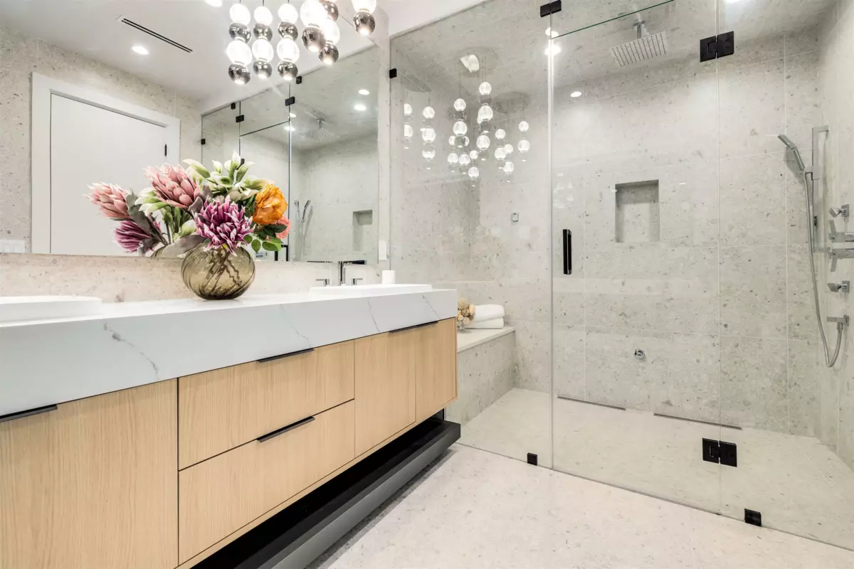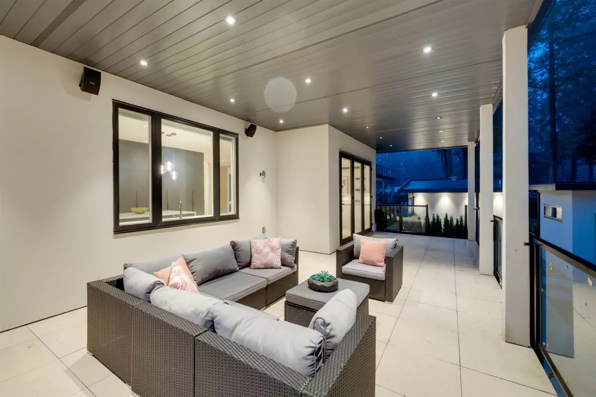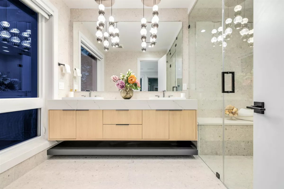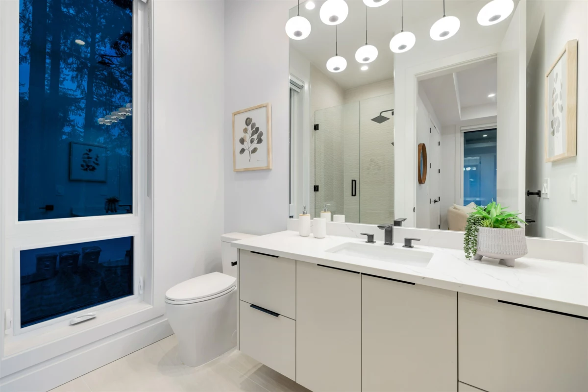 MODERN YET FUNCTIONAL LUXURY HOME! This elegant residence seamlessly blends contemporary design with practical living, offering the perfect balance of style and functionality.The main floor boasts an open-concept layout featuring a glass-door home office, a private bdrm with an ensuite, & two kitchens, equipped with waterfall islands and top-of-the-line appliances. Upstairs, discover four spacious ensuites, including a luxurious primary bdrm with floor-to-ceiling glass windows and access to a private deck. A cozy sitting area provides an ideal space to relax and unwind. The lower level offers a gym, a media room, and a 2-bedroom legal suite with separate access. A self contained coach house, , ample front parking, abundant natural light, designer lighting fixtures, a private backyard.
