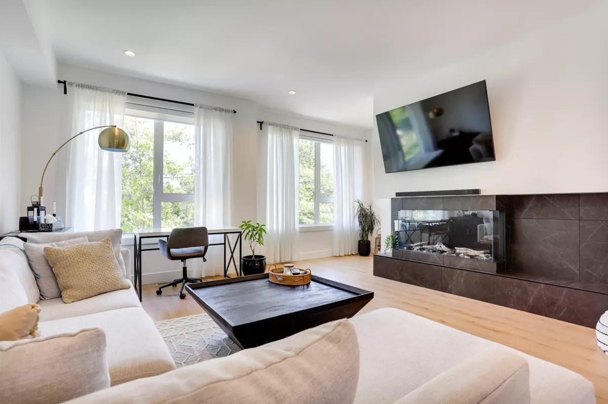 Welcome to THE OAK a luxurious and comfortable living experience with impressive features including 4 bedrooms, 4 bathrooms, central AC & heating, custom closets, a built-in fireplace, and large windows that showcase mountain views and tons of natural light. The over 2,000 square feet of space includes a master suite with 12-foot ceilings, an ensuite, his & hers closets. The modern kitchen boasts stainless appliances, a spacious quartz island with a built-in breakfast table, and access to a balcony. Additional amenities include a double garage with EV charging, a clubhouse, fitness center, and playground, making it an excellent choice for luxury and convenience. Close to all amenities and easy access to highways.