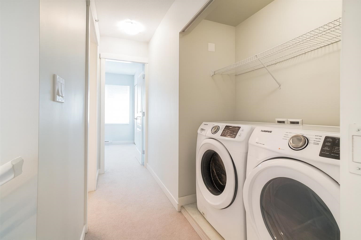 Welcome to Ashbury and Oak by Polygon, a sought-after community built by a reputable developer. This spacious 3 BD + DEN, 3 BA home offers over 1,400 sq.ft. of living space with 9’ ceilings on the main floor and a convenient side-by-side double garage. The main level features an open layout with a powder room for guests. Upstairs, the primary bedroom boasts a large walk-in closet and a stunning ensuite with dual sinks. Enjoy access to the 8,000 sq.ft. private residents’ clubhouse complete with an outdoor pool, hot tub, fitness studio, indoor playroom, dog wash station, and more. Fantastic location near Willoughby Town Centre and quick access to Highway 1. Well maintained and move-in ready!
