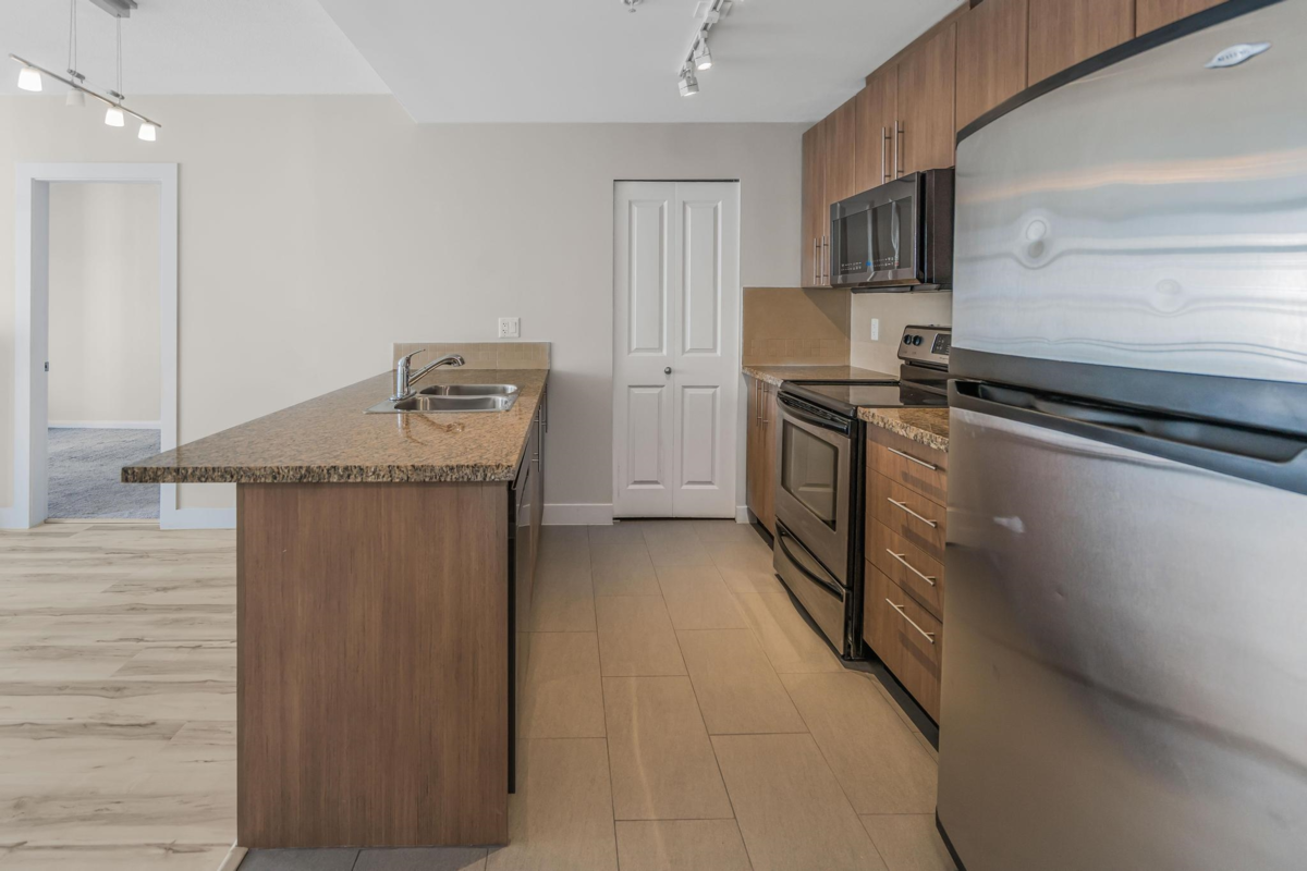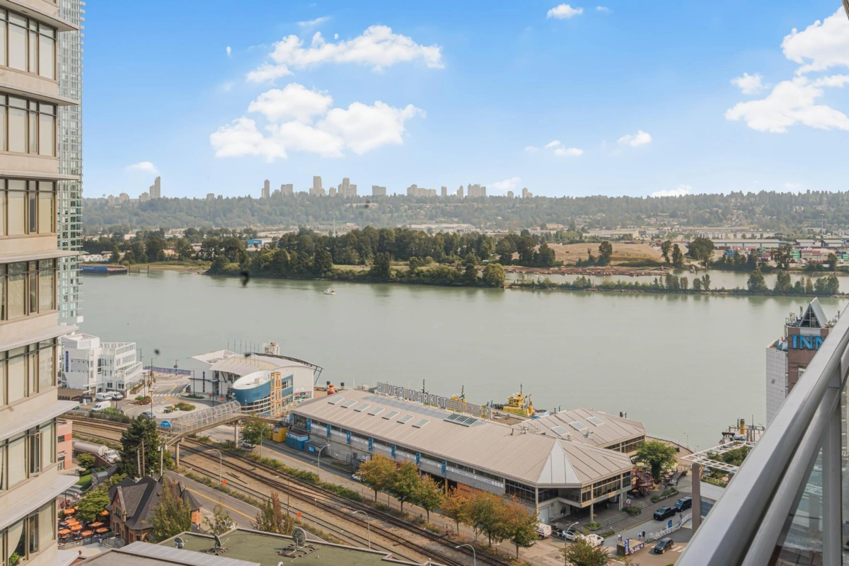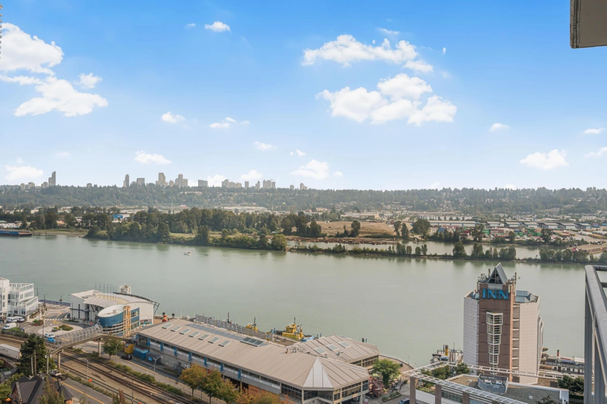 Welcome to Azure I. Seize a rare opportunity to own a prime 2 BED + 2 BATHROOM condo, showcasing stunning NE Fraser River views. This open-concept home is an entertainer's dream, featuring a stylish kitchen island, stainless steel appliances, and granite-finished bathrooms. Freshly Painted + Brand New LAMINATE flooring in Living / Dining Room. Enjoy immediate access to the lively New Westminster Quay. Building amenities include a 9th-floor rooftop terrace and a fitness centre. The 4th floor offers unmatched convenience with direct links to diverse restaurants, Safeway, Starbucks, and the New Westminster Skytrain Station. School Catchments as follows Qayqayt Elementary, Fraser River Middle, and New Westminster Secondary. OPEN HOUSE NOV 16 1-3PM