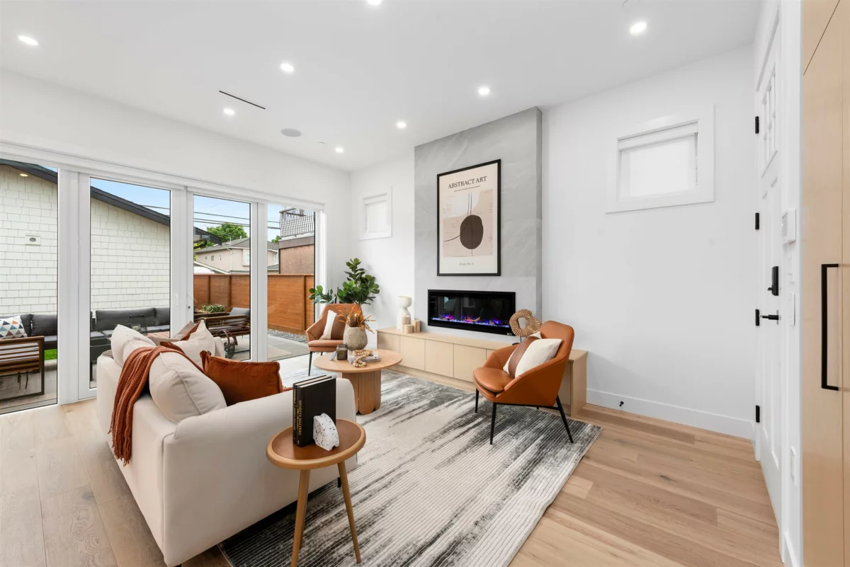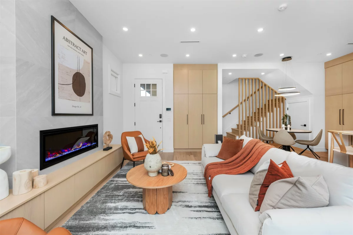 Welcome to this stunning BACK DUPLEX three-level home featuring 3 bedrooms and 3.5 bathrooms. This residence boasts a spacious SOUTH FACING patio, perfect for unwinding or hosting guests. The main floor impresses with over 9-foot tall ceilings, a cozy fireplace, high-end appliances, ample storage, and abundant living space, making it ideal for a growing family. Located in the desirable Hastings School catchment, this home ensures excellent educational opportunities. Centrally located with a walk score of 94, daily errands are a breeze giving you more time to relax in your private patio. Don't miss your chance to claim your peice of paradise at 2680 Triumph Street.