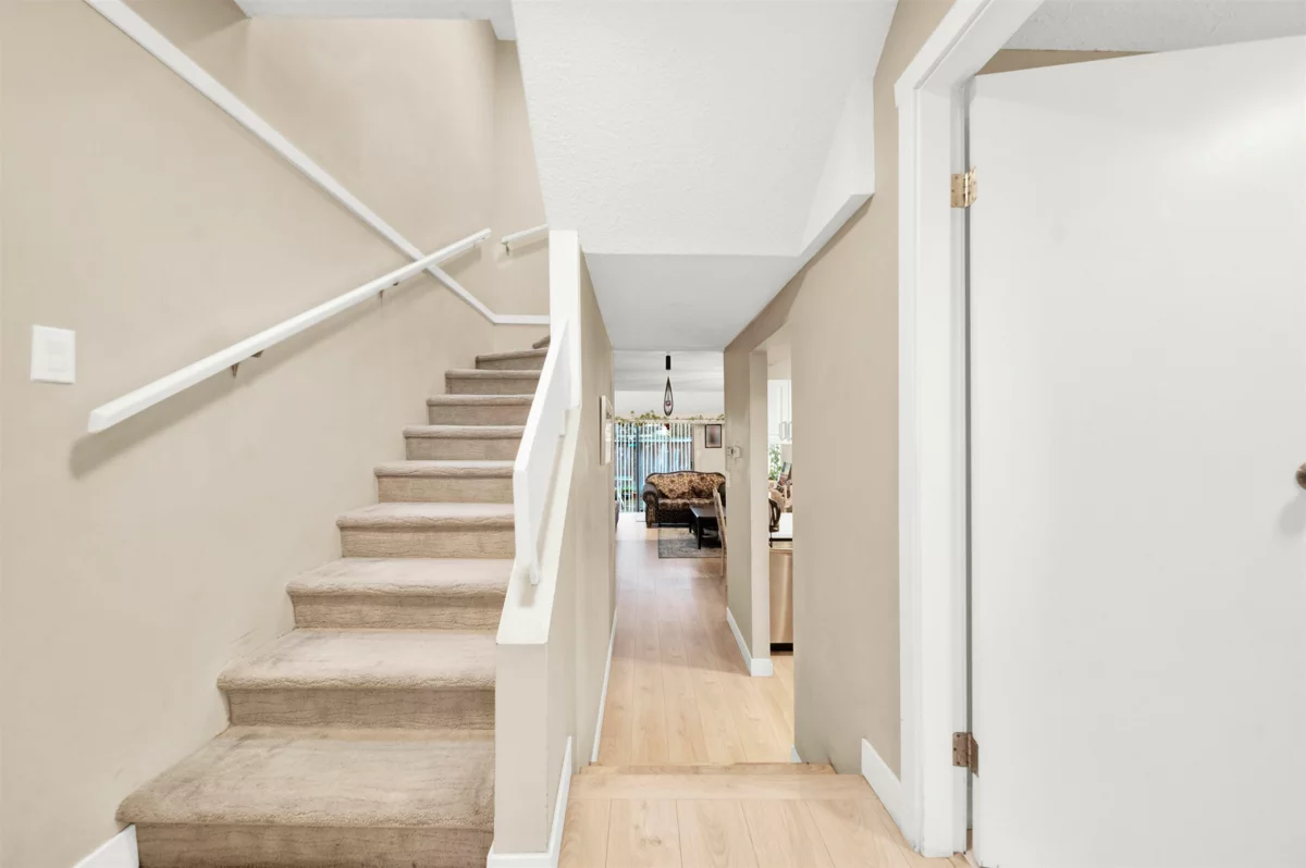 2 bed 2 bath corner townhome in the heart of Cloverdale. Renovated - main floor features fully renovated kitchen with new kitchen cabinets, quartz countertop, new appliances & dining room/living room with laminate flooring. New paint & carpet throughout. Separate laundry room with storage & powder all on the main. Upstairs - 2 large bedrooms with new paint & new elegant light fixtures. Main bathroom has new quartz countertop and new vanity cabinets; new vanity light fixture with new tiles on the bathtub wall.
