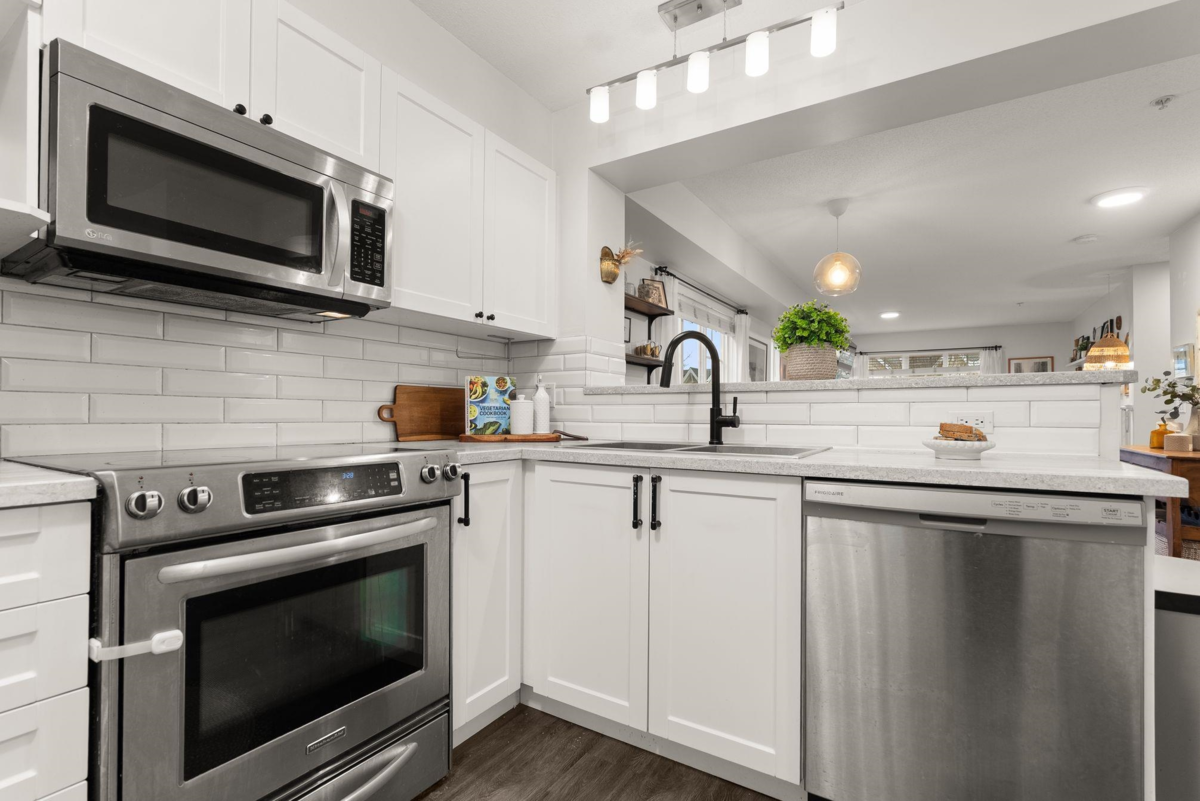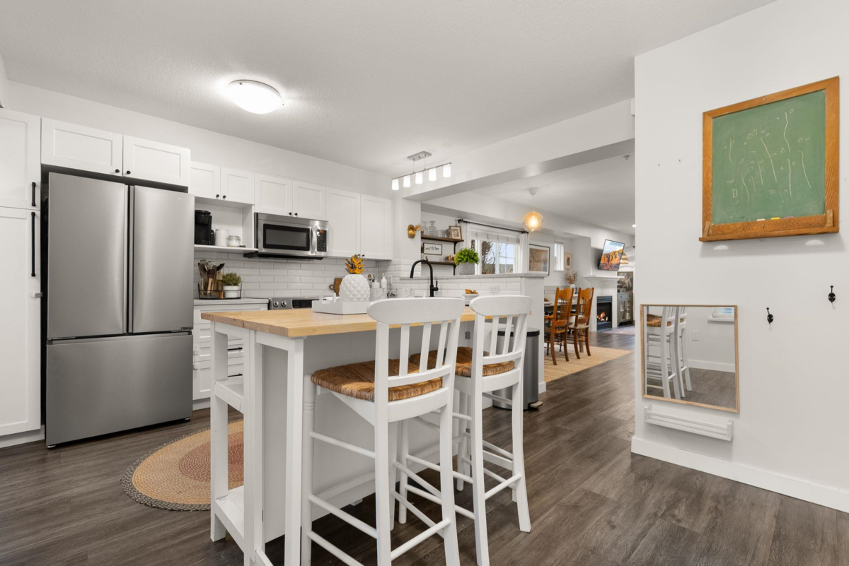 Amberleigh 2 END UNIT townhome in the center of Willoughby Heights. This beautiful 3 bdrm 2 bath townhome has had many updates. Lots of white cabinets, stainless appliances, vinyl plank flooring, updated bathrooms & fresh paint. Walk out of the kitchen to the large fenced yard right off the main floor. Ample storage in the double tandem garage plus an extra parking spot on the driveway. Recent roof (2025) & low strata fees. Resort-style amenities include pool, hot tub, gym & clubhouse. Walk to schools, Costco, and shopping. Pet-friendly with no size or breed restrictions. Live in comfort and style in one of Langley’s most sought-after communities!