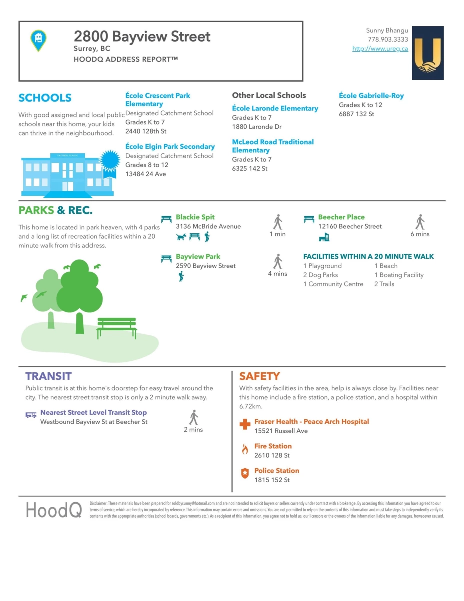 Overall, this neighborhood offers an ideal blend of safety, security, and community spirit. With its excellent schools, stunning ocean views, and vibrant cultural scene, 2800 Bayview Street is the perfect place to call home.