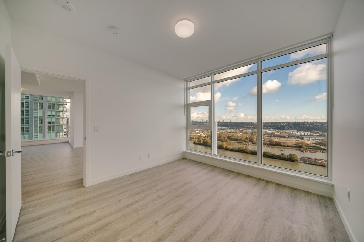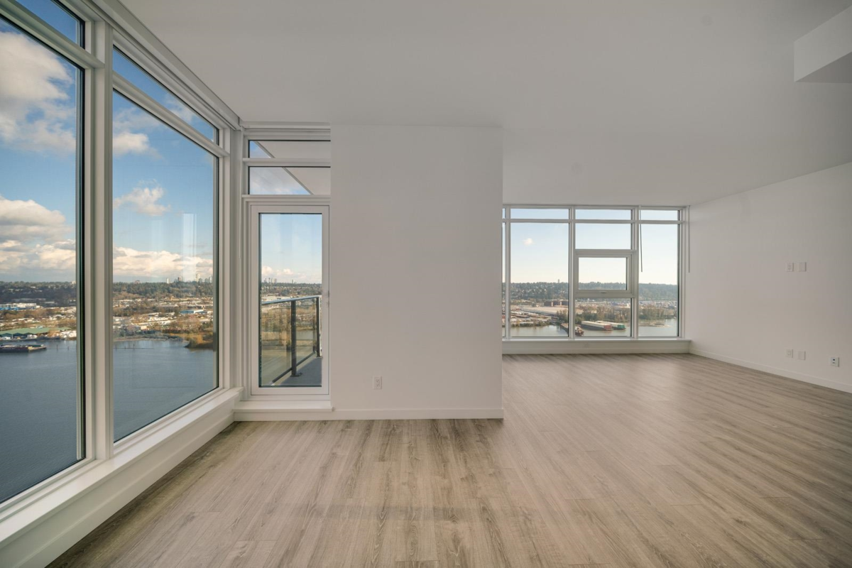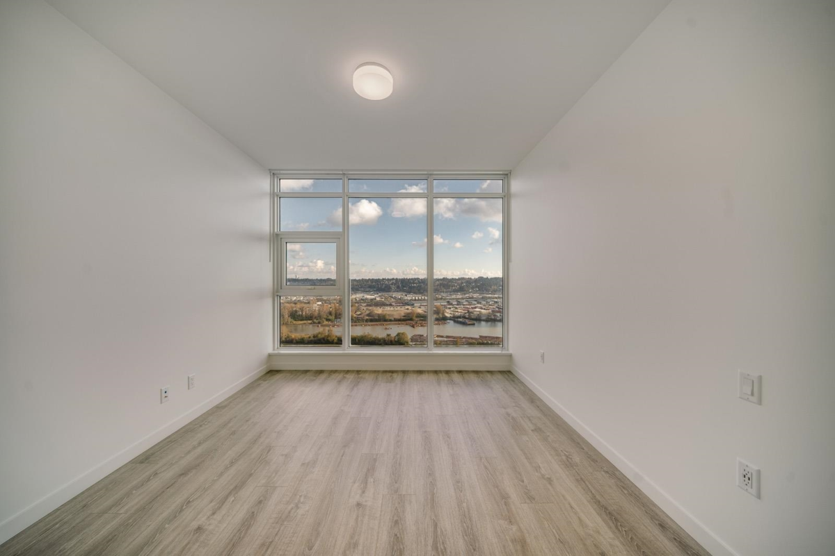 Experience premier waterfront living at PIER WEST by Bosa, in this stunning 28/f home w/panoramic views of the Fraser River. 2 Bed + Den 1237 sqft. home combines modern design w/high-end finishes w/water views from every room, featuring a chef-inspired kitchen w/BOSCH appliances, quartz waterfall countertops & ample soft-close Italian cabinetry. Efficient open-concept layout complemented by A/C & spa-inspired bathrooms, ensures year-round comfort. Residents enjoy exclusive access to the Owners' Club amenities: 24-hour concierge, gym dining room, outdoor lounges, and more, Just steps from SkyTrain, dining, shopping, and vibrant boardwalk. Includes $10K EV Charger Upgrade & Private Storage.