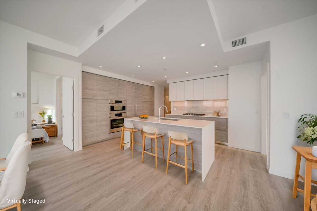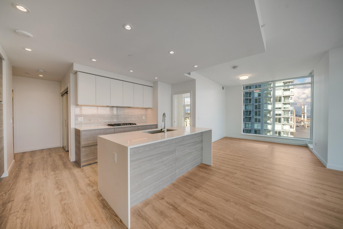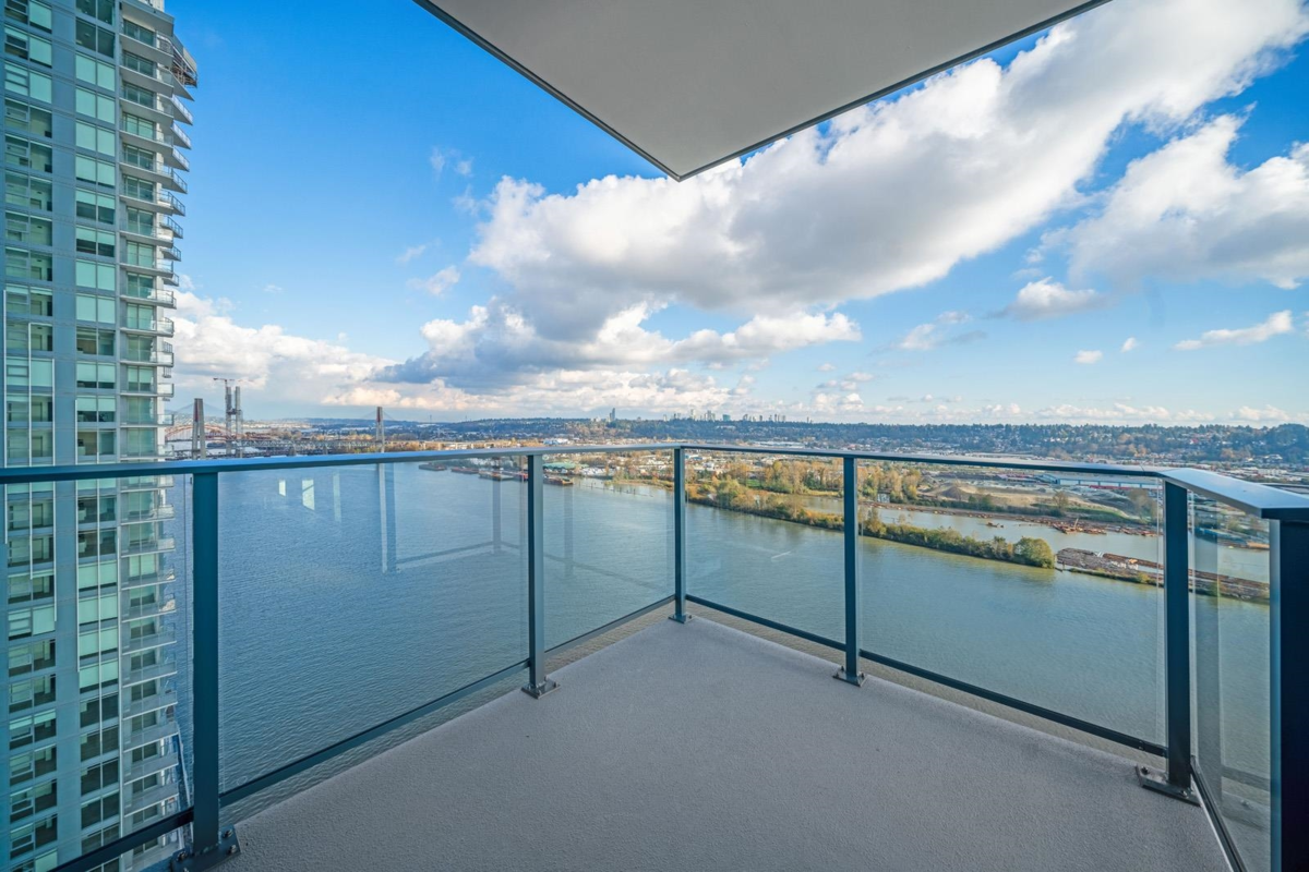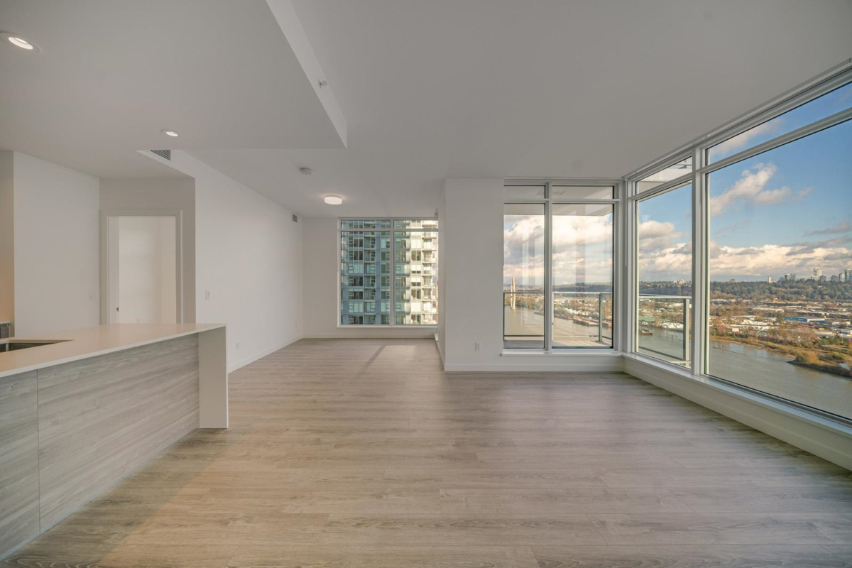 Experience premier waterfront living at PIER WEST by Bosa, in this stunning 28/f home w/panoramic views of the Fraser River. 2 Bed + Den 1237 sqft. home combines modern design w/high-end finishes w/water views from every room, featuring a chef-inspired kitchen w/BOSCH appliances, quartz waterfall countertops & ample soft-close Italian cabinetry. Efficient open-concept layout complemented by A/C & spa-inspired bathrooms, ensures year-round comfort. Residents enjoy exclusive access to the Owners' Club amenities: 24-hour concierge, gym dining room, outdoor lounges, and more, Just steps from SkyTrain, dining, shopping, and vibrant boardwalk. Includes $10K EV Charger Upgrade & Private Storage.
