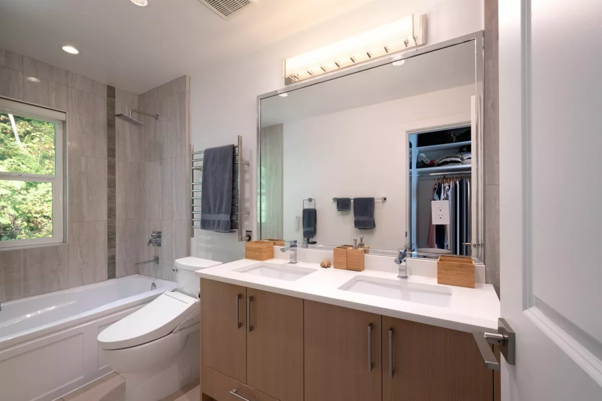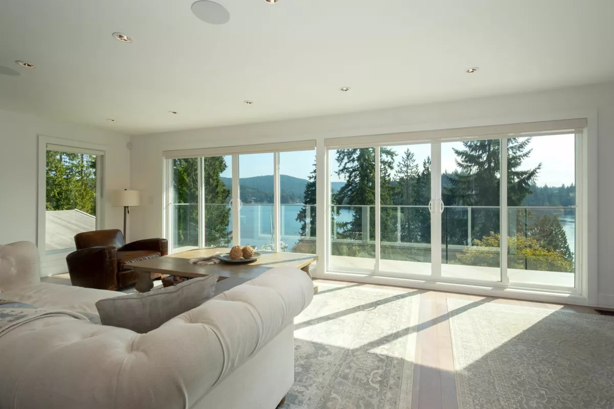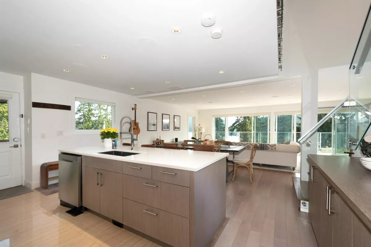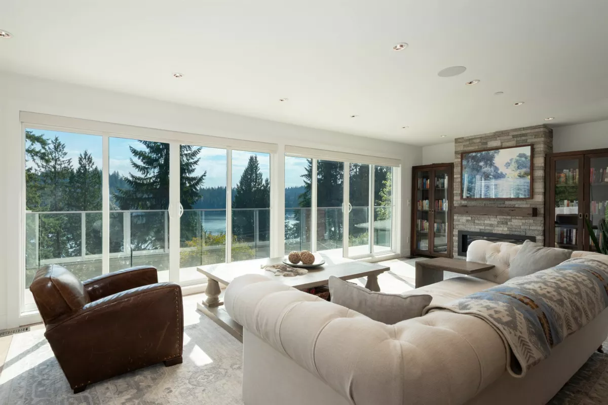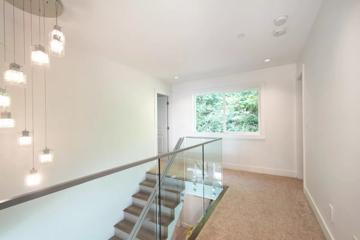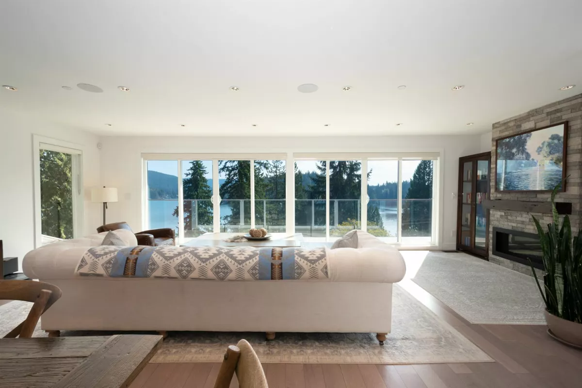 Amazing views; better than new house! Welcome to this spectacular top quality rebuilt home. Hidden up off the road, this home has ALL the extras. Drive up to your gated property and enjoy ocean/mountain views to the front; exclusive Quarry Rock trail access in back. Multi-level home w/ luxurious finishes and windows everywhere. High and bright open plan, w/ 3 bedrooms + den (4th bedroom?) up; suite and beautiful rec room down. Rare extras include A/C, auto blinds, smart lights/sound. Decks everywhere to enjoy the amazing sunny south facing outlook. Tons of parking; EV charger; workshop; lots of storage. Don't like stairs? Get out of your car and hop into the elevator. So many extras; too many to list. Walk to shops, restaurants, schools.