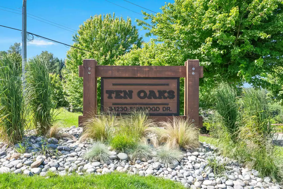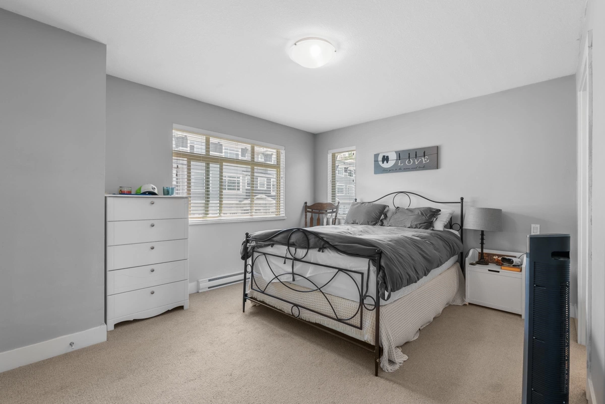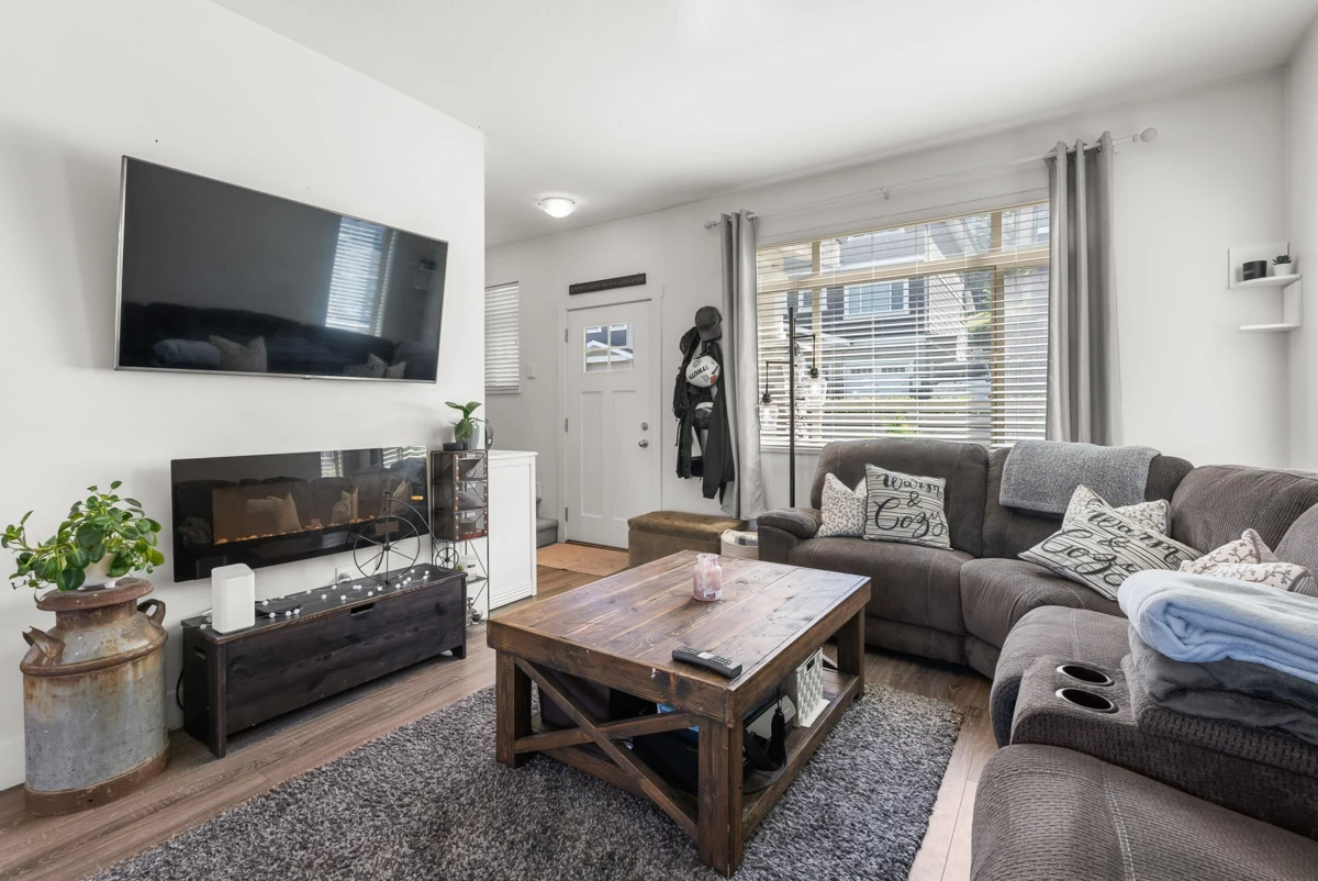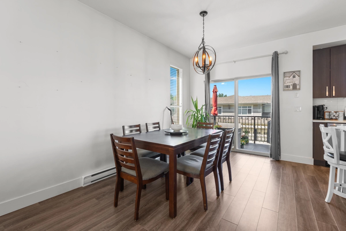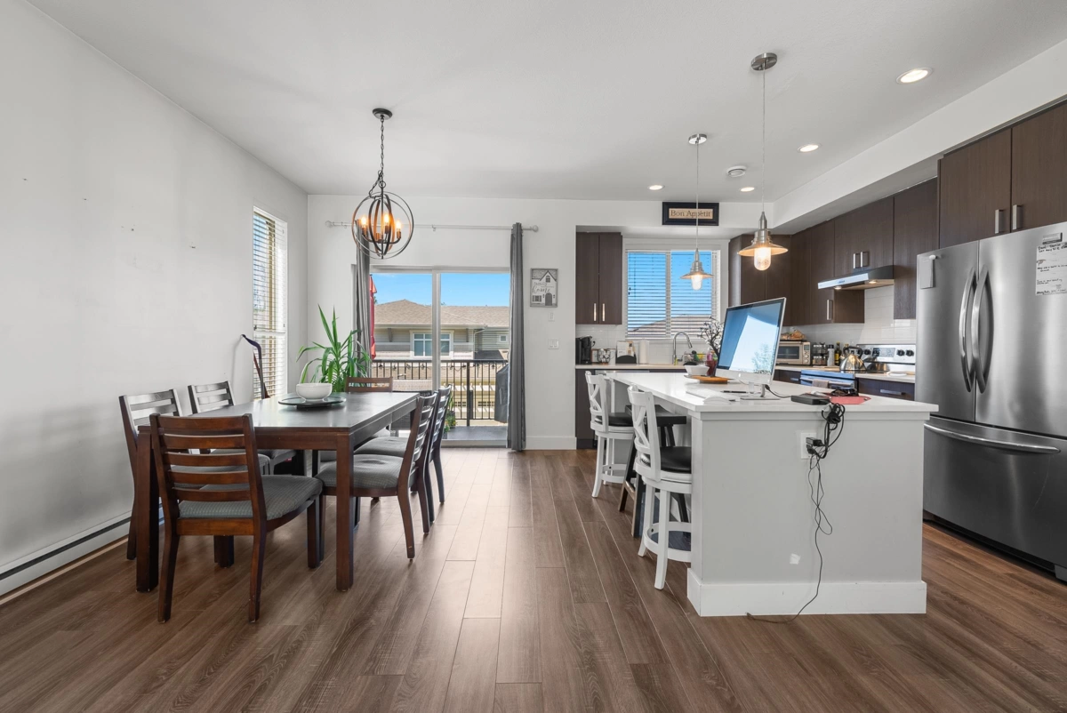 This is Ten Oaks! Welcome to this desirable townhome community in an ideal location within great school catchment and short walk to Clayburn Shopping Center. You will appreciate this nearly 1400 square foot home hosting 3 (easily 4) bedrooms and three bathrooms. Find an open and bright main floor with plenty of kitchen, dining and living room space. Above features three bedrooms including nice ensuite and full family bath. Basement has added office/bedroom and access to your double garage. Enjoy the hard-to-find double driveway with room to park two more full sized vehicles. Ten Oaks is a pet friendly strata welcoming two dogs (any size), or two cats or one of each. Reasonable fee of 290/month. Front fenced grass area plus community playground. Make Ten Oaks your home!