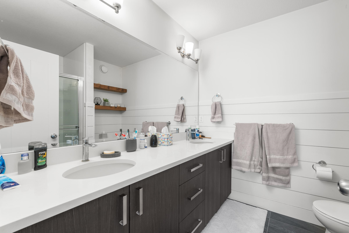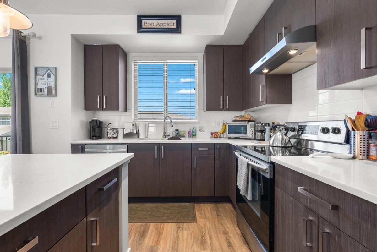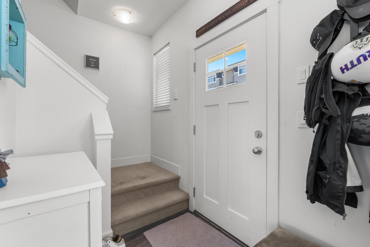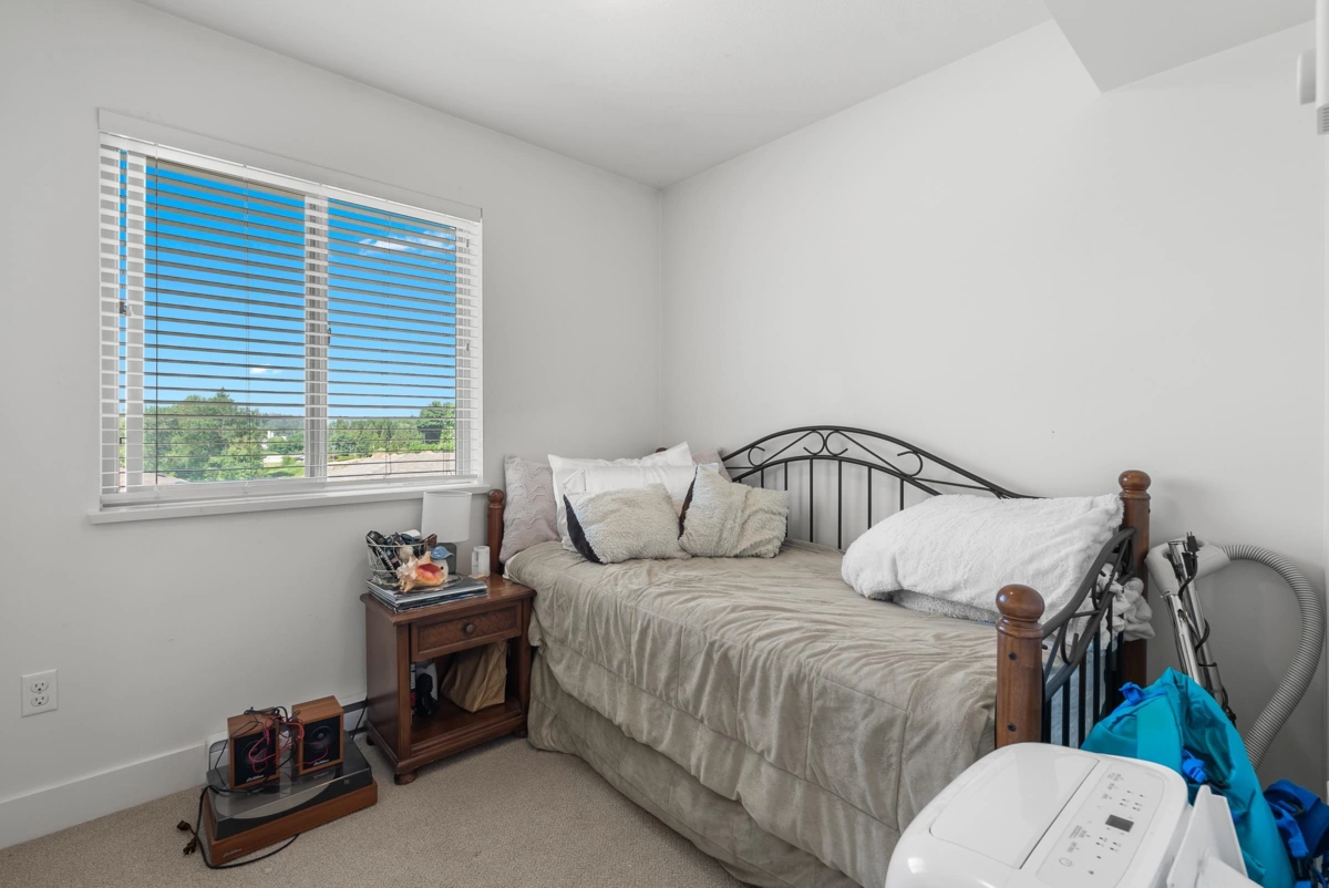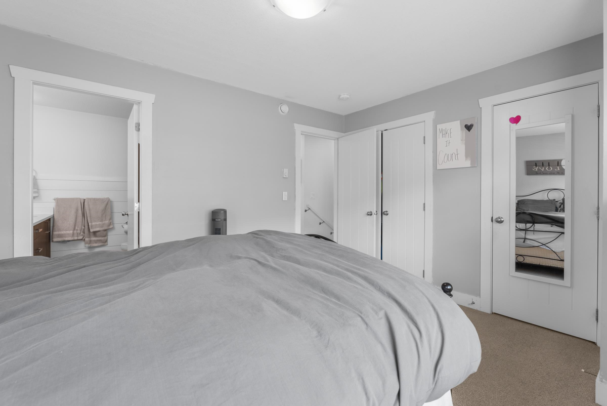 This is Ten Oaks! Welcome to this desirable townhome community in an ideal location within great school catchment and short walk to Clayburn Shopping Center. You will appreciate this nearly 1400 square foot home hosting 3 (easily 4) bedrooms and three bathrooms. Find an open and bright main floor with plenty of kitchen, dining and living room space. Above features three bedrooms including nice ensuite and full family bath. Basement has added office/bedroom and access to your double garage. Enjoy the hard-to-find double driveway with room to park two more full sized vehicles. Ten Oaks is a pet friendly strata welcoming two dogs (any size), or two cats or one of each. Reasonable fee of 290/month. Front fenced grass area plus community playground. Make Ten Oaks your home!