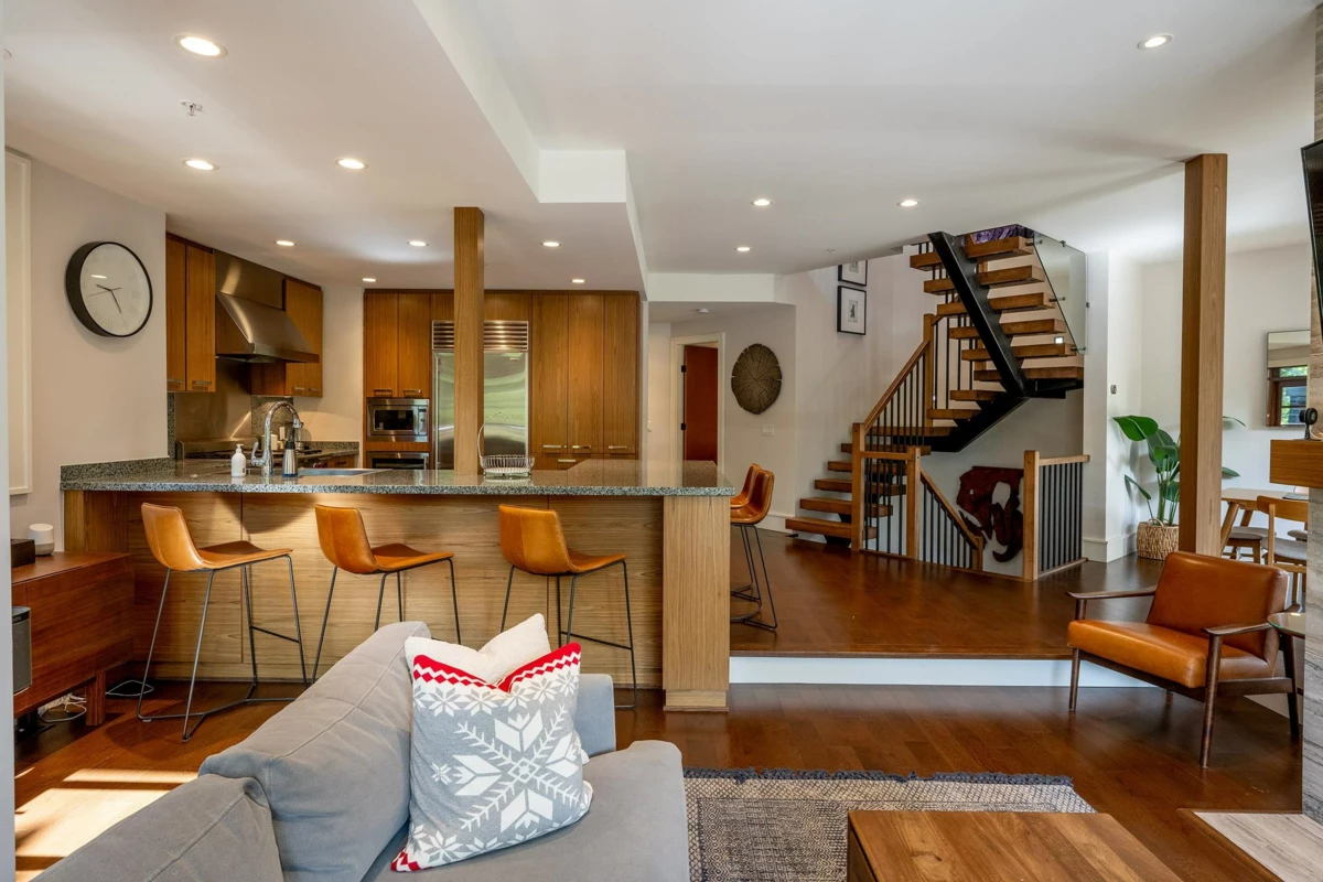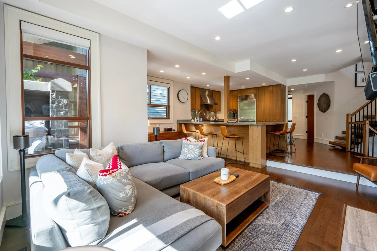 Fitzsimmons Walk is a coveted enclave just steps from Whistler Village, nestled right along the Valley Trail and Fitzsimmons Creek – offering a rare blend of serenity, views, and proximity. This unique end-unit townhome stands out with one of the largest floor plans in the complex and exceptional creekside positioning that captures winter views of Blackcomb. The main living area is made for gathering: vaulted ceilings, warming gas burning fireplace, a gourmet kitchen with premium Wolf & Sub-Zero appliances, and an oversized island perfect for après-style entertaining. Step outside to a private terrace complete with a built-in BBQ. Whether you’re seeking a full-time residence or a luxury vacation rental, Phase 1 zoning gives you the flexibility to choose.