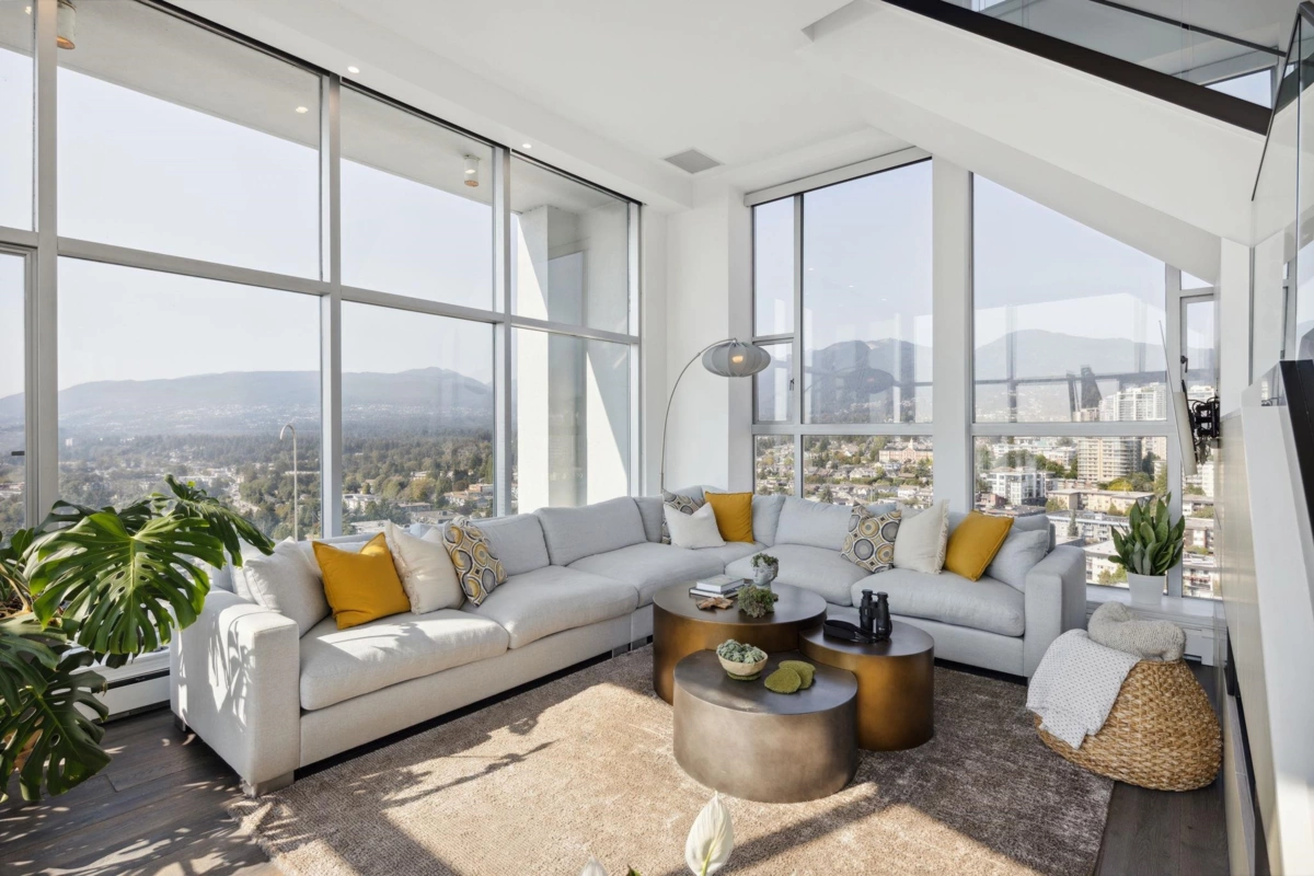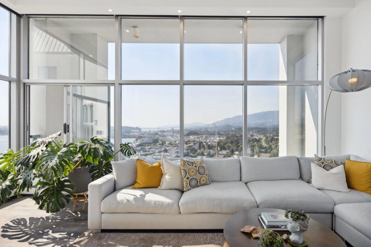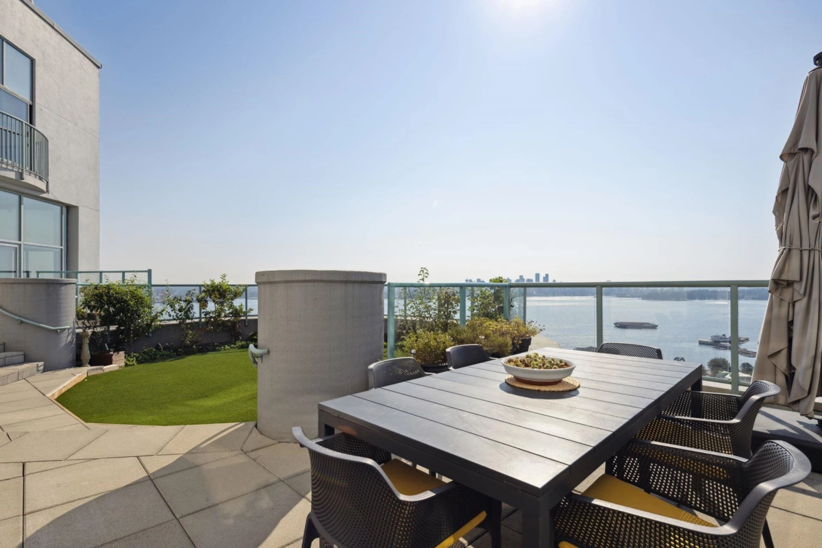 Indulge in unparalleled luxury with this penthouse at the Observatory. Floor-to-ceiling windows offer sweeping city and harbour views. This extensively renovated 2328 SF home spans four levels and features over 1500 SF of outdoor terraces. Highlights include a gourmet kitchen with a butler’s pantry, 12-foot ceilings, custom built-ins throughout, and four private outdoor spaces. The layout has two bedrooms on lower level and a top-floor master suite with a walk-in closet and spa-like en-suite. Enjoy vibrant Lower Lonsdale living with shops, restaurants, and entertainment at your doorstep. Includes 3 parking spots, ample storage, plus stunning gardens, a fitness centre, and a pool—it’s like living in a resort!