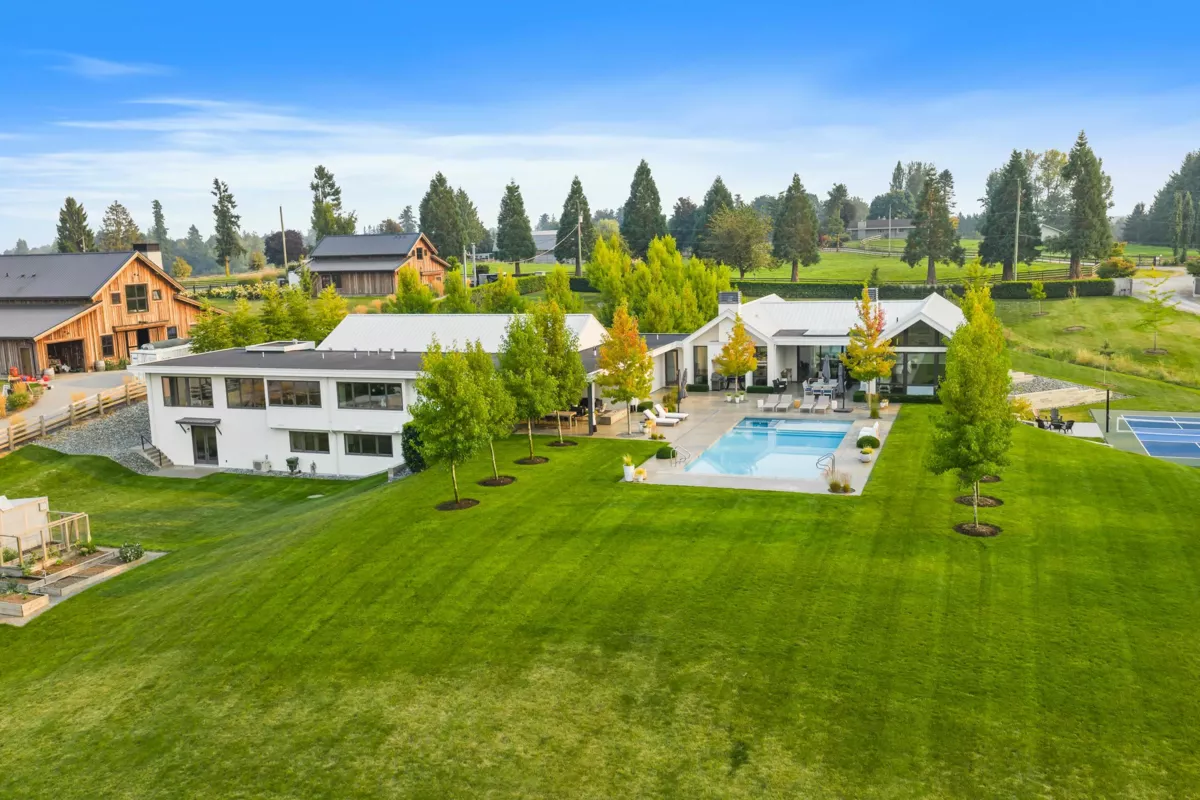 Luxury Estate Acreage! 10 private acres at the end of a quiet no-through street, this stunning 8 bed, 9 bath, 10,000+ sq. ft. custom 2018 home (Built by MEC) is perfect for multi-generational living, feeling like two separate, full-size residences. Thoughtfully designed with exquisite details throughout (Interior by Done to the Nines), the high efficiency home features oversized windows, two gourmet kitchens (3 total), in floor heating, home theater, gym, abundant storage, & 4-bay garage. Outside, enjoy the pool, pickleball court, & expansive patios, all perfect for entertaining. The gated, fully fenced acreage also features city water, outbuildings, garden & small greenhouse & apple trees. This is more than a home, it’s a lifestyle, a retreat, a once-in-a-lifetime opportunity!