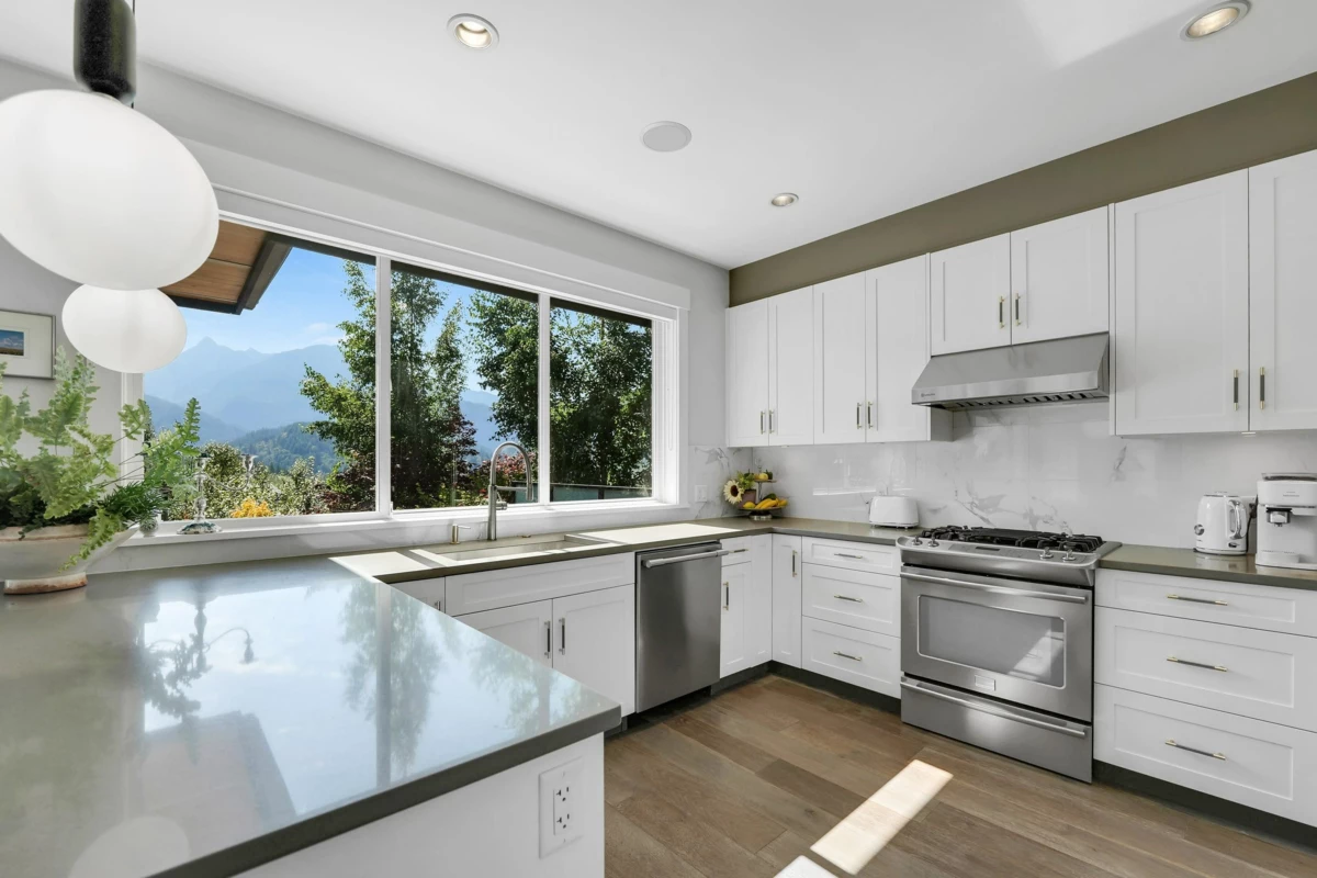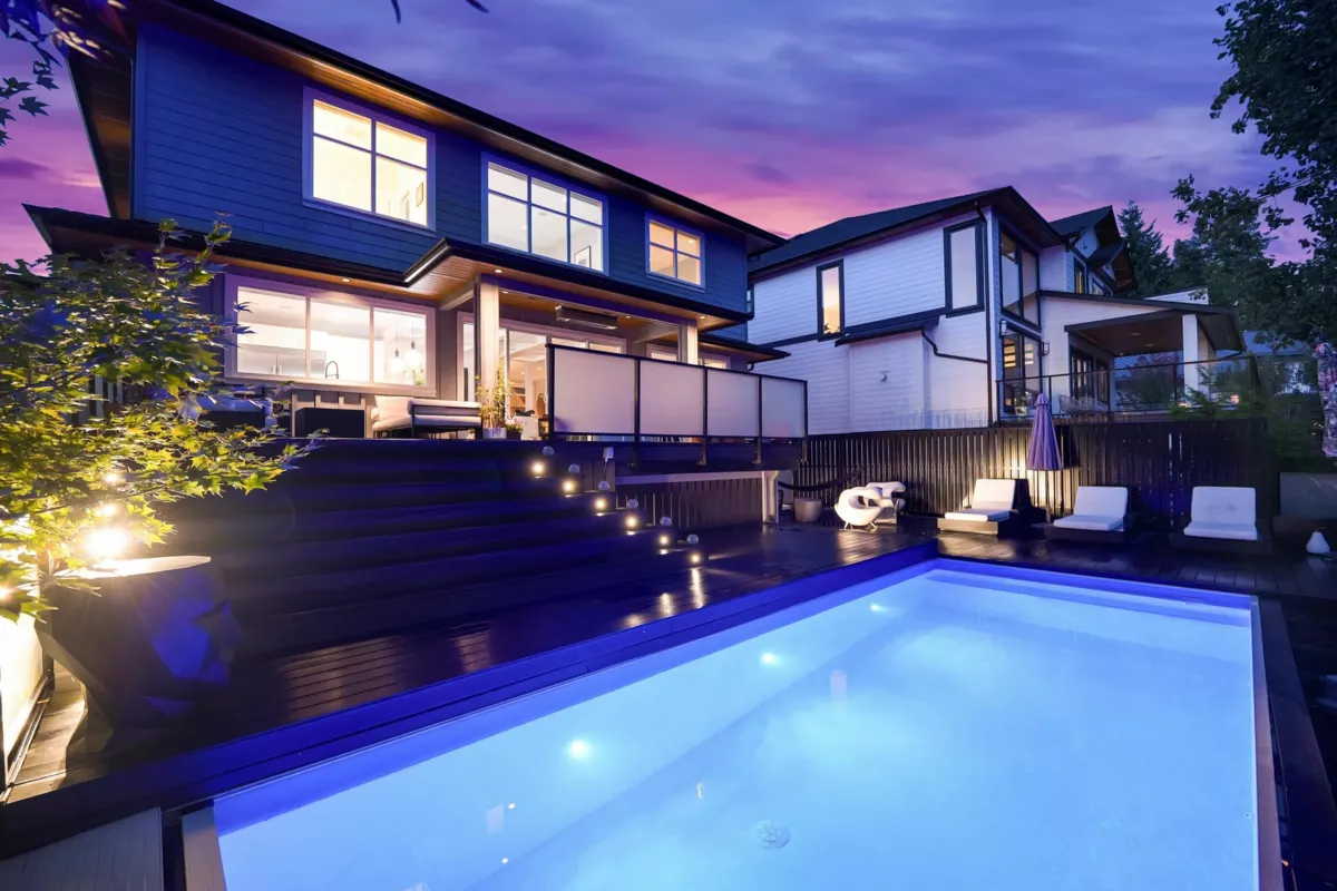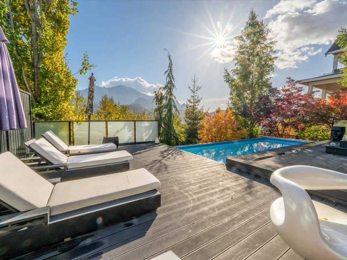 Located at Prestigious University Heights Cul de Sac. This custom-built house blends modern elegance with exceptional craftsmanship, featuring soaring 9-ft ceilings, an integrated sound system & a chef’s kitchen perfect for entertaining plus Geothermal heating and cooling. Rich hardwood floors & coffered ceilings flow seamlessly to a south-facing sundeck with breathtaking mountain vistas. Beautifully landscaped grounds showcase a private pool & resort-like setting. Upstairs, 4 spacious bedrooms include a luxurious primary retreat with spa-inspired ensuite, plus a bright, self-contained one-bedroom legal suite. Ideally located steps to Capilano University, CMA private school, Garibaldi Elementary & surrounded by endless biking & hiking trails, this home offers comfort, elegance & prestige.