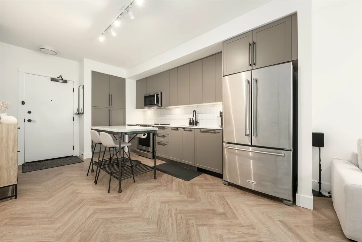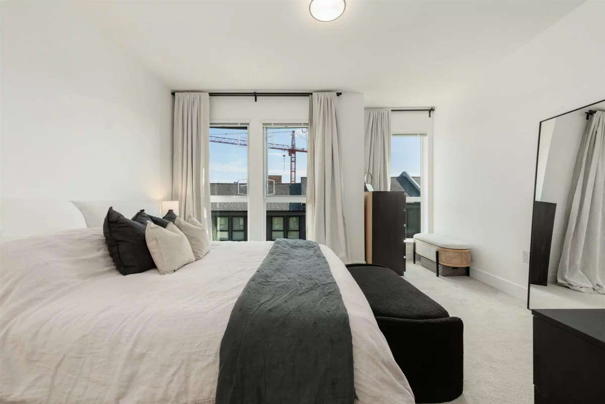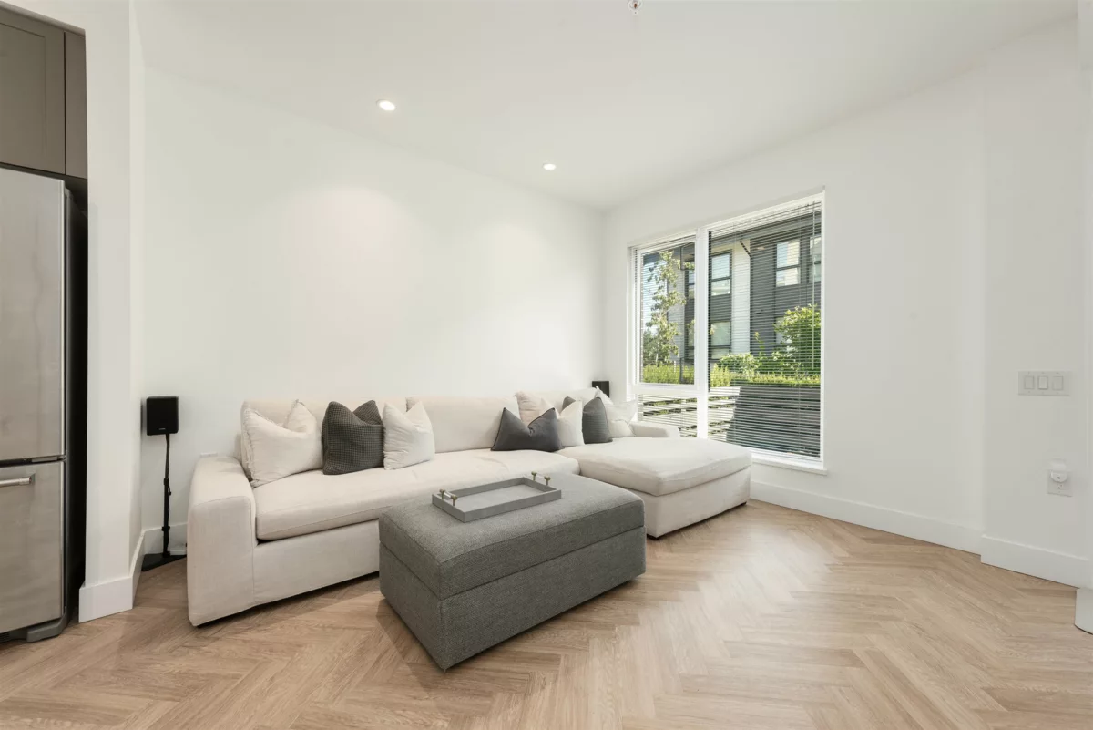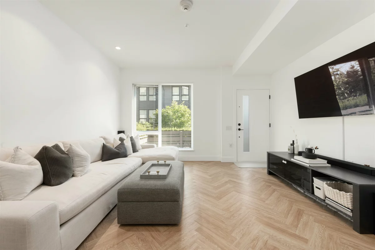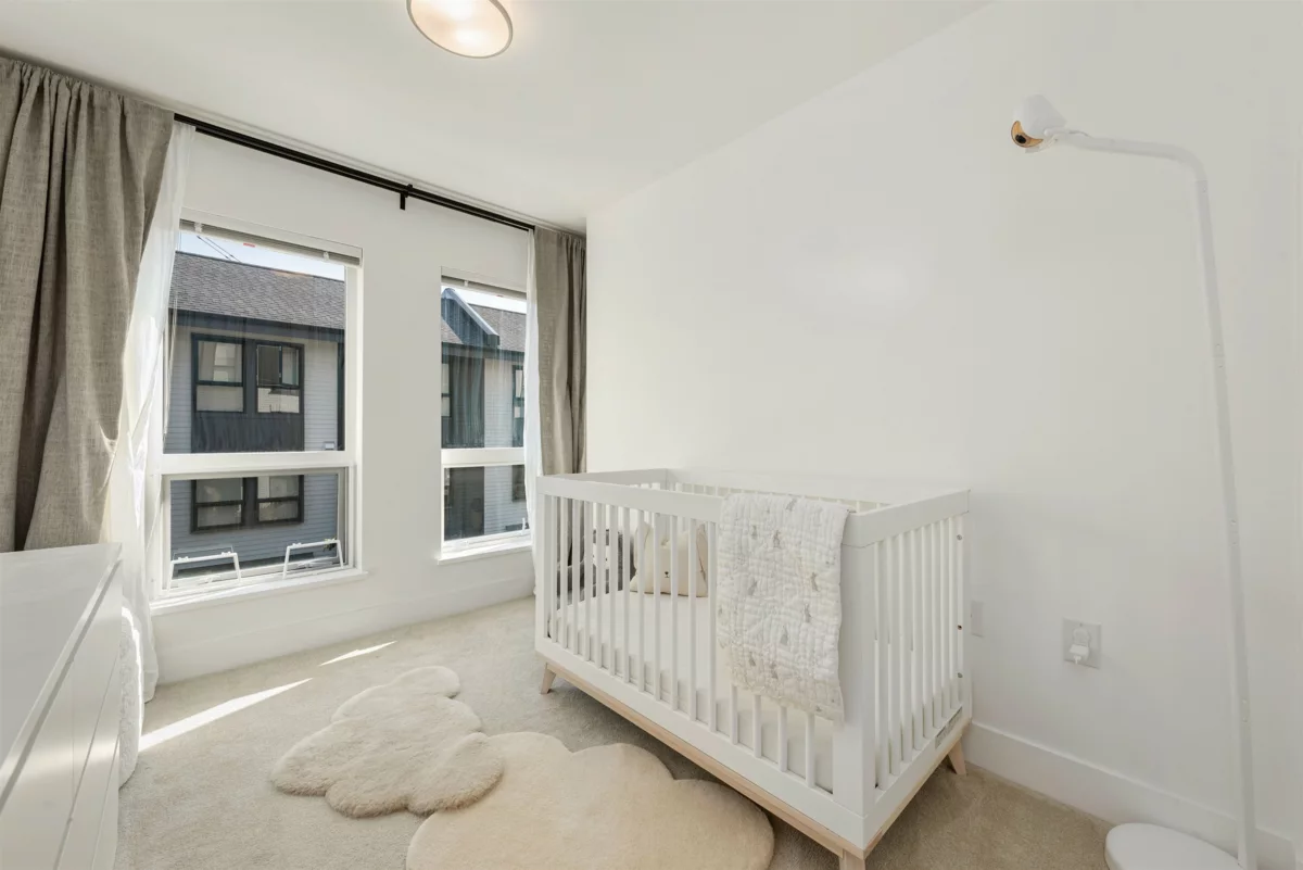 Fraser by Mosaic – Modern 3 Bed + Den Townhome in the Heart of SFU! This contemporary home features 10’ ceilings on the main and 9’ on the top floor, elegant herringbone flooring, and radiant in-floor heating with on-demand hot water (tankless system). The stylish kitchen includes KitchenAid appliances, quartz countertops, and oversized windows for natural light. Upgrades include custom closets and window screens throughout. The large den offers flexibility as a 4th bedroom or office. Spacious primary bedroom with walk-in his & hers closets and full ensuite. Strata fee includes thermal heating. Steps to SFU, SFU Childcare, University Highlands Elementary, Nesters Market, parks, trails, and more. Secure underground parking included.