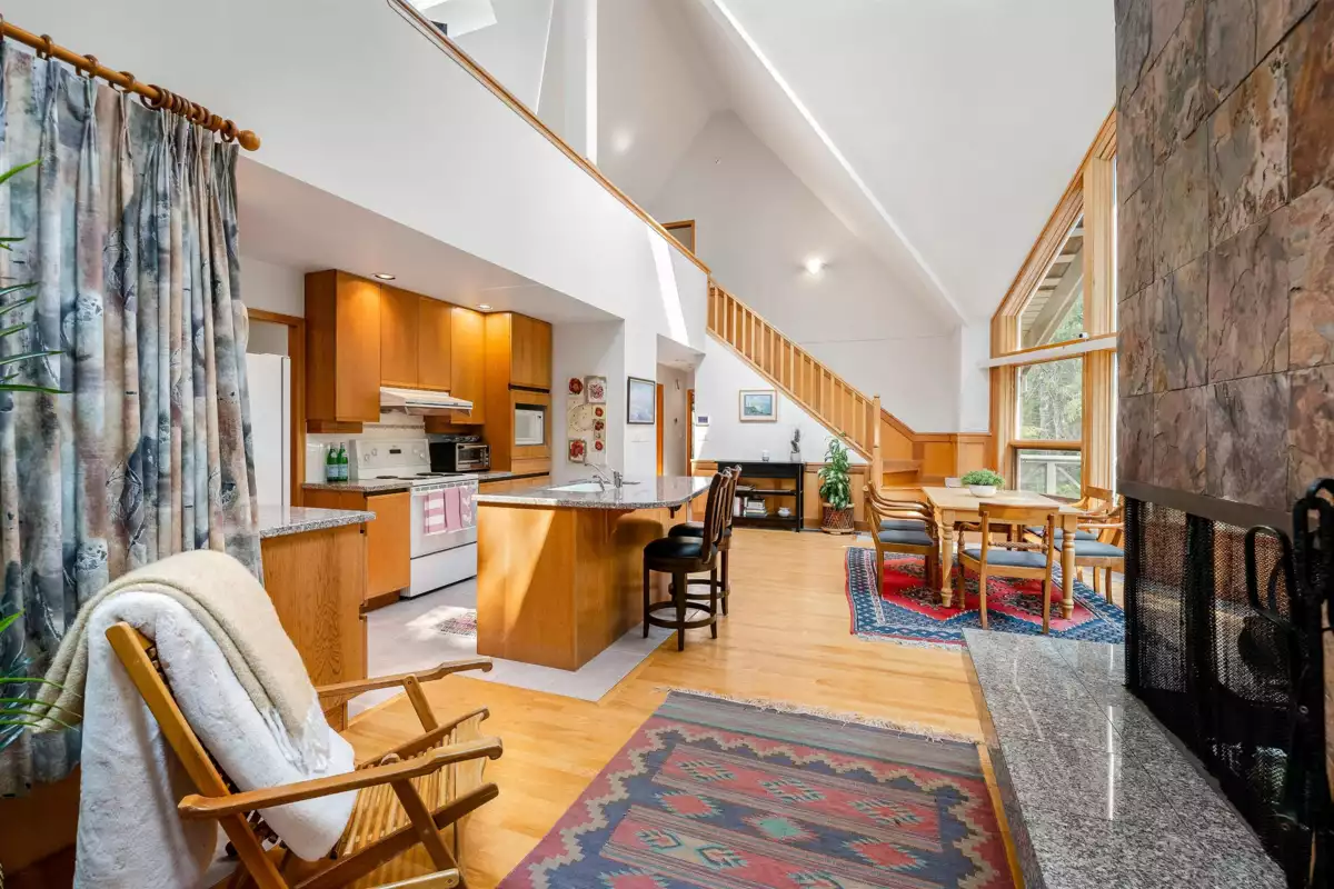 Welcome to 3 Garibaldi Drive, a custom ~2,000 sq ft home with interior design by Patti Fasan featuring soaring windows, natural light and a family-friendly design. The great room impresses with 24 ft vaulted ceilings, solid hardwood oak floors, wood-burning fireplace and open concept living. On the main, you'll also find two generously sized bedrooms, full bath and laundry room. Upstairs, the 500 sq ft primary suite boasts an oversized walk-in closet and spacious 5-piece ensuite bathroom. Also upstairs, a loft perfect for a home office, kids' or TV room. Ski storage room, two-car garage and an expansive deck offer ultimate conveniences. Black Tusk is a gated community with swim lakes, beach, tennis/pickle ball court, playground and a modem lakefront community hall!
