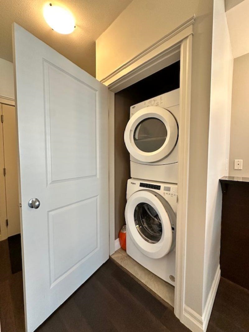 This well-maintained 2 bed 2 bath condo in the Heart of Port Coquitlam. Offering the perfect blend of comfort & convenience. Ideally located just steps from parks, shopping, dining & the West Coast Express. You'll love being close to everything Paco has to offer. Nice open floor plan. Kitchen features s/s appliances, granite counters & breakfast bar. Electric f /p. Engineered h/w flooring in the main living area. Enjoy the privacy of bdrms on opposite side of the condo. The primary bdrm. has double walk- through closets & a 3 pc ensuite with a w.i. shower . 4 pc main bath. Carpeting in the bdrms . In- suite laundry, 1 parking & storage locker . Whether you are a first-time buyer, downsizer or investor, this is a fantast i c opportunity in a vibrant community.