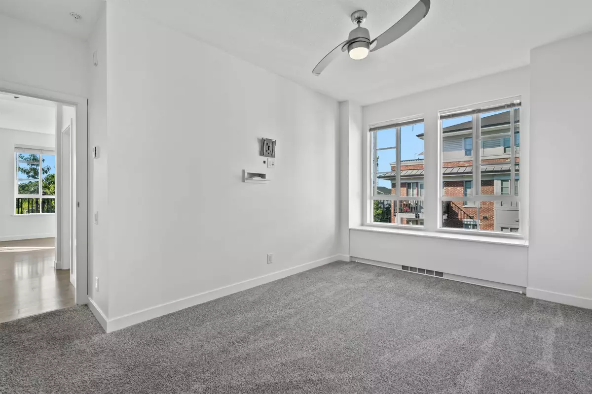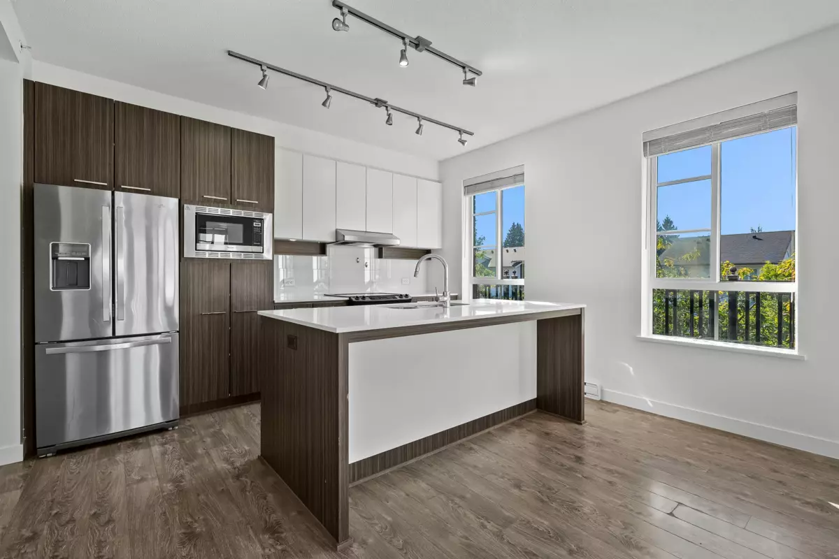 Welcome to FOSTER EAST by Mosaic Homes. This bright southwest corner 2-bedroom, 2-bath residence offers approximately 1,037 sq. ft. of modern living with 9’ ceilings and a spacious open layout. The gourmet kitchen features stone countertops, a large island, stainless steel appliances, and ample storage, complete with a convenient workstation nook. Enjoy over $30,000 in custom upgrades, including remote-controlled ceiling fans, custom wood blinds, built-in living room millwork, window seating with storage, and a stylish barn door. Comes with 1 parking stall. Ideally located next to Cottonwood Park and just steps from Burquitlam SkyTrain Station, Lougheed Town Centre, the Vancouver Golf Club, and nearby shops, cafes, and parks.