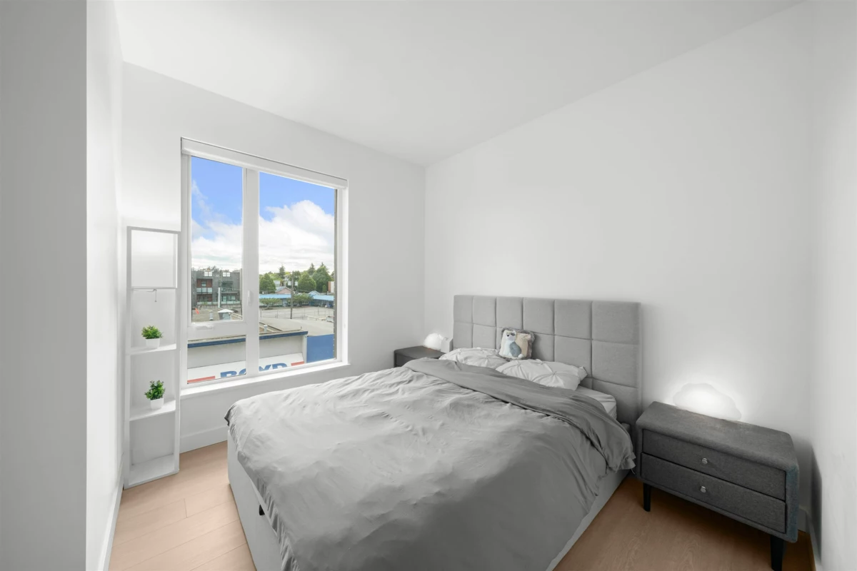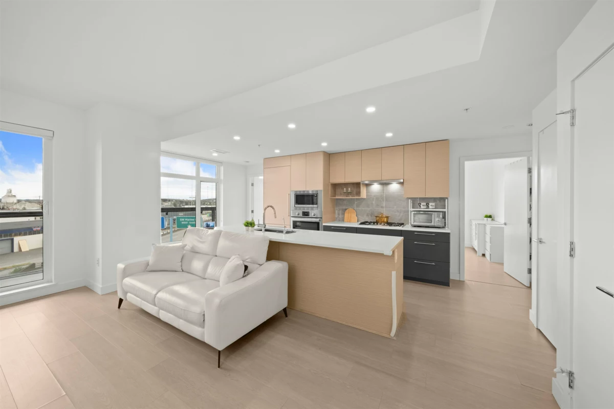 MOTIVATED SELLER! Welcome to 8888 Osler, a stunning&quite unit w/ 1,111 sqft 3-bed comer unit in Marpole neighbourhood. This home features an open-concept layout with 9-foot ceilings and an abundance of natural light, complemented by a gourmet kitchen equipped with Bosch appliances. Enjoy breathtaking city and river views from your private enclosed balcony. The building offers fantastic amenities, including community gardens, a lounge, BBQ/dining area, and a kids’ play zone. Ideally located near Safeway, Marine Gateway, Ebisu Park, and with easy access to transit to DT and Richmond, plus top-rated schools like David Loyd George Elementary and Churchill Secondary. Additional, this unit include an EV parking and an XL locker right outside your unit.