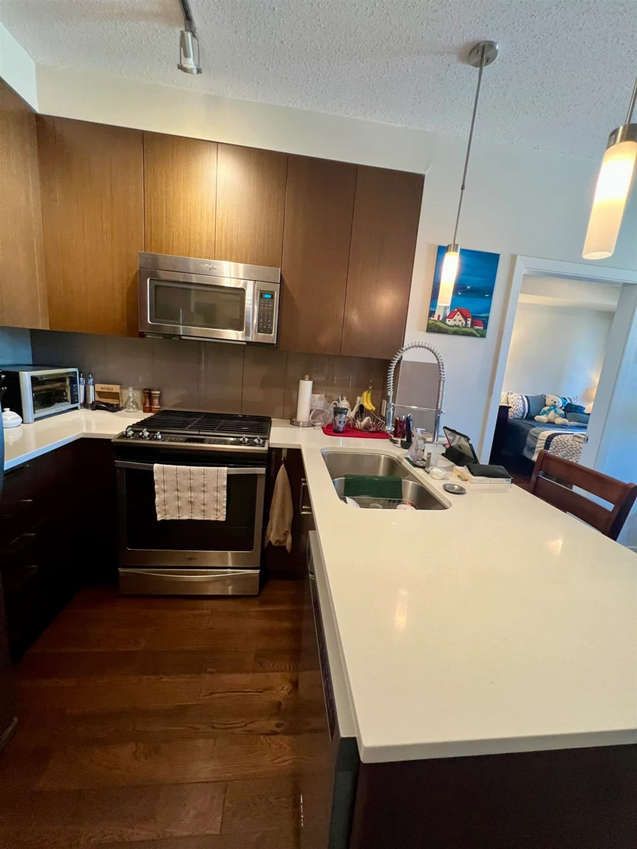 This beautifully maintained 2-bedroom, 2-bathroom condo offers a perfect blend of comfort and convenience. Boasting 770 sf of open living space, this unit features a modern kitchen with stainless steel appliances, granite countertops, and a spacious breakfast bar. The bright and airy living room leads to a private balcony, perfect for enjoying your morning coffee. The master bedroom includes a walk-in closet and a luxurious ensuite bathroom. With in-suite laundry, secure underground parking, and a prime location near shopping, parks, and transit, this home is perfect for first-time buyers, downsizers, or investors. Don’t miss out on this fantastic opportunity.