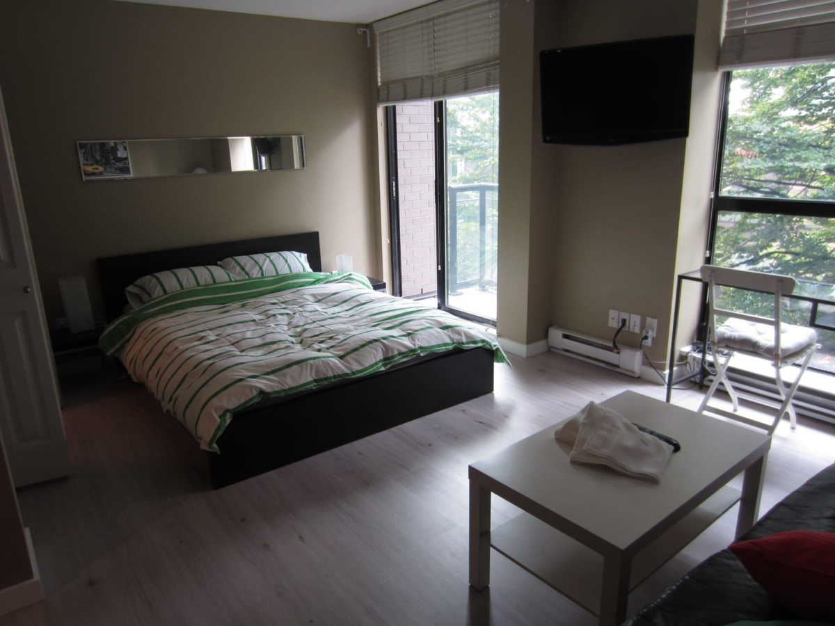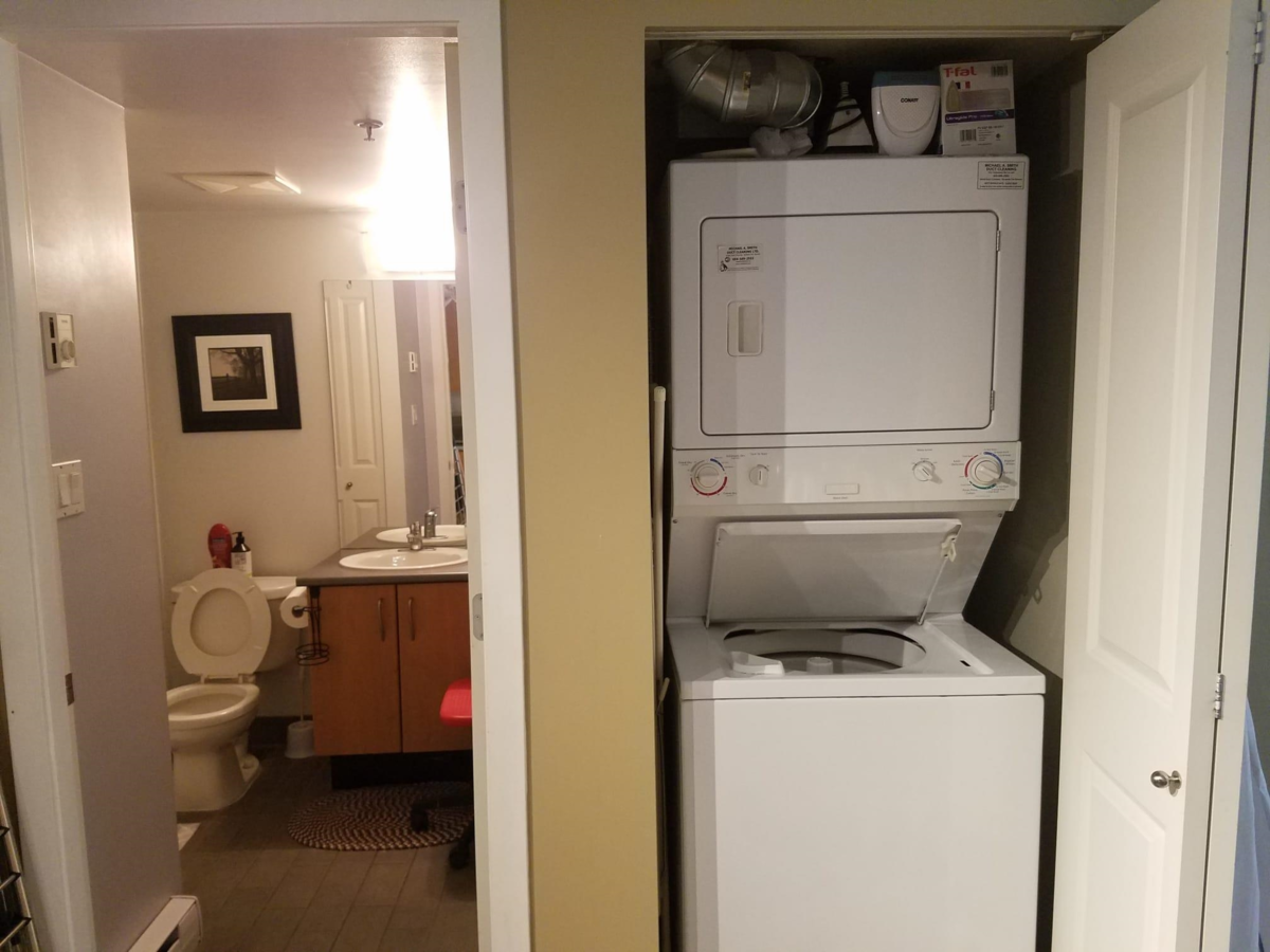 Excellence building, great starter home and convenience for working in downtown. Smart layout with no wasted space. Open floor plan and floor to ceiling windows, lots of natural light. Hardwood floors, stainless steel appliance. City living, courtyard garden on the 2nd floor of building. Include a fitness Centre, party room, bike storage, on-site caretaker. Pets & Rentals allow with restriction. Tenant, please allow time for showing.