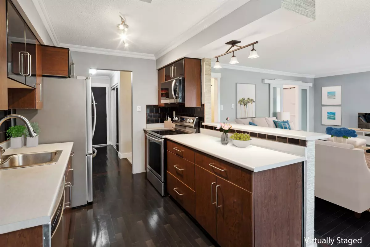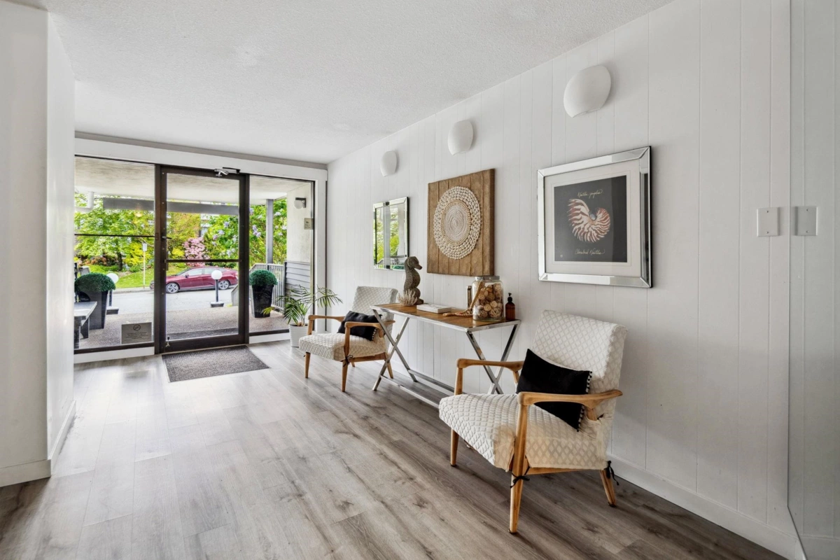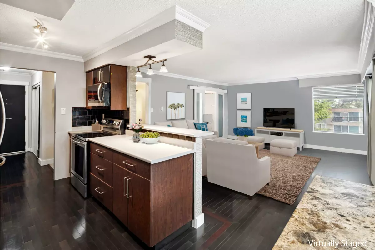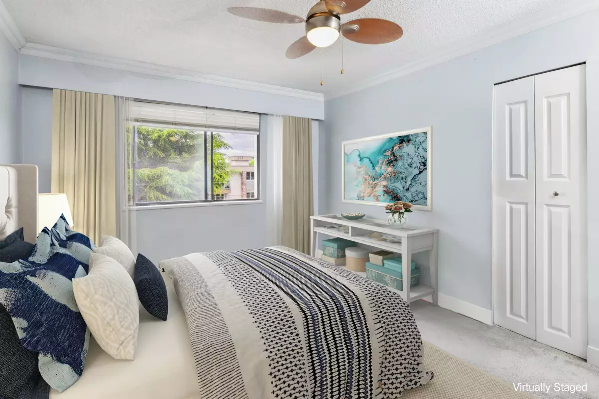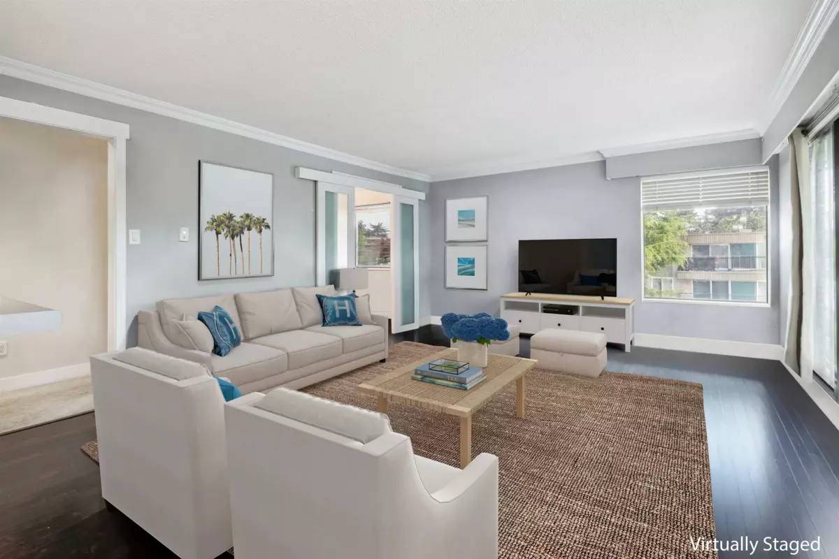 Enjoy the best of coastal living just a short walk to the beach! This bright, top-floor corner unit features a spacious open layout, abundant natural light, and private balcony. Ideally located near the iconic White Rock pier, waterfront cafés, boutique shops, restaurants, and scenic seaside trails. Renovated throughout with hardwood floors, crown mouldings, a bright kitchen with updated counters, appliances, lighting, and a fully redone bathroom. Exceptionally maintained building with recent upgrades: fresh paint, new flooring (2024), roof, electrical, and secure intercom system. Includes one parking stall, storage locker & amenities room. No Age Restrictions! Live in one of BC’s most walkable and vibrant seaside communities. School catchments: Semiahmoo Secondary & White Rock Elementary.