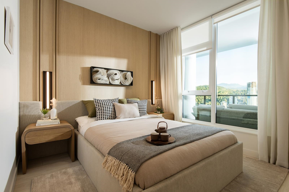 Welcome home to JINJU in West Coquitlam, built by Anthem Properties. Steps from the Burquitlam SkyTrain station, shopping amenities, restaurants, cafes, the new YMCA community centre, and Cottonwood Park. Step into your own mountain view hot tub and 28th floor spa with infrared sauna, charcoal cool room, and warm salt meditation room. This sunny South facing 2 bed home offers an expansive 281 sqft outdoor terrace to enjoy morning/night; a perfect place to grow your garden, host/entertain. Includes 9" ceilings, a heat pump for ultimate cooling/heating comfort year round. The L-shaped kitchen offers integrated full-sized Bosch appliances, ample kitchen storage with a le mans, smart corner for storge. Create your chef’s inspired meals. Move-in-Ready, open to tour on weekends by appointment.