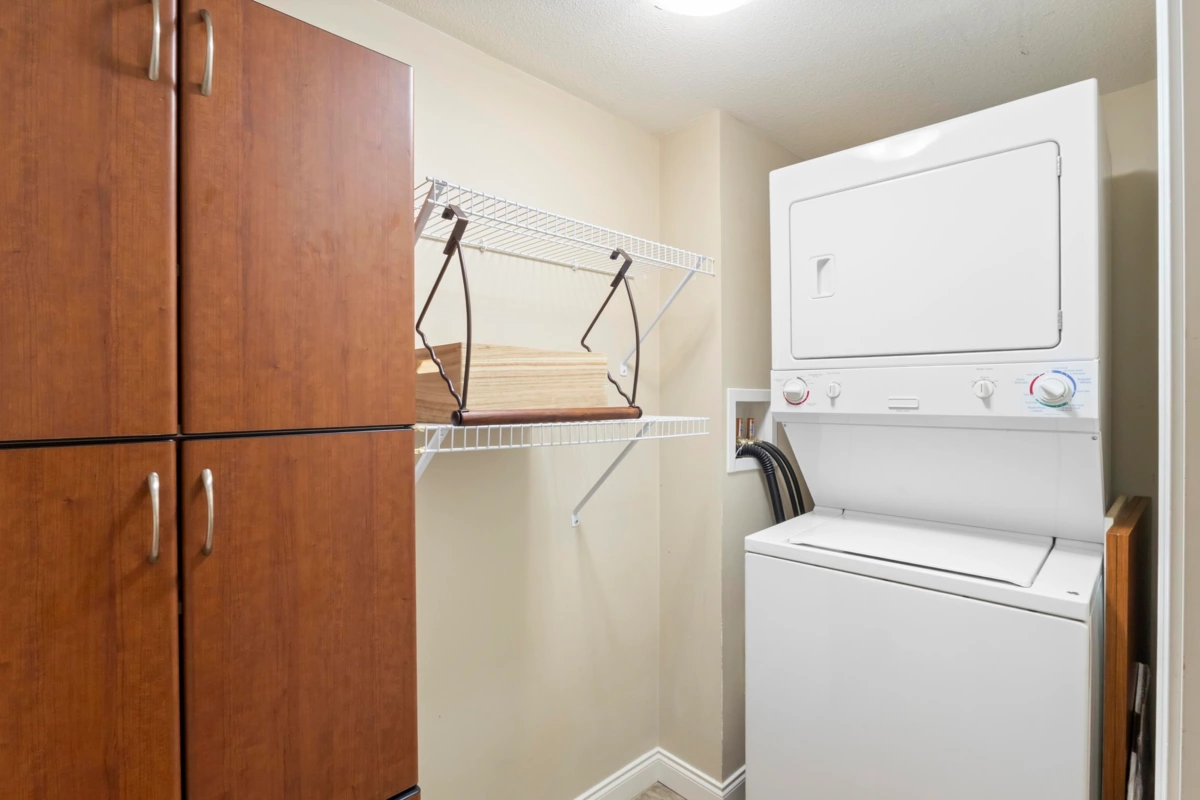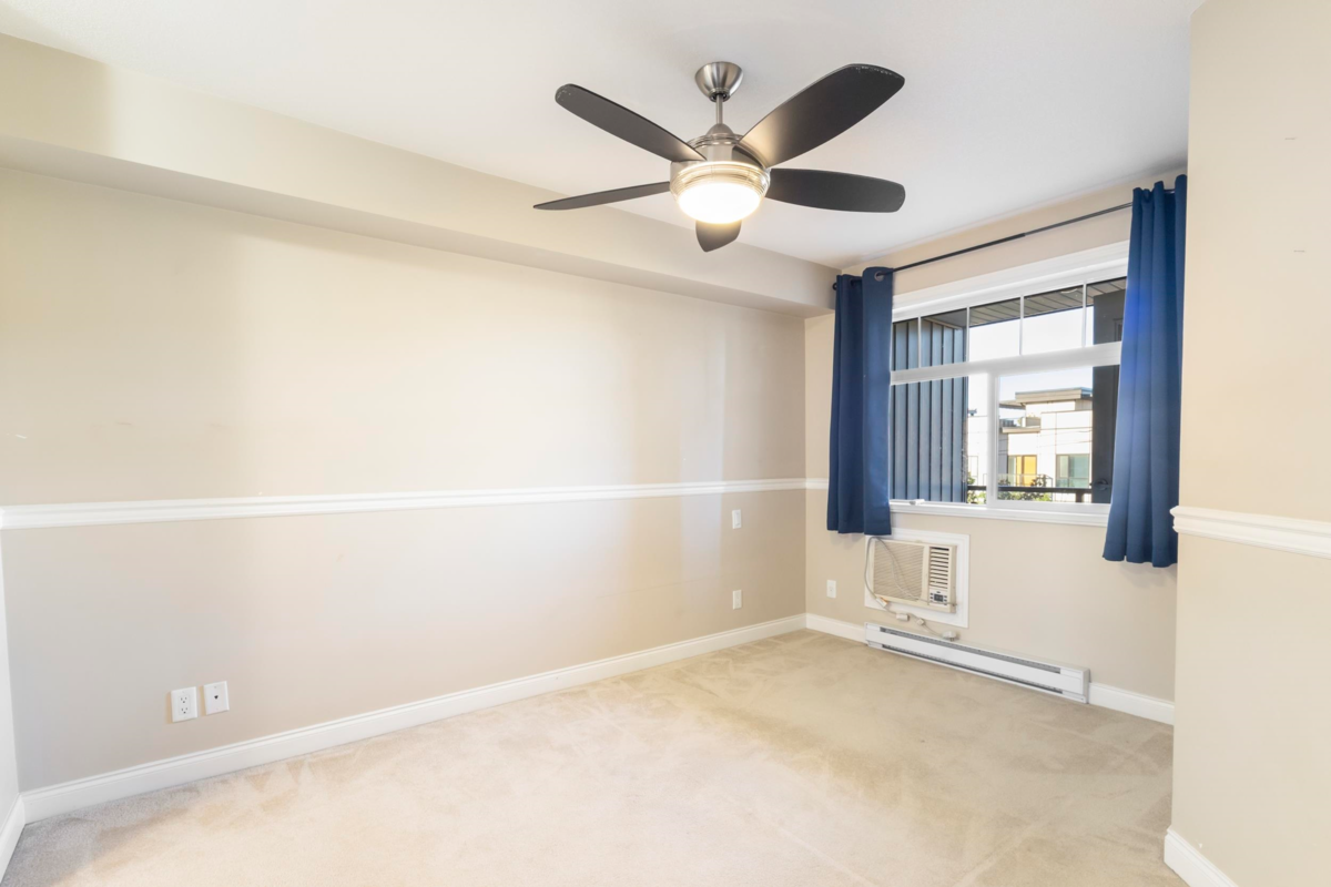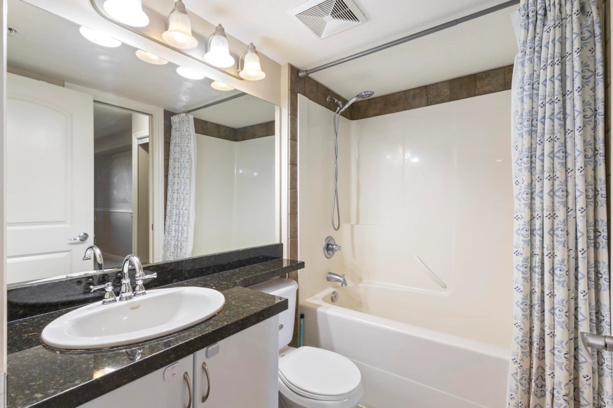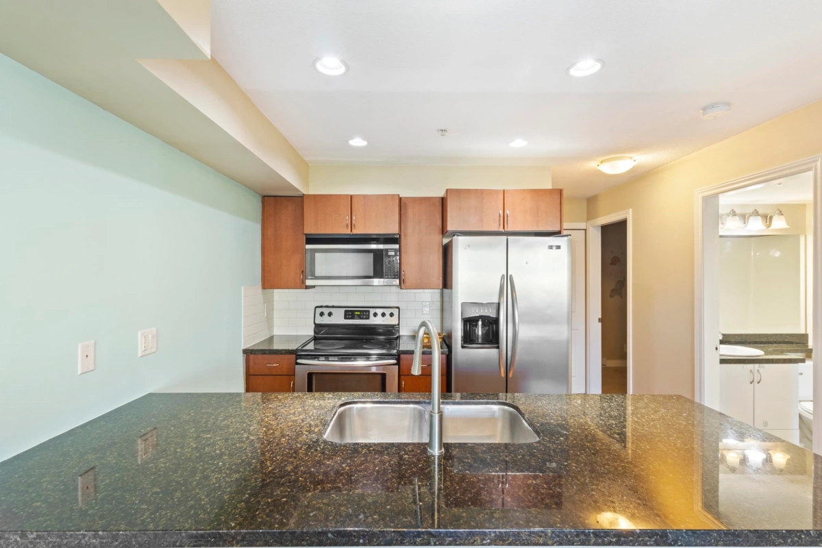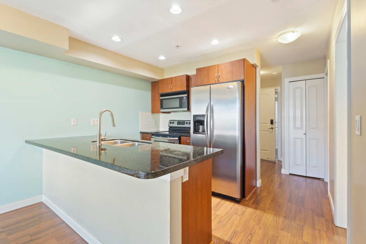 FIRST-TIME HOME BUYER ALERT! Welcome to Madison Villas — a bright and spacious junior 2-bedroom/ 1 bedroom + large den condo! The versatile den is perfect for a guest room, nursery, or home office. Featuring granite countertops, stainless steel appliances, in-suite laundry with so much extra space. Enjoy your morning coffee & evening BBQ on the private deck off the living room. The building offers a gym, bike room, and is pet friendly. fantastic location — steps to Braydon Lagoon with its pond, walking trails, and dog park, and close to shopping, restaurants, and transit. Includes one covered parking stall, storage locker, and low maintenance fees!