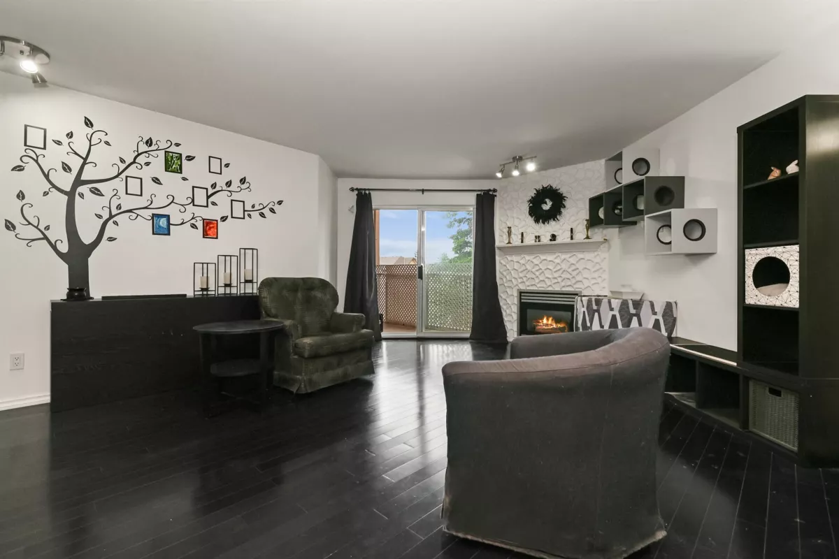 Welcome to the Cambridge on Broadway St. This charming and spacious condo with hardwood flooring throughout boasts 1257 sq' of living space and a 7x12 covered patio looking east. Large living room with a gas fireplace (gas/hot water incl in strata) and good sized dinning room. The kitchen is plenty big with lots of storage and newer s/s appliances. Huge master suite with a beautiful modern ensuite and the main bathroom redone as well. Oversized den/media room with double doors plus a laundry room with newer front load washer & dryer. The unit comes with 1 underground parking stall, storage locker and an exercise/rec area to top it off. Strata allows 1 cat or 1 small dog if you have furry friend. Close to all amenities incl bus routes and shopping making this a great location.