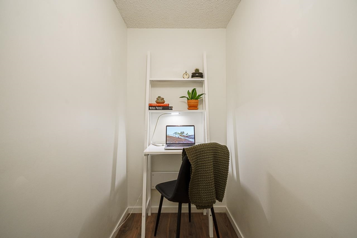 Perched beneath a swaying canopy of red and golden leaves on one of the West End’s quietest streets, this boutique, 18-unit Caroline Court gem exudes calm, elegant style. Floor-to-ceiling tinted vintage mirrors and warm earthy tones with wood accents create an inviting atmosphere. The wood-burning fireplace is perfect for cozy fall evenings watching movies or entertaining friends. Bright, updated kitchen and a bathroom with antique pieces, including a large mirror and hand-carved cabinet, add character. A den can serve as an extra office or reading nook. The oversized bedroom opens to a light-filled, covered garden room. One pet allowed, with one parking space and storage locker. OPEN HOUSE Saturday Nov 29 2-4PM