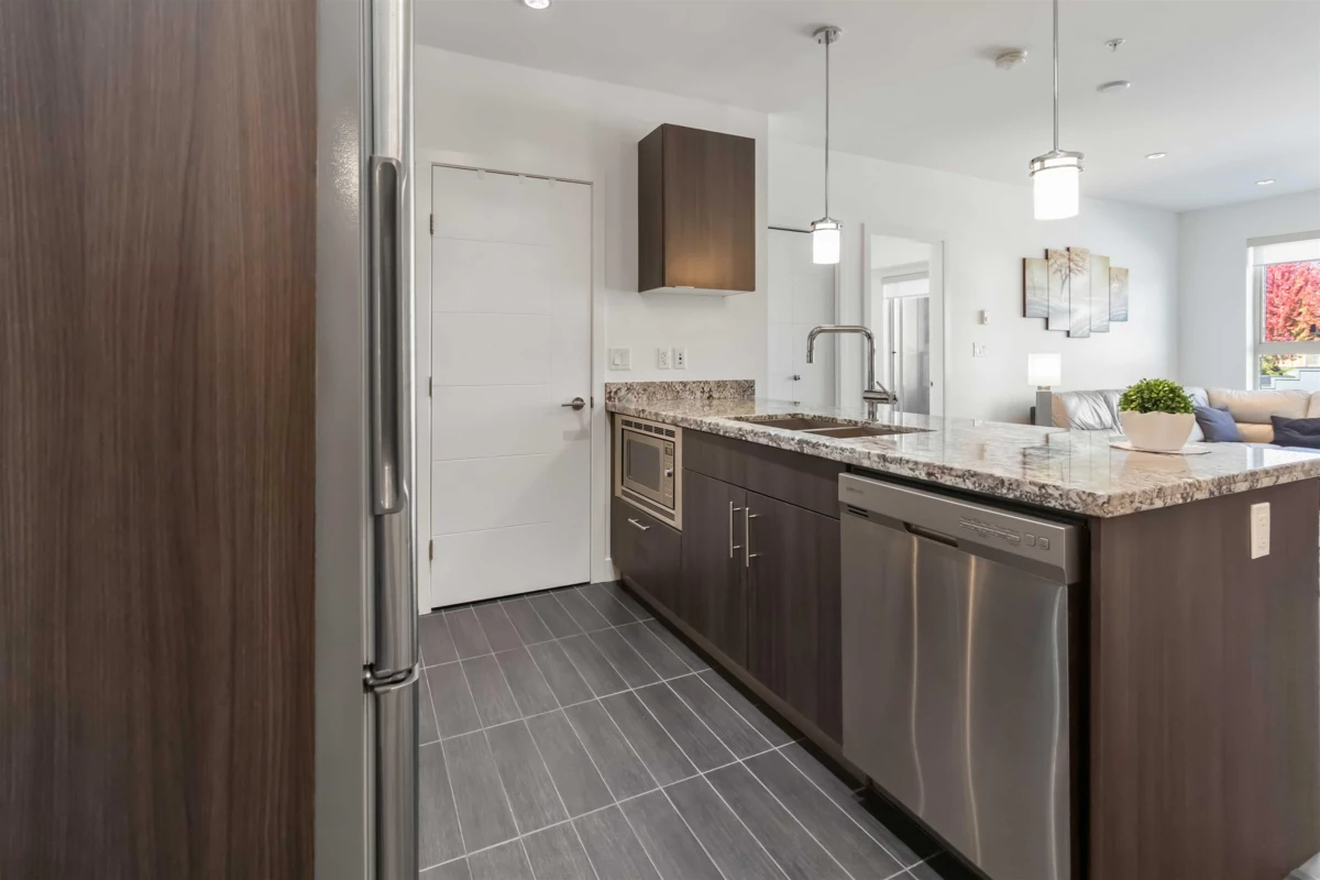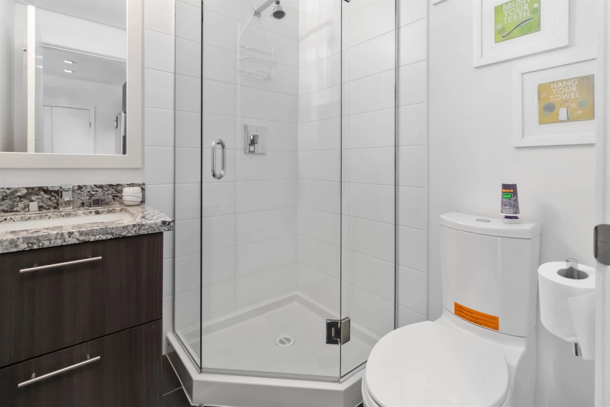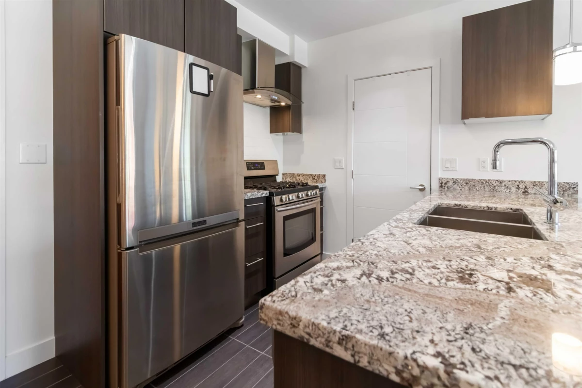Welcome to ORO on Capitol Hill! This immaculate 2-bedroom, 2-bathroom home spans 773 square feet of thoughtfully designed living space. Featuring soaring ceilings, a 5-burner gas cooktop, high-end stainless steel appliances, and stone countertops, this residence exudes modern elegance. The primary bedroom includes a private ensuite, while 2 spacious balconies offer ideal spaces to relax or entertain. The main balcony's gas connection makes summer BBQ's a breeze. Flooded with natural light through massive windows, this home is both inviting and stylish. Complete with 2 side-by-side parking stalls and 1 storage locker. Enjoy premium building amenities including a Fitness Centre, Bike Room and Lounge. Moments from cafes, parks, schools, and quick transit to Brentwood and Downtown Vancouver!