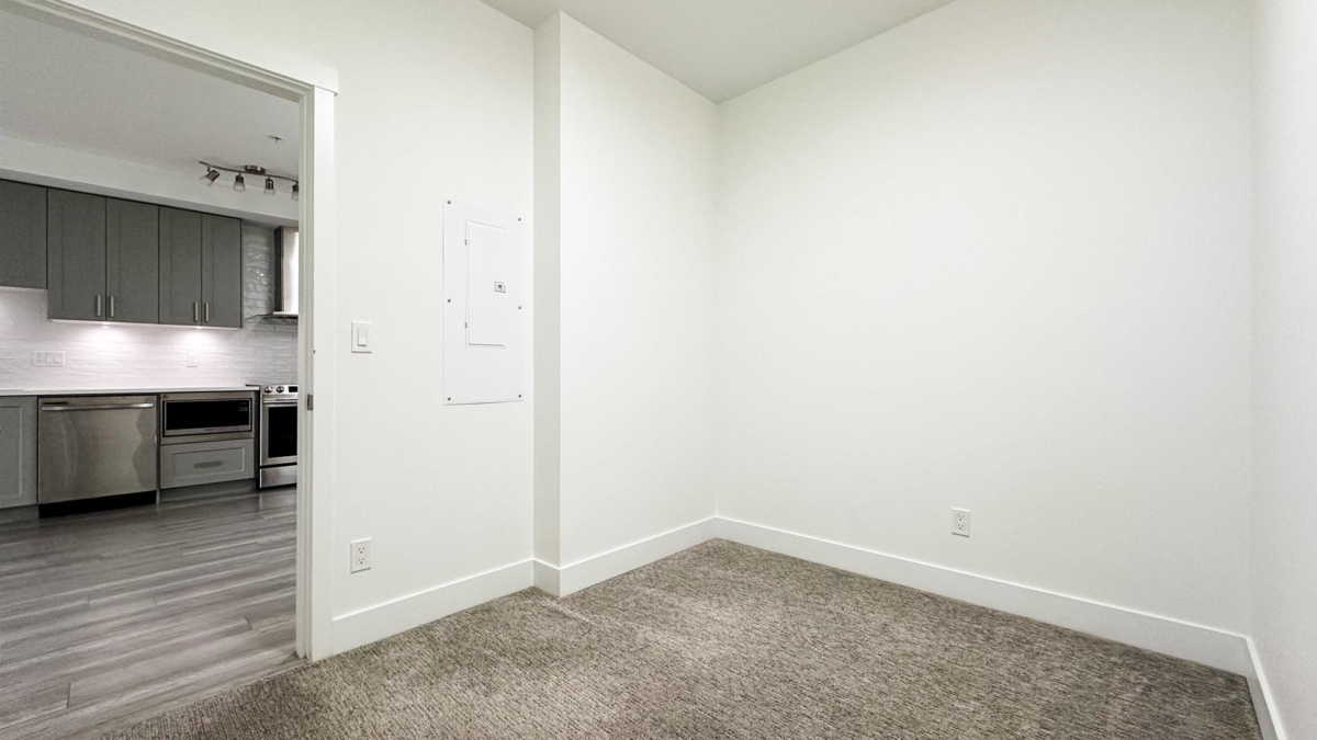 Welcome to Fraser Landmark. Super convenient central location, future Skytrain station is planned nearby. This well kept LIKE NEW unit features open floor plan with functional layout and a covered balcony. One bedroom plus a large den which can be a second bedroom or home office. One parking and one bike storage. Building has amenity room, roof top patio and GYM. Steps to transition, shopping, restaurants and community center. Call now to book your private viewing.