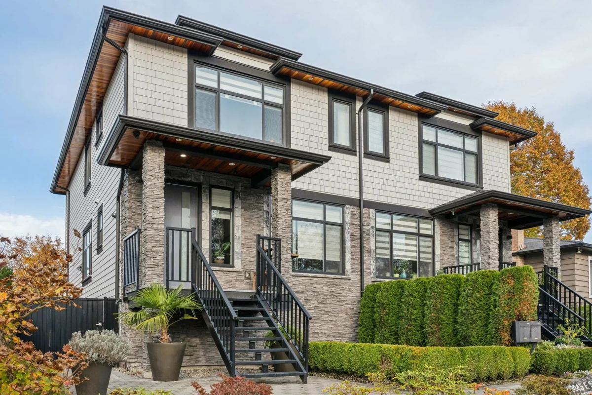 Welcome to a rare luxury duplex in the heart of Fraserview. This home spans three levels and includes a fully authorized 2-bedroom suite on the lower floor. The main level is designed for both style and comfort, featuring quartz counters, sleek porcelain tile, and premium stainless steel appliances. Large Nano-style doors open out to a spacious backyard, perfect for entertaining or relaxing outdoors. Built with care and attention to detail by a respected local builder. A short walk to Champlain Square, the Vancouver Public Library, and Fraserview Golf Course. Killarney Secondary and Captain James Cook Elementary are only minutes away. A fantastic opportunity to live in one of East Vancouver’s most sought-after communities!