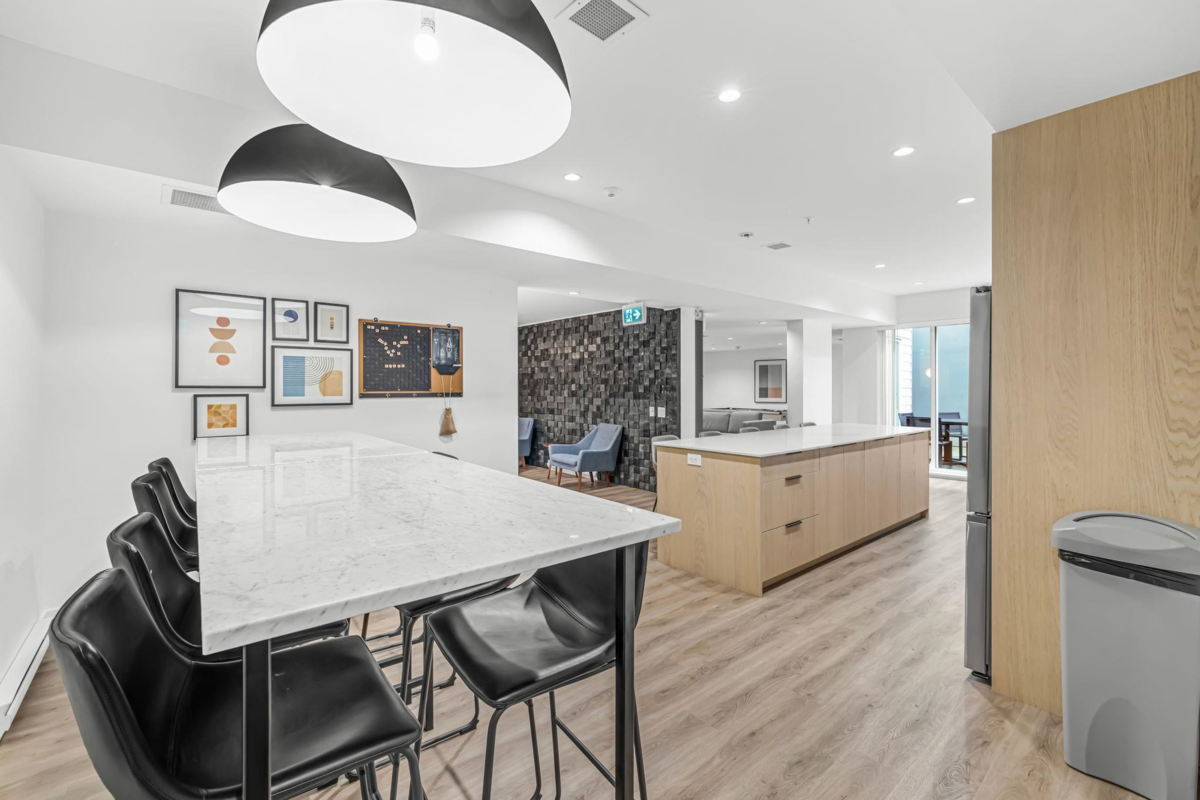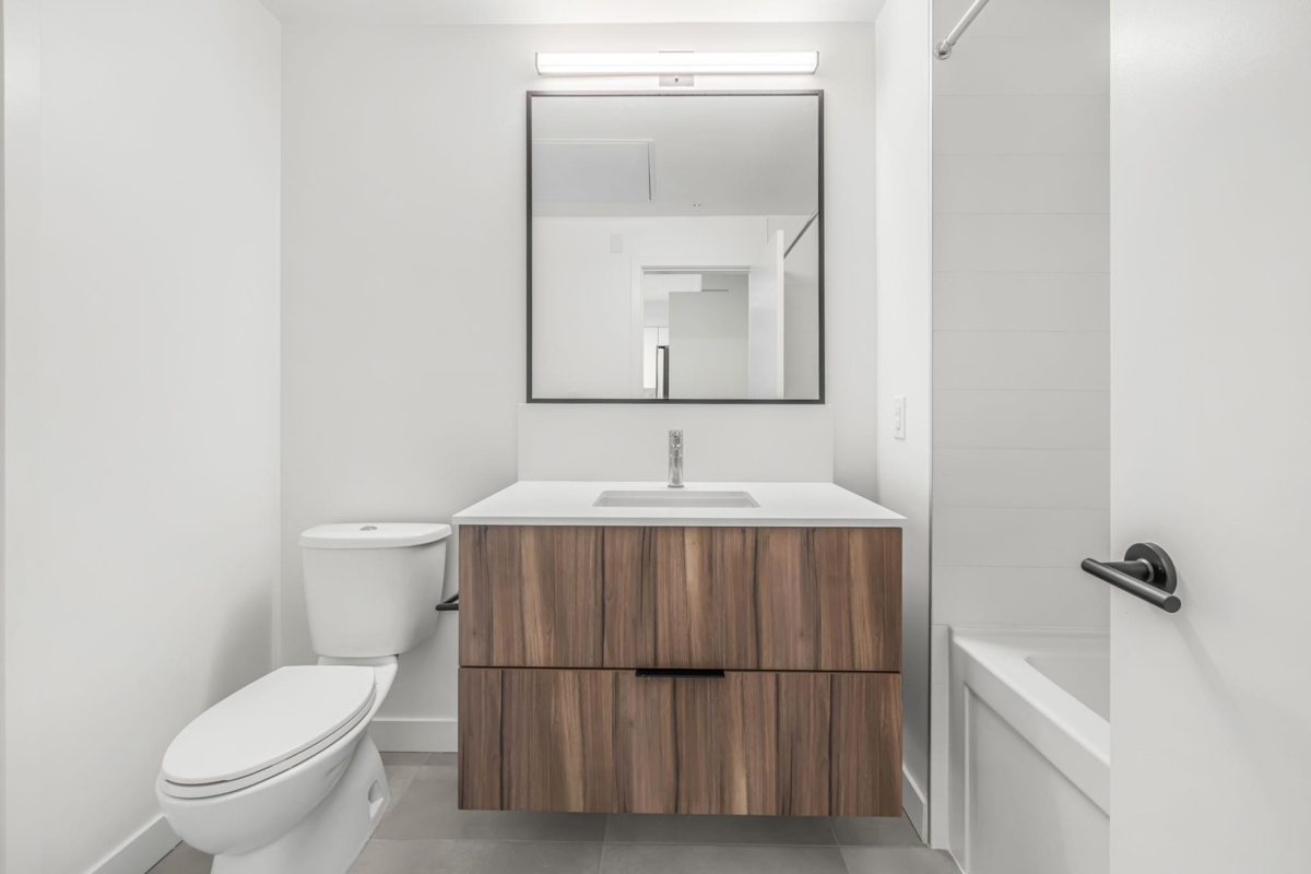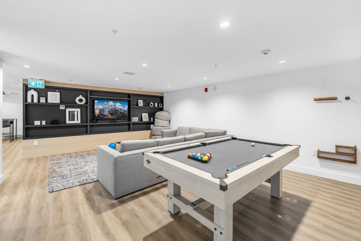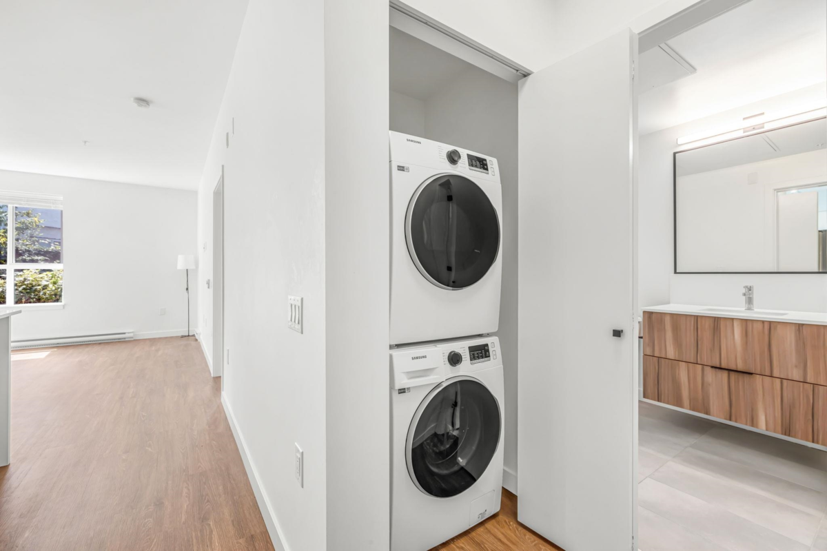 Discover exceptional value at Clyde with this bright 2-bed, 1-bath corner suite. Just a 5-minute stroll to Inlet SkyTrain, this end unit sits on the quiet side and offers 798 sq ft of open-concept living plus two balconies—including a south-facing balcony perfect for soaking up sunshine. The sleek kitchen boasts quartz countertops and stainless-steel appliances. Residents enjoy a gym, outdoor patio, indoor lounge, dog-wash station, plus secure underground parking and storage. With just over two years behind it and still protected by home warranty, this move-in-ready two-bedroom delivers unbeatable value—seize the opportunity today!