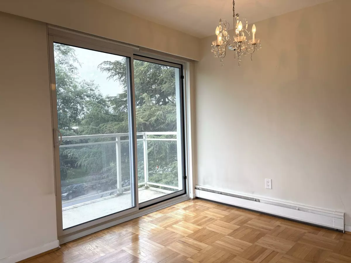 "Mansion House" - Spacious, SW facing 1 bedroom suite boasts convenience, gorgeous outlook & real privacy. This functional floor plan has lots of natural light throughout. The living room and dining room have plenty of windows with a parklike view above the outdoor pool. Kitchen has some updating and plenty of cupboard space. Very generous sized bedroom fits a king size bed and lots of closet space. Enjoy relaxing on the balcony while taking in the scenery. Shared laundry, lounge, patio & outdoor pool. Central location; close to Tisdall Park and Vandusen Gardens. Walk to Oakridge - shopping, banking, restaurants - easy access to transit Canada Line Skytrain - YVR, Richmond & downtown, UBC, Langara. Parking & storage locker. Age restricted 19+ - No pets/rentals/smoking