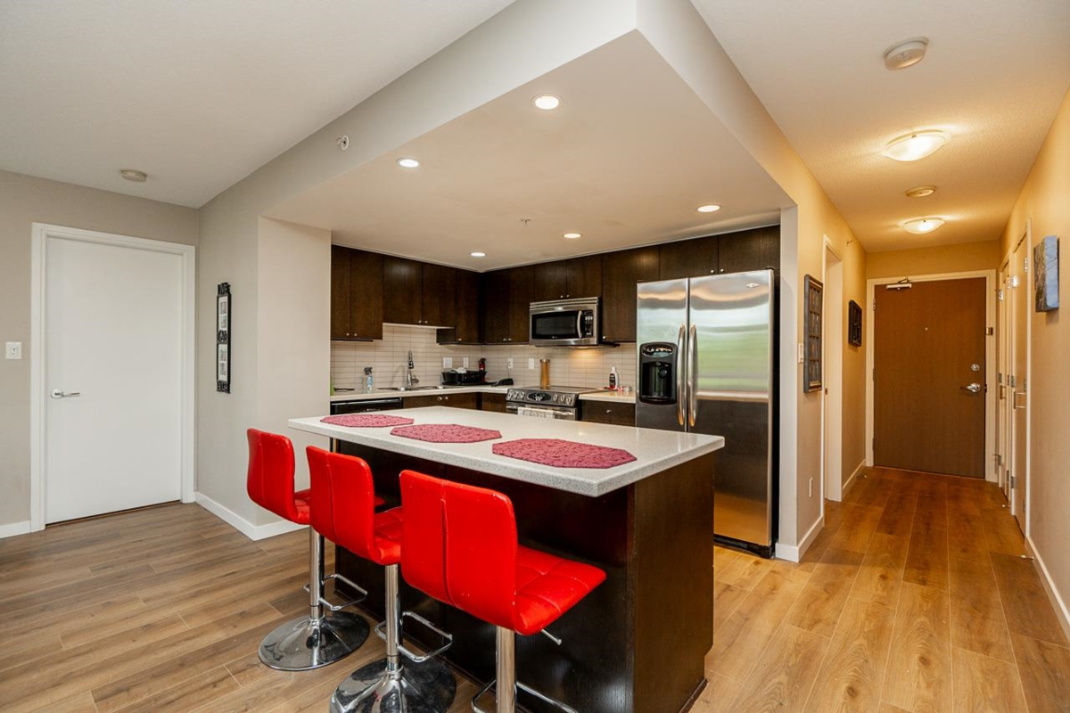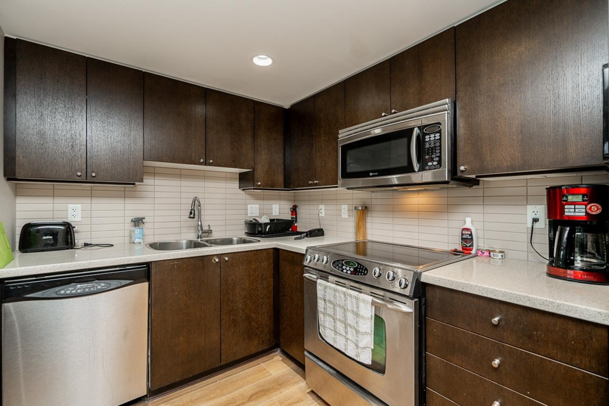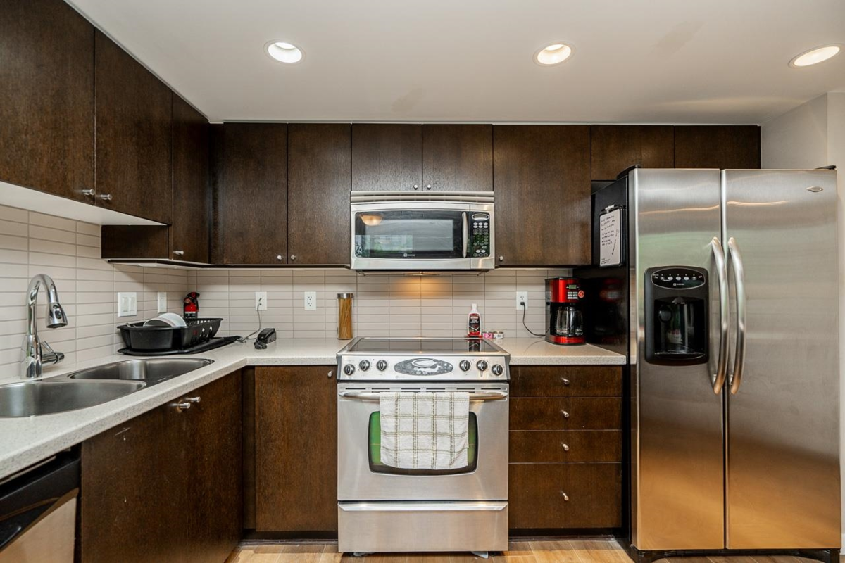 LOOKING FOR A SPACIOUS TWO BEDROOM, SOUTH-WEST CORNER CONDO IN A CONCRETE BUILDING AND ONLY ON THE 3RD FLOOR? NO NEED TO WAIT FOR ELEVATOR WITH ONLY TWO SETS OF STAIRS AND YOU'RE AT THE LOBBY ENTRANCE. THEN THIS IS THE ONE! FEATURES; NEW FLOORING THROUGHOUT BRIGHT OPEN KITCHEN & LIVING ROOM WITH A COZY FIREPLACE AND LARGE PATIO ALL OVERLOOKING AT EYE LEVEL THE MATURE TREED GARDENS. TWO GOOD SIZE BEDROOMS (opposite sides for privacy) & TWO FULL BATHS. PRIMARY B/R FEATURES DOUBLE VANITY AND E/X LARGE SHOWER AND A W/I CLOSET. THE MOTIF BY APPIA DEVELOPMENTS OFFERS FULL AMENITIES WITH VERY REASONABLE MAINT. FEES. THIS NORTH BBY. LOCATION IS IDEAL FOR THOSE SEEKING CONVENIENCE AND A CAREFREE LIFESTYLE. MIN. 48 HOURS TO VIEW, NO EXCEPTIONS.